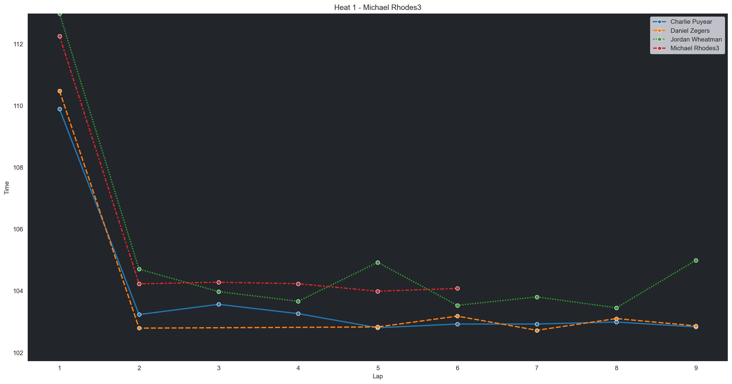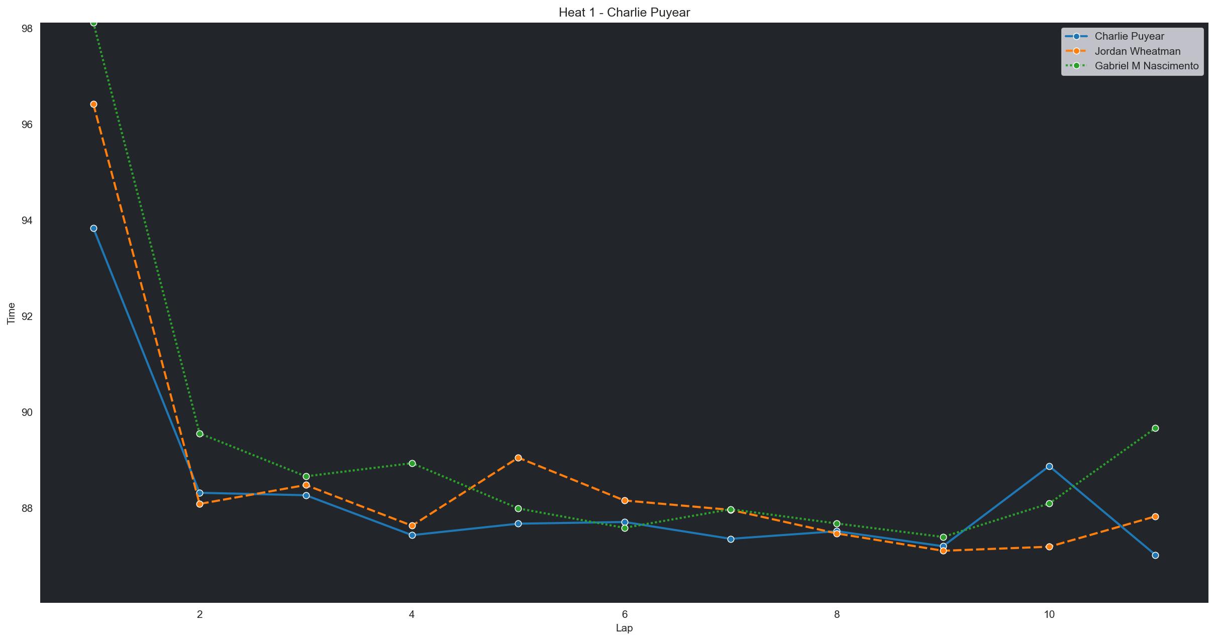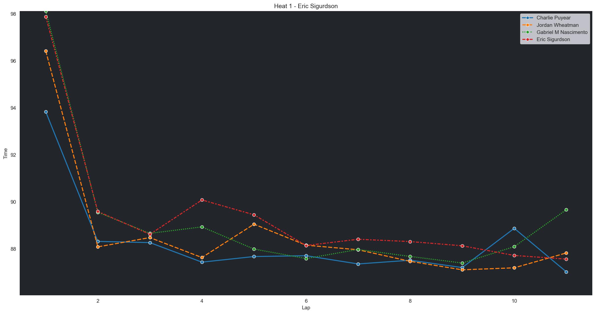 | Charlie Puyear | 1 | 6 | 2:14.4925 | 2:11.8107 | 2:11.6941 | 2:11.9611 | 2:11.2952 | 2:11.0783 | 2:10.8642 | 0 | |