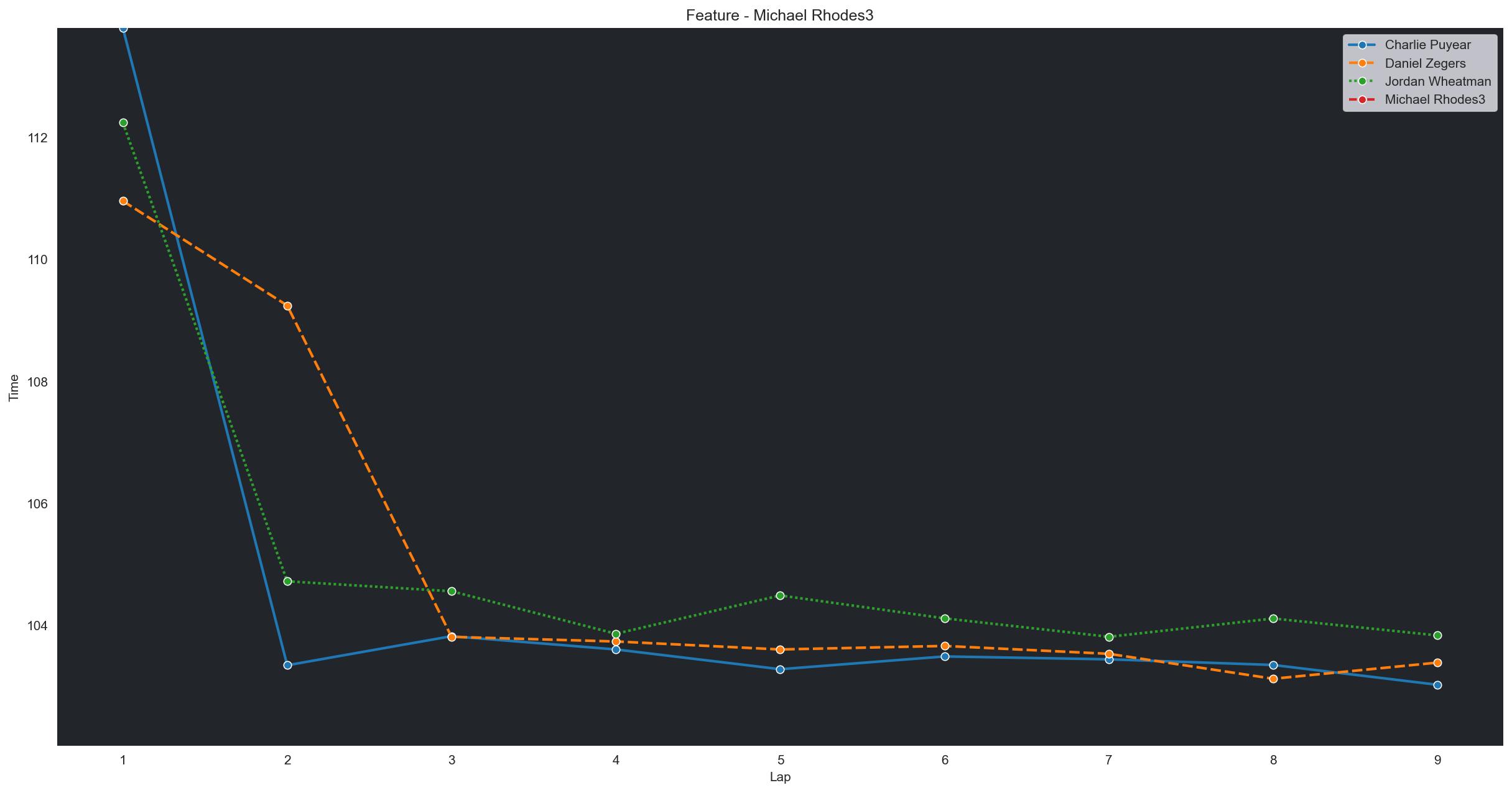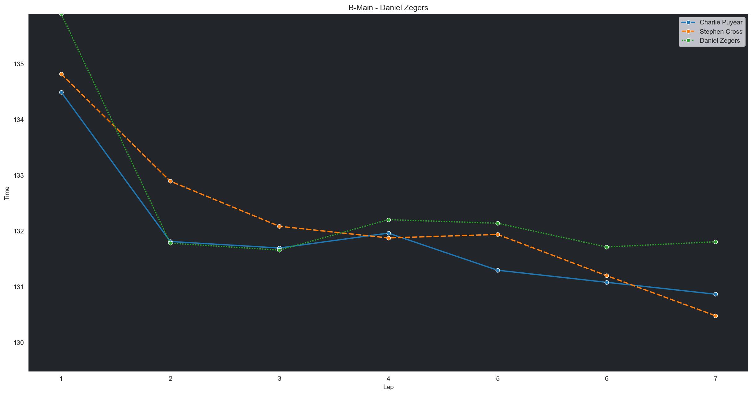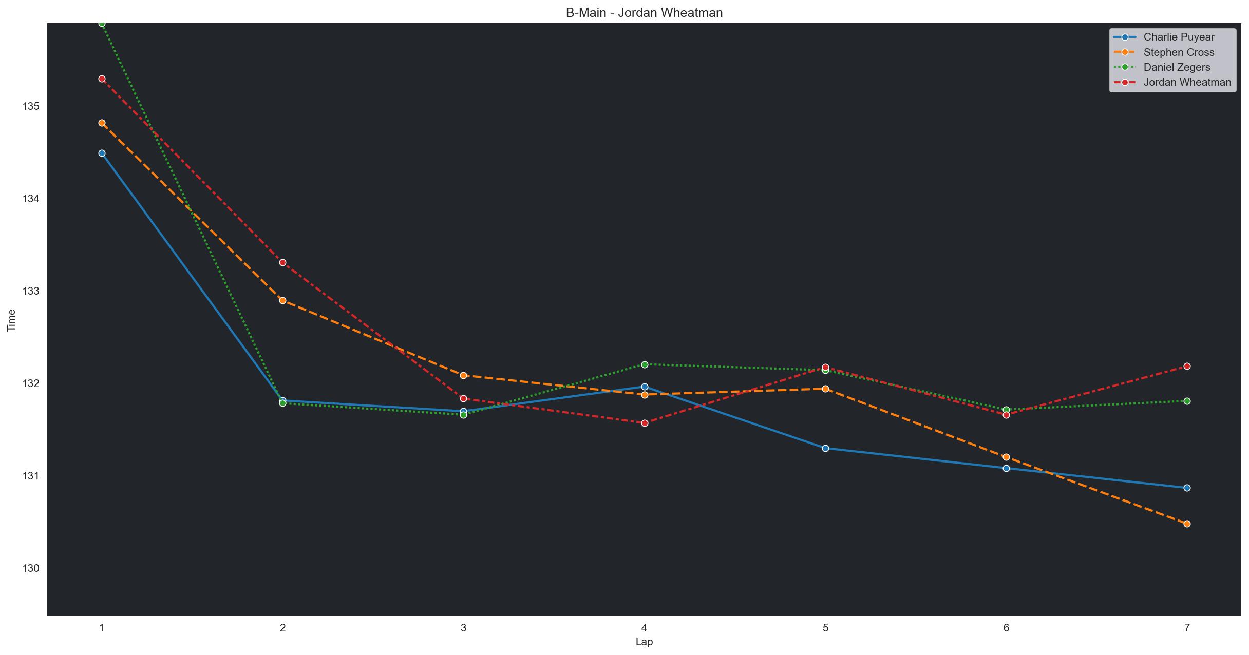 | Charlie Puyear | 1 | 6 | 2:14.4925 | 2:11.8107 | 2:11.6941 | 2:11.9611 | 2:11.2952 | 2:11.0783 | 2:10.8642 | 0 | |