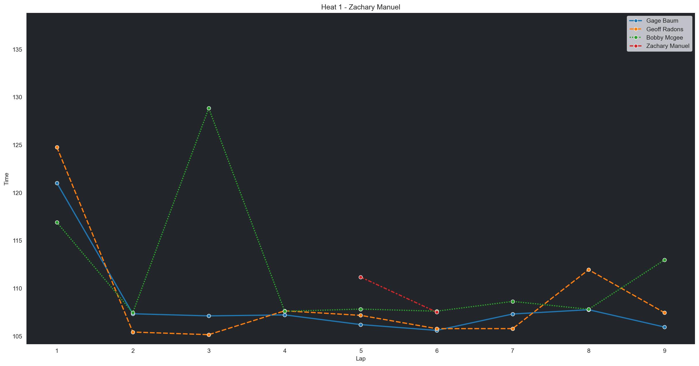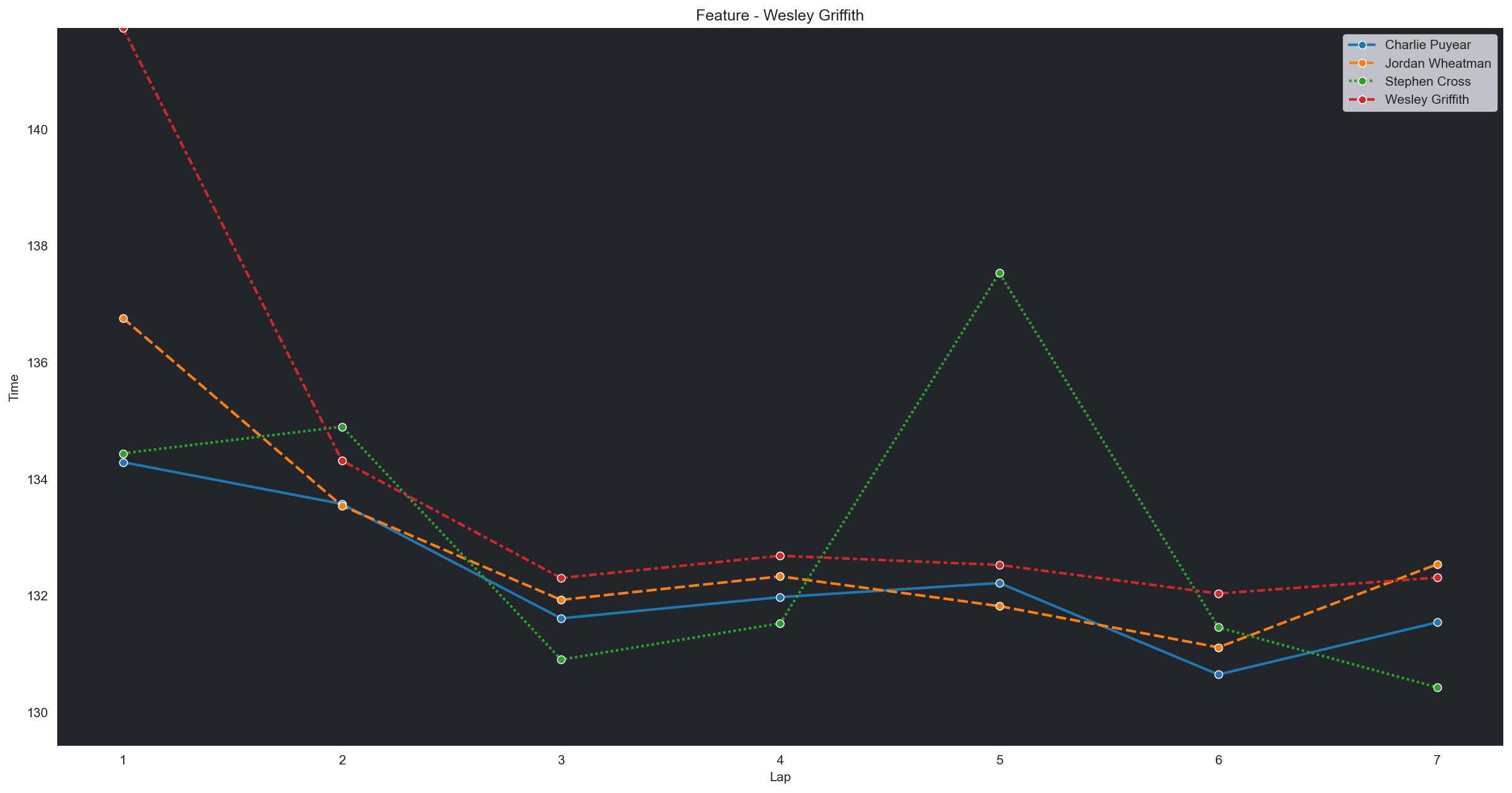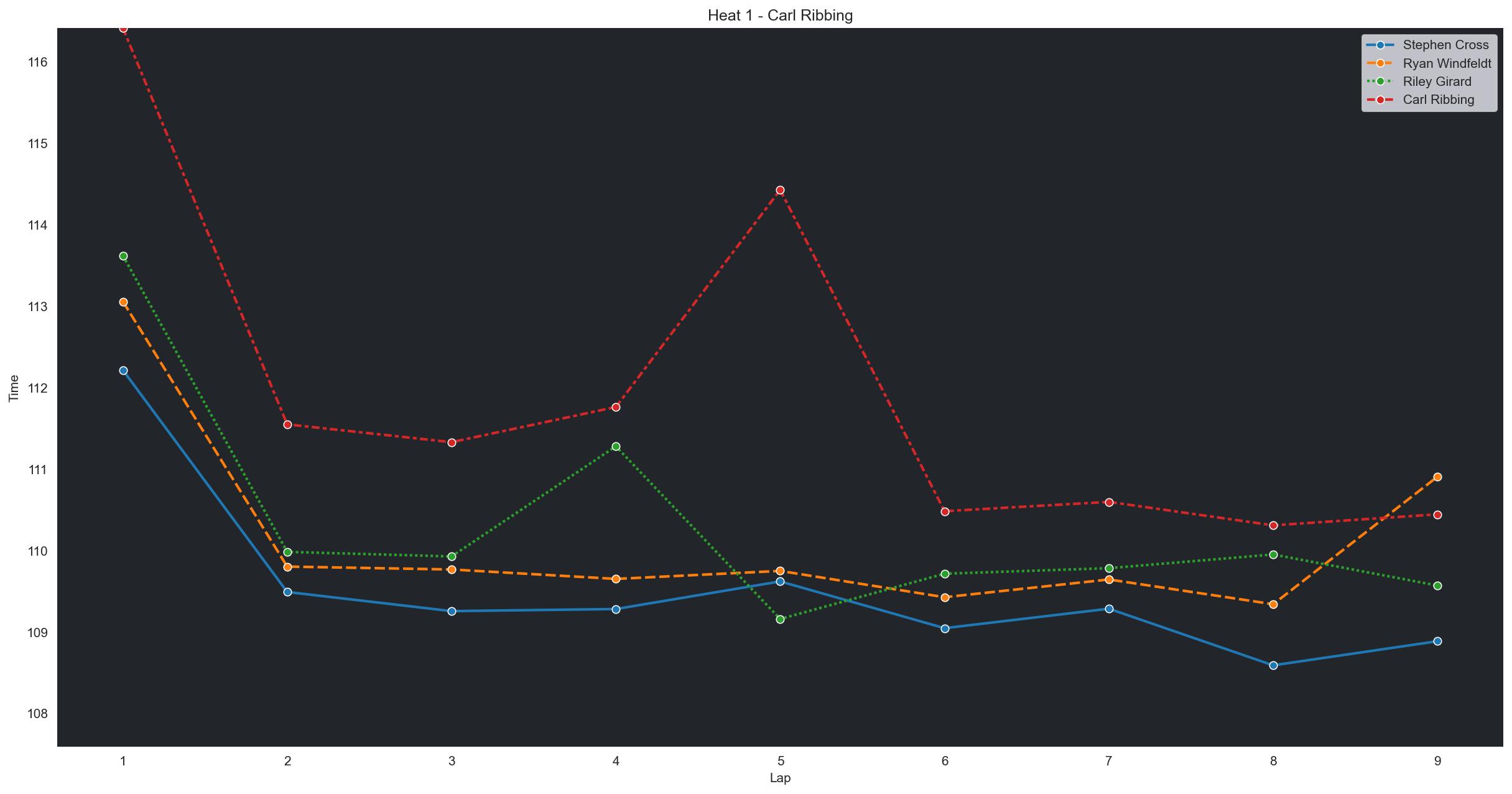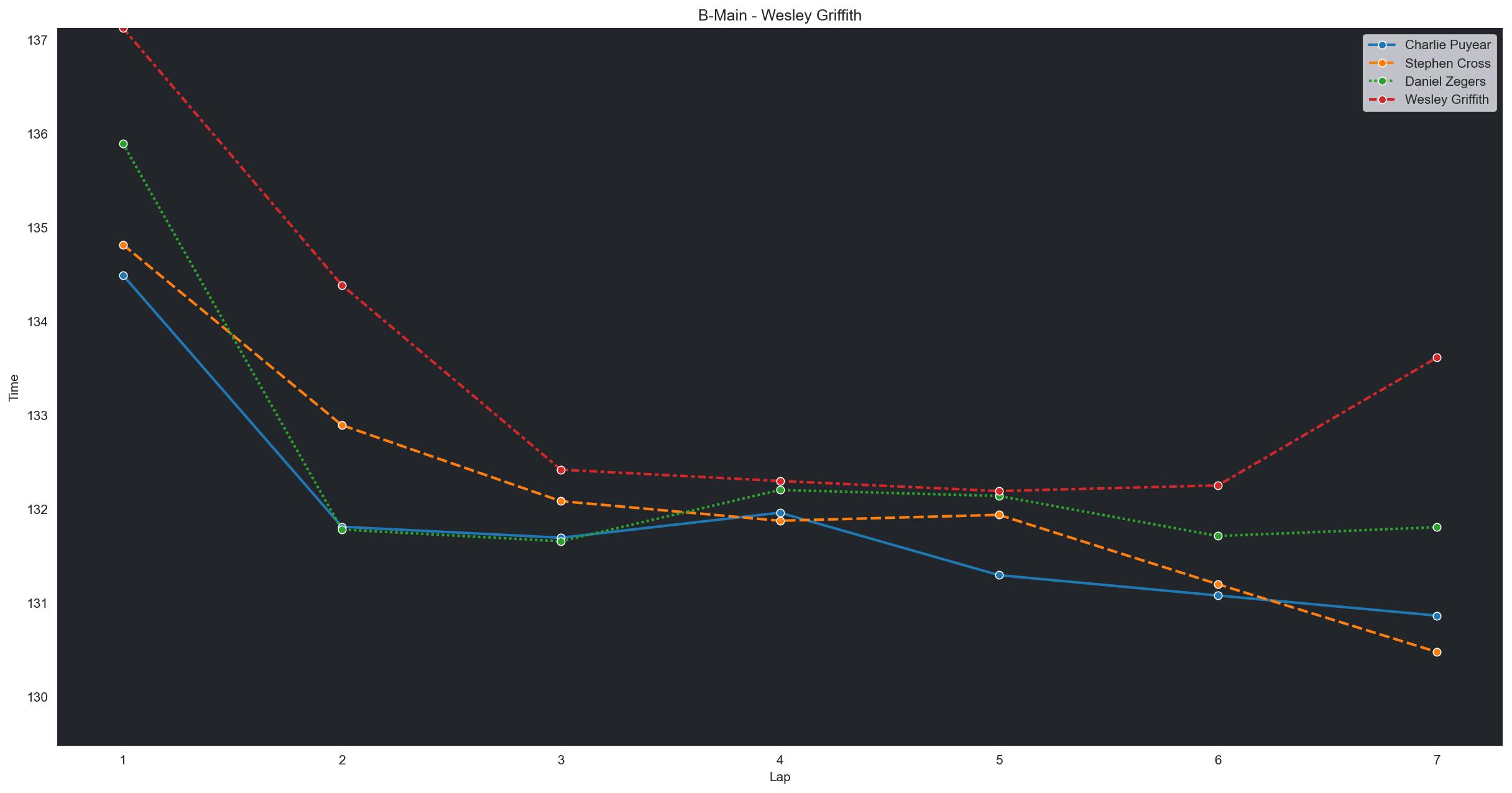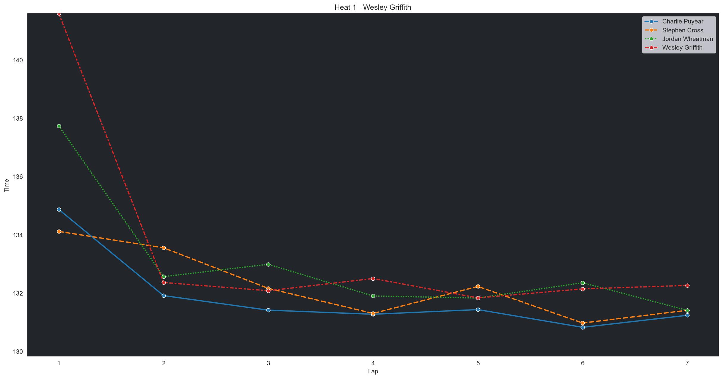 | Wesley Griffith | 4 | 6 | 2:21.6013 | 2:12.3642 | 2:12.0816 | 2:12.5009 | 2:11.8368 | 2:12.1452 | 2:12.2640 | 0 | |