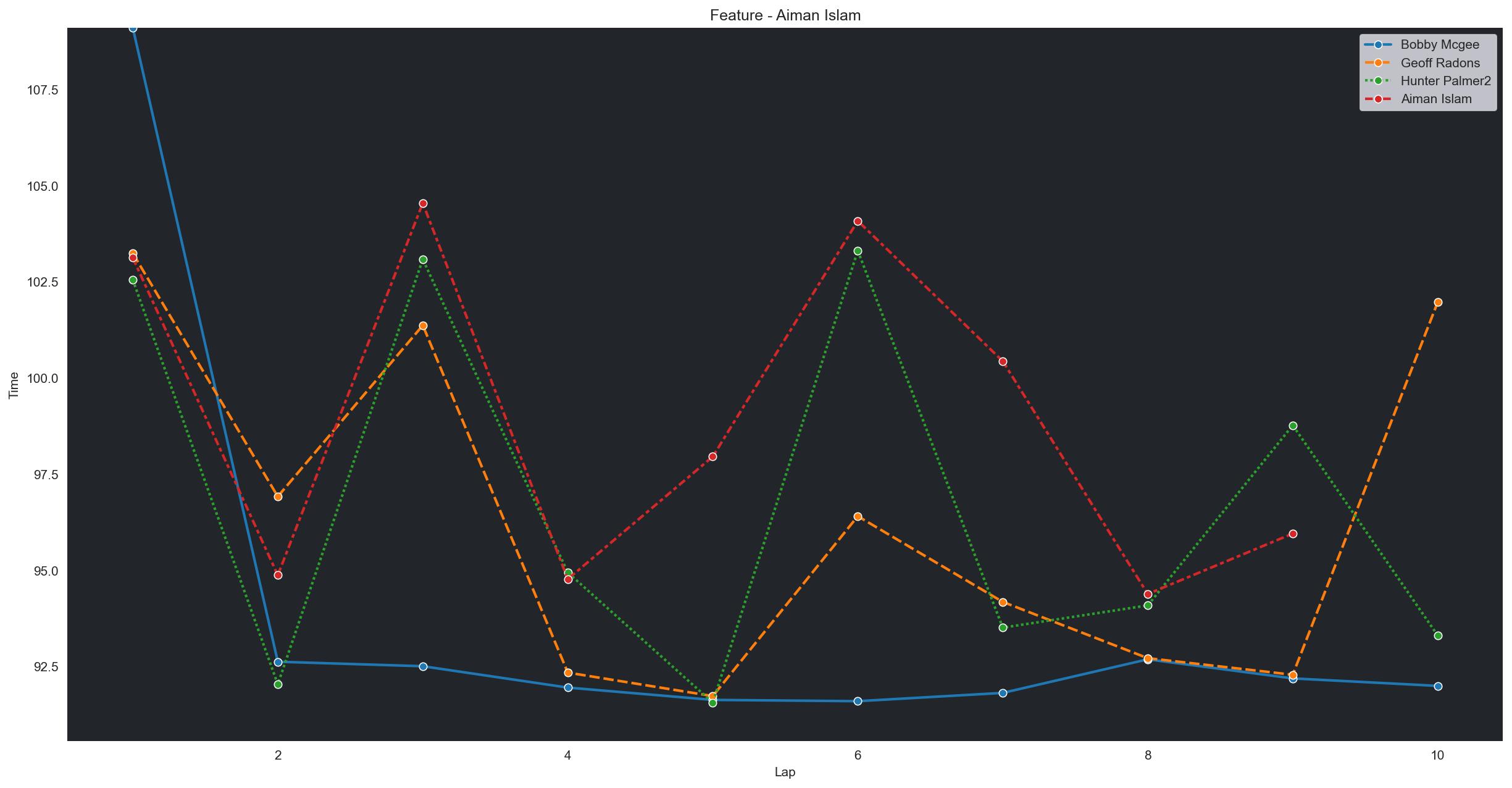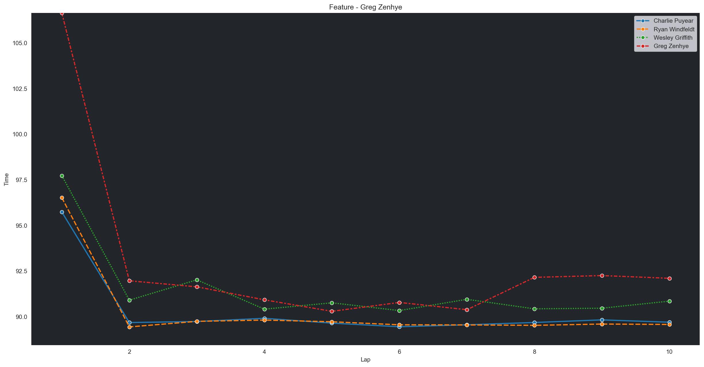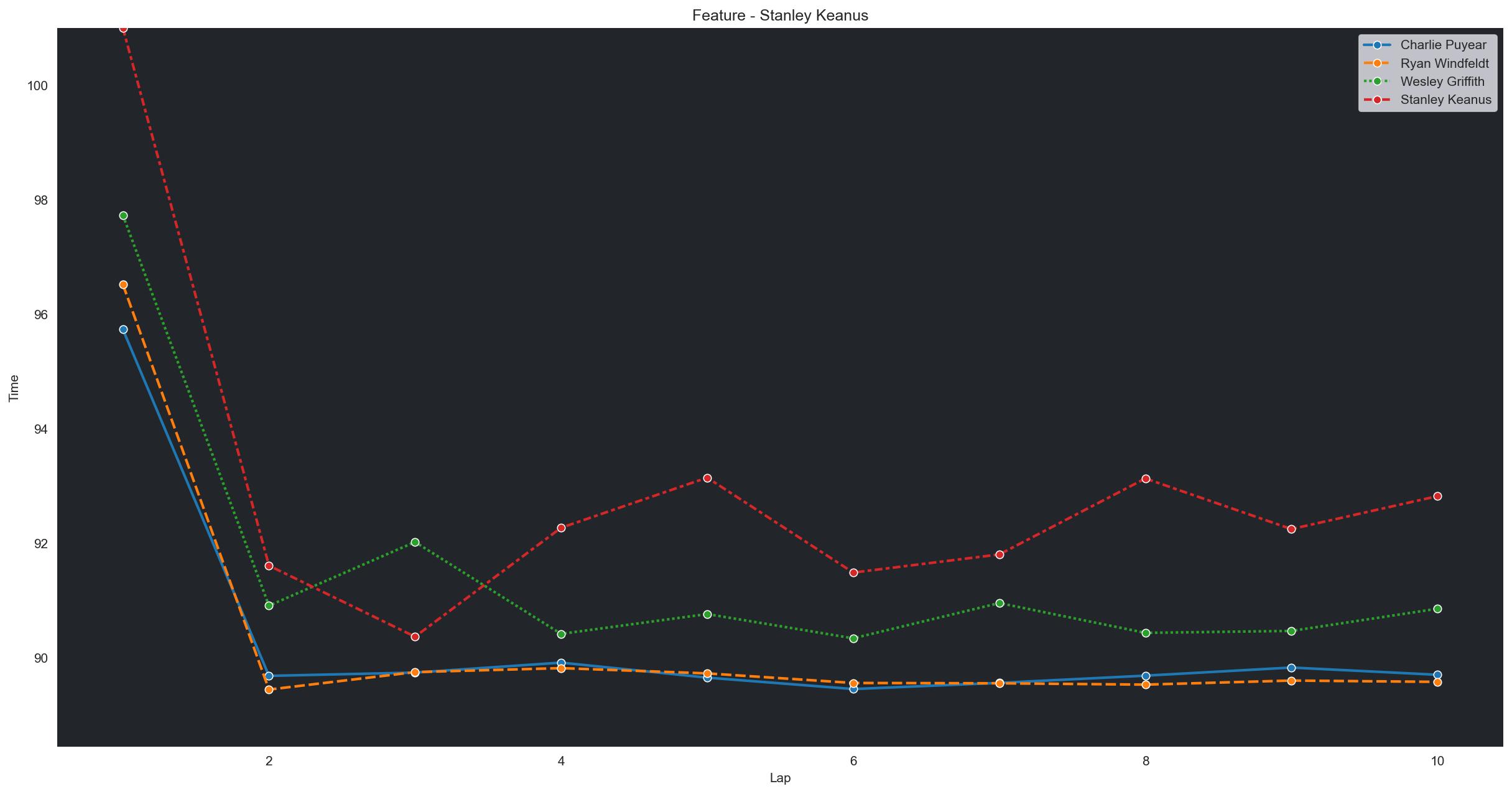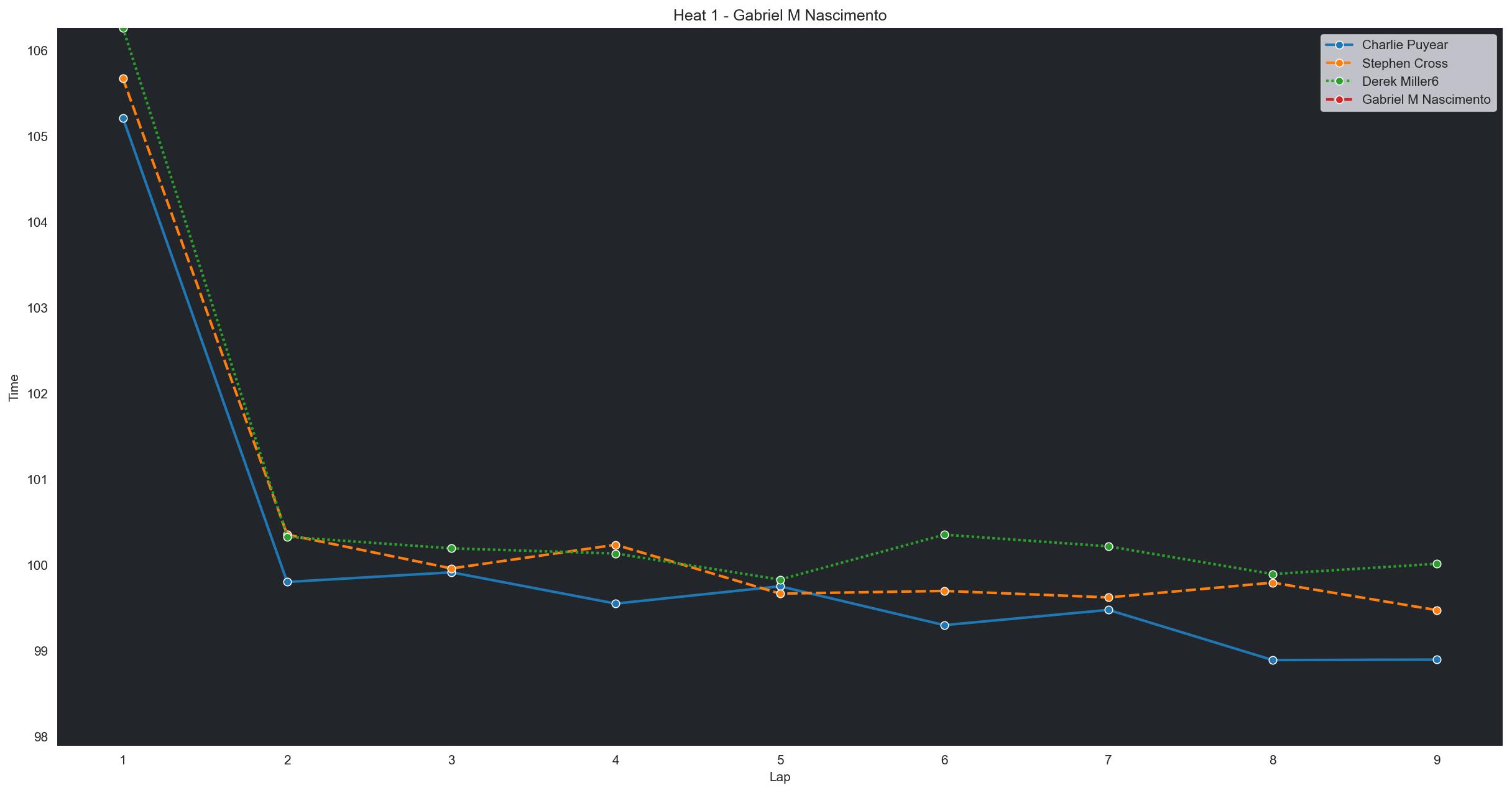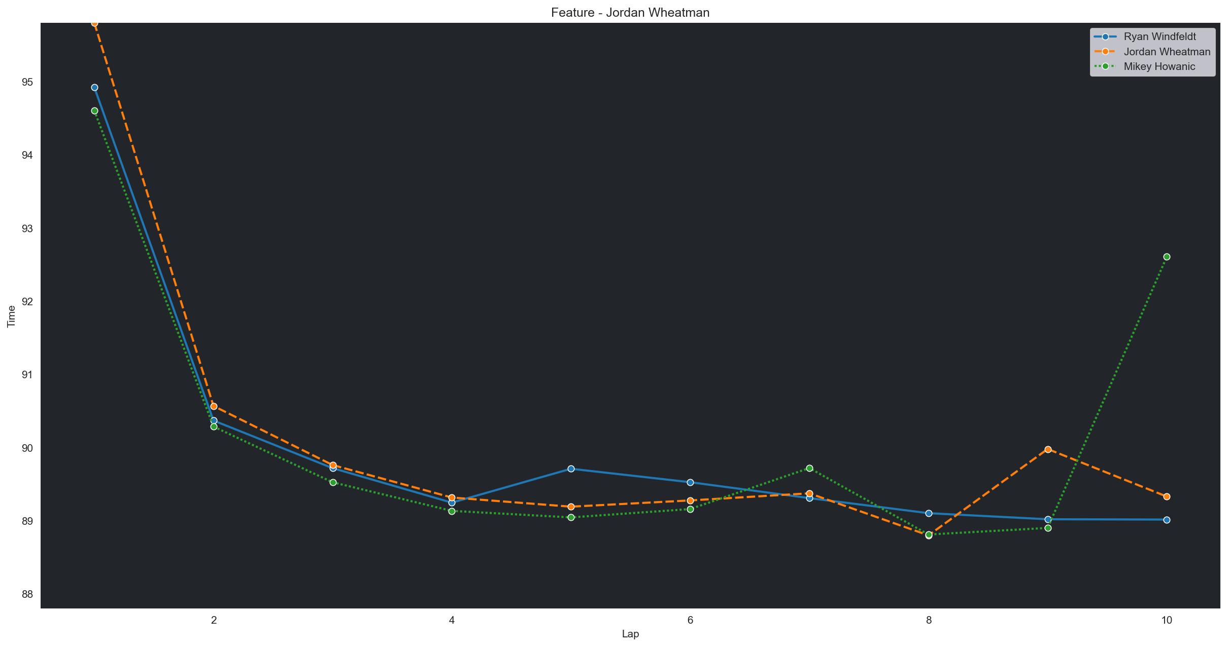 | Jordan Wheatman | 2 | 6 | 1:35.8048 | 1:30.5682 | 1:29.7610 | 1:29.3171 | 1:29.1919 | 1:29.2773 | 1:29.3746 | 1:28.8000 | 1:29.9799 | 1:29.3302 | 0 |