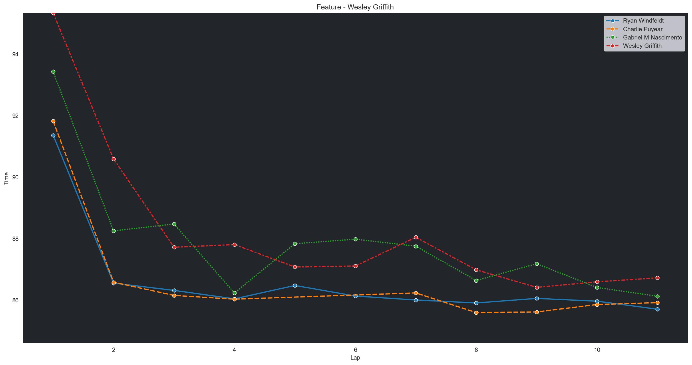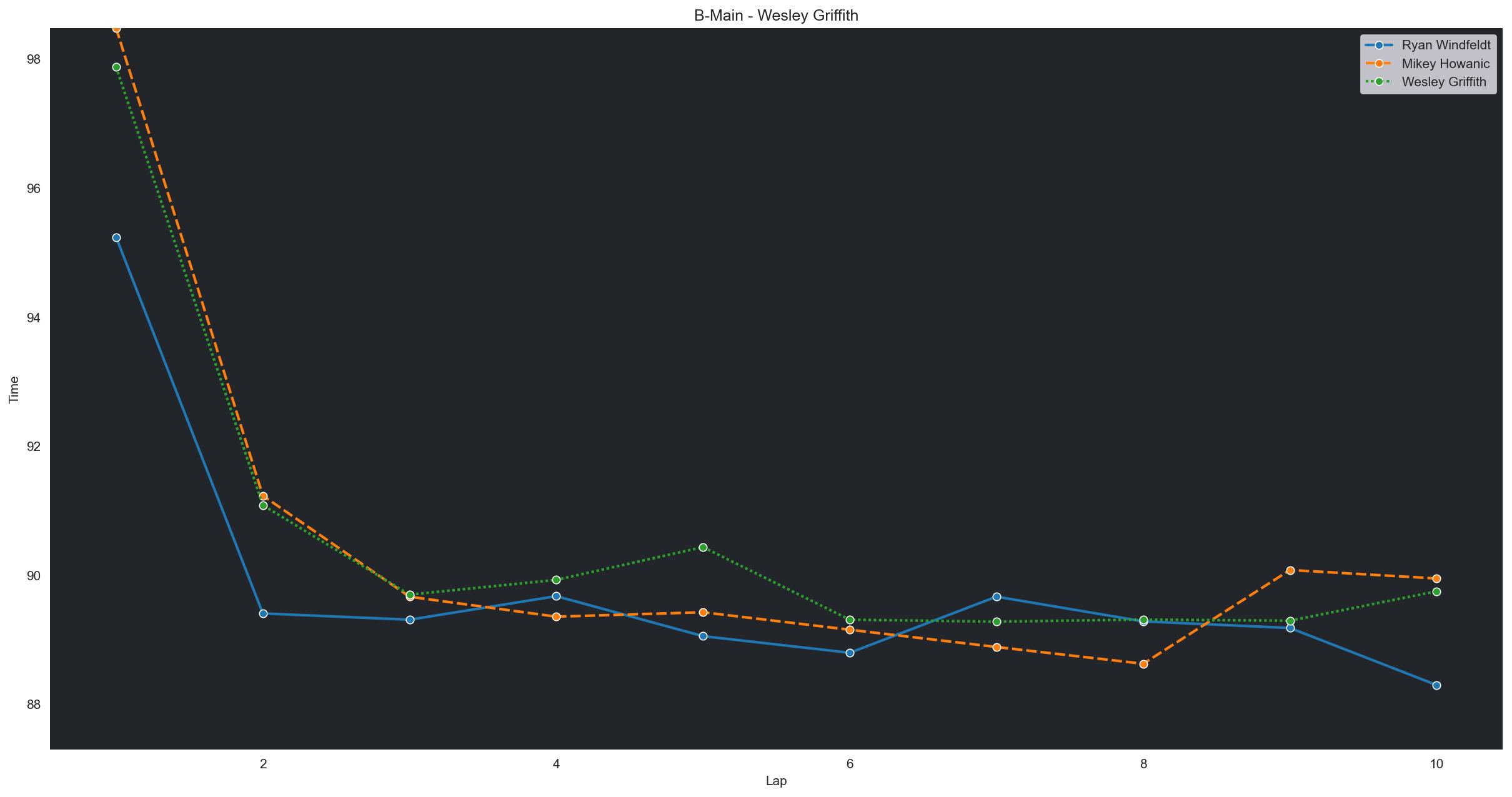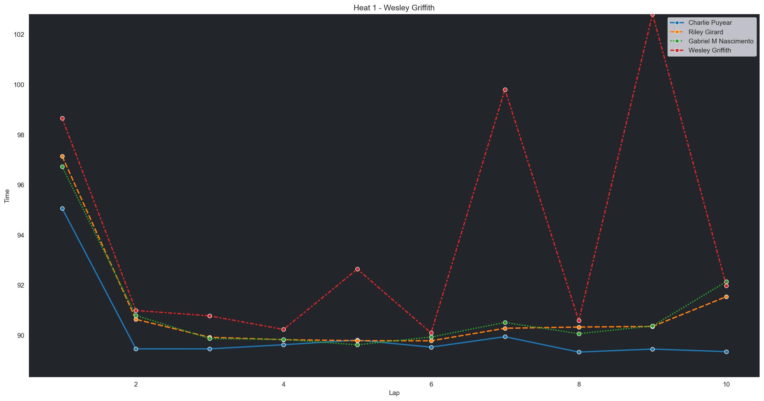 | Wesley Griffith | 8 | 5 | 1:38.9468 | 1:31.8977 | 1:29.6607 | 1:29.9862 | 1:37.8795 | 1:31.7957 | 1:30.3629 | 1:31.3466 | 1:30.4166 | 1:30.4102 | 0 |