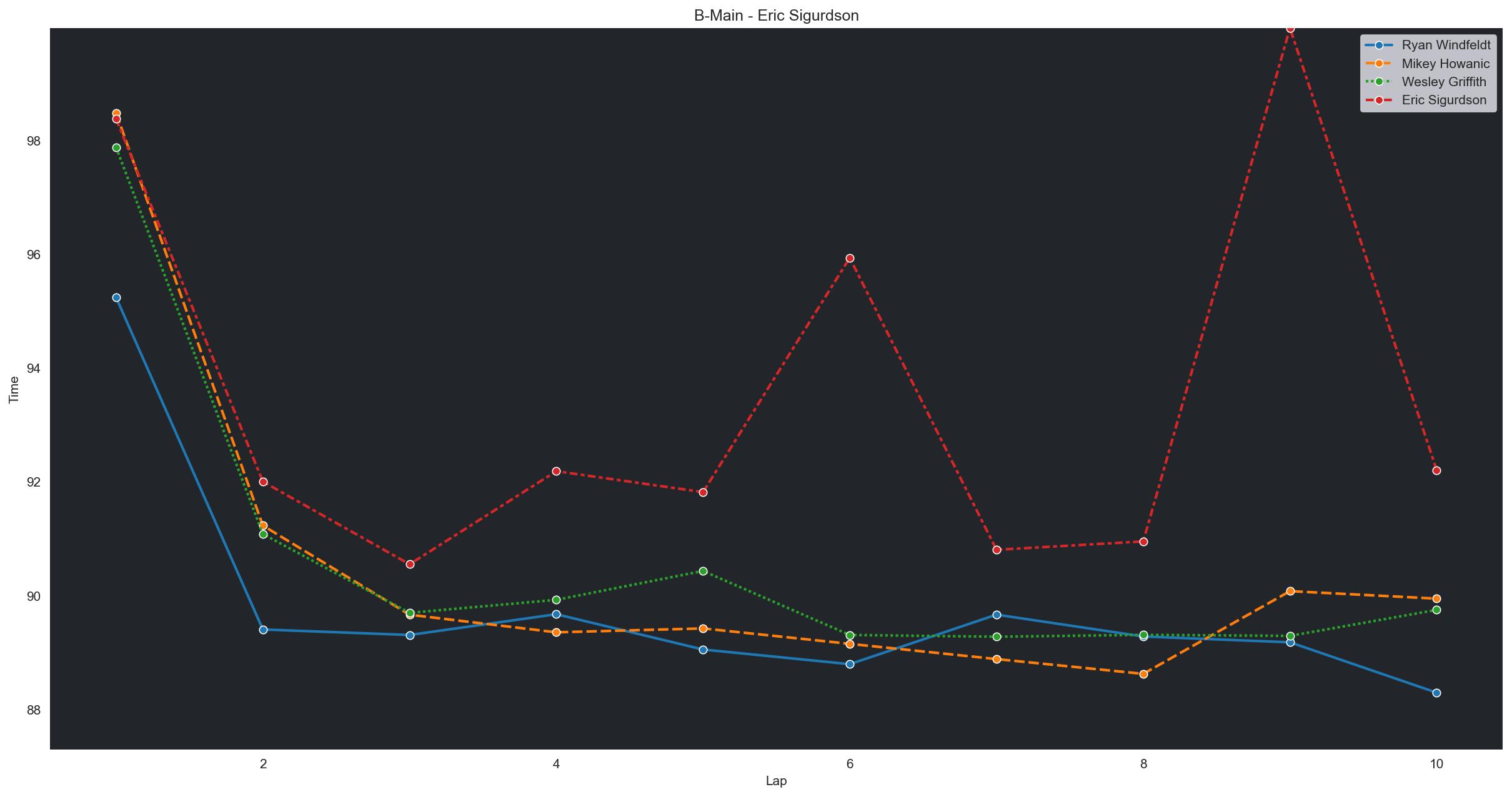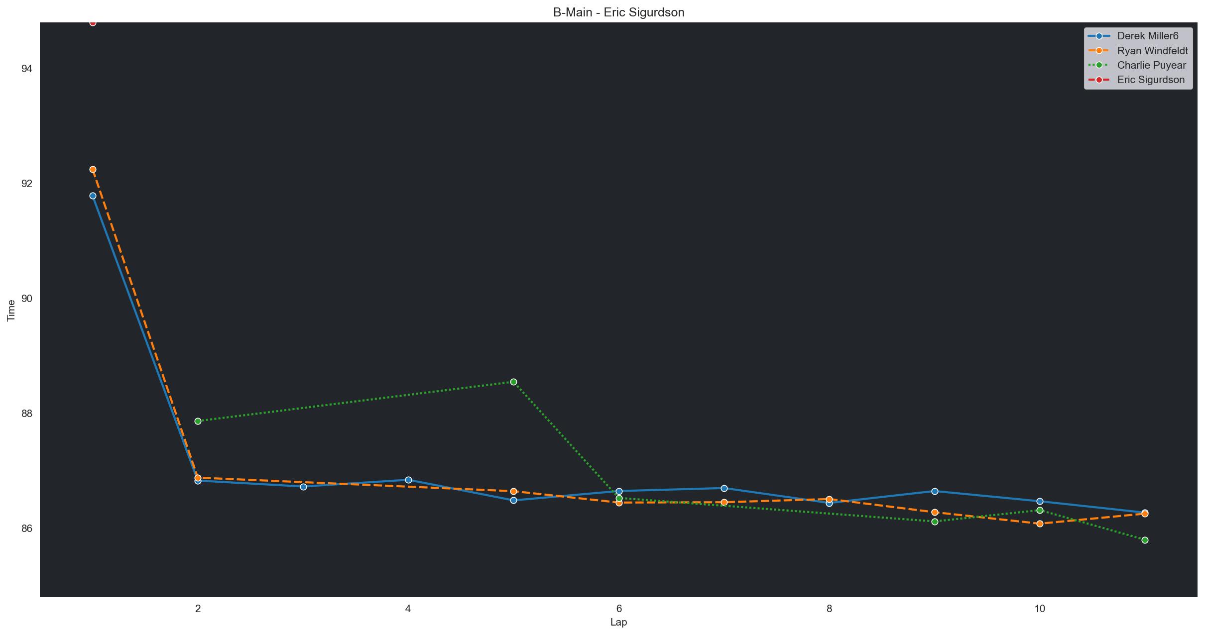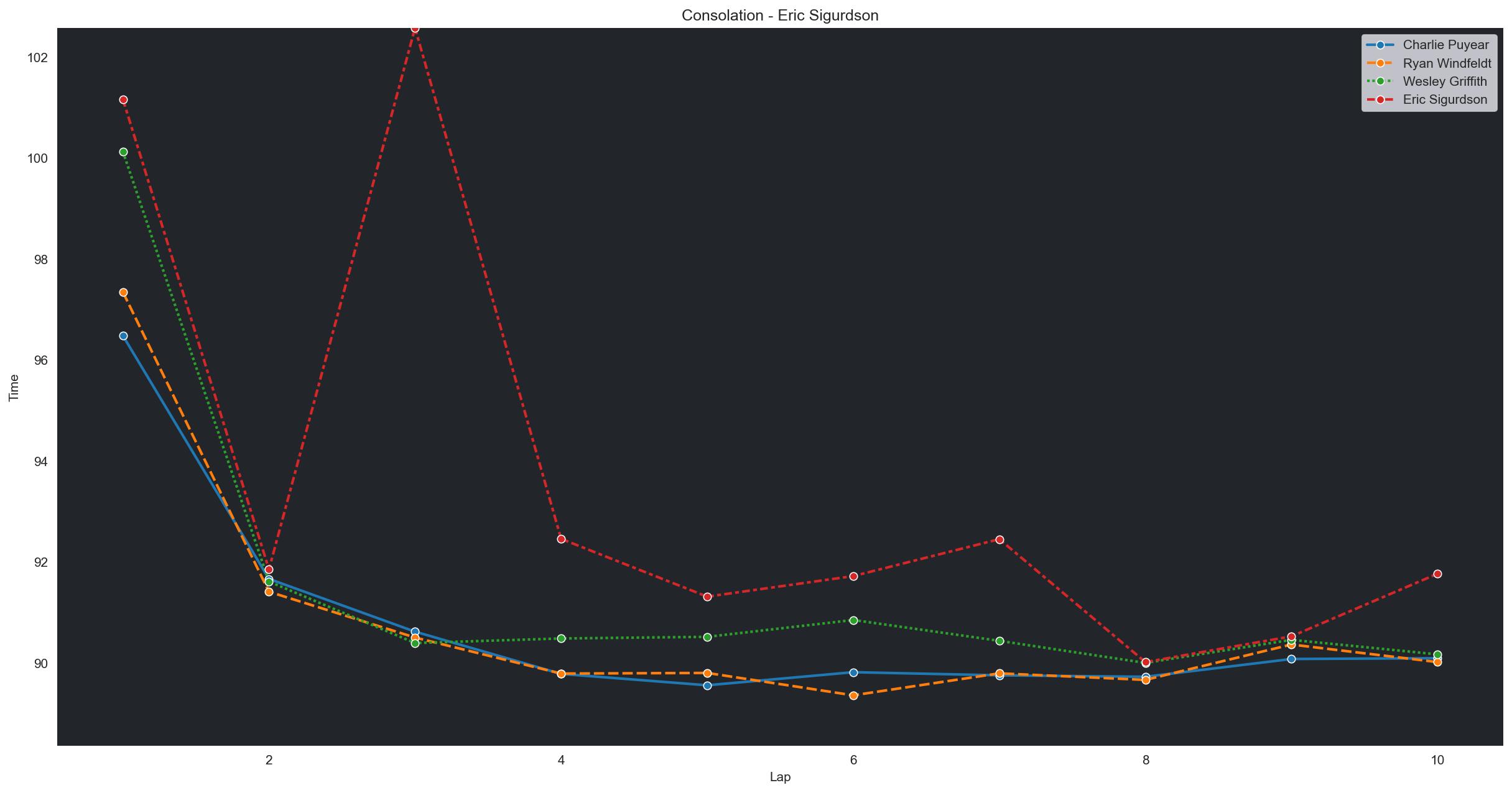 | Eric Sigurdson | 7 | 4 | 1:39.4106 | 1:31.7893 | 1:30.3371 | 1:30.1696 | 1:31.5870 | 1:31.4837 | 1:31.1819 | 1:30.5142 | 1:30.9637 | 1:31.1360 | 0 |