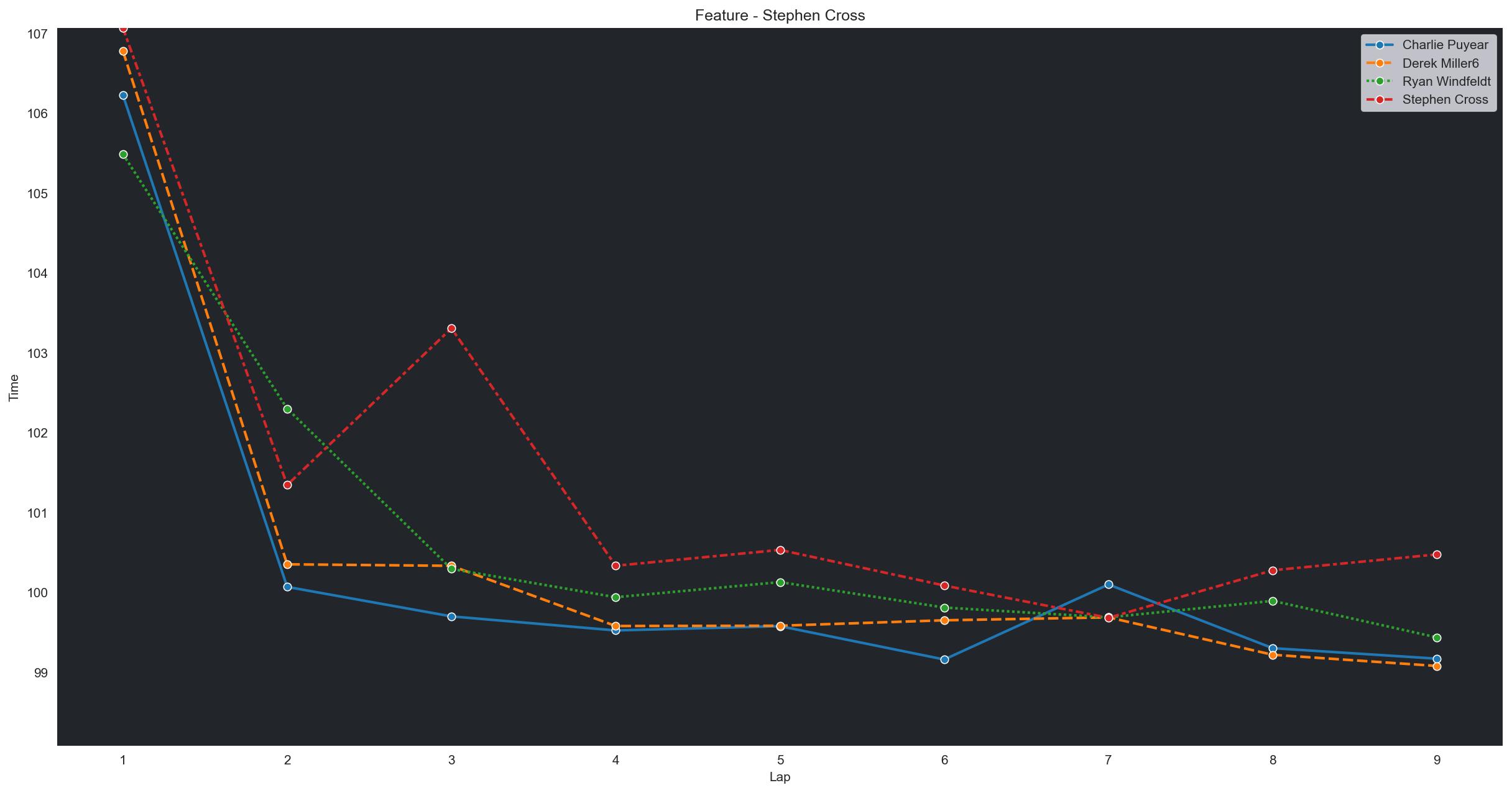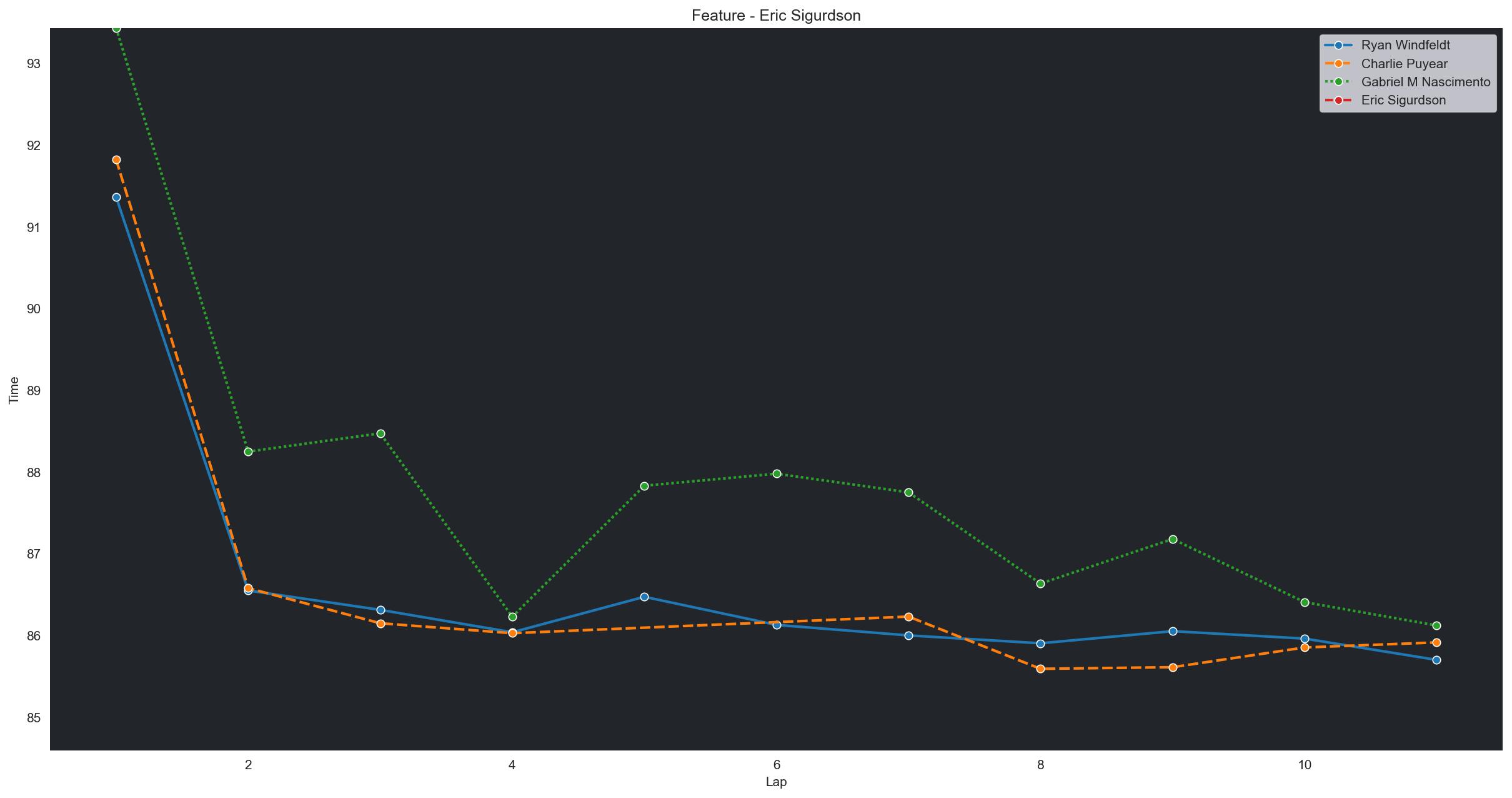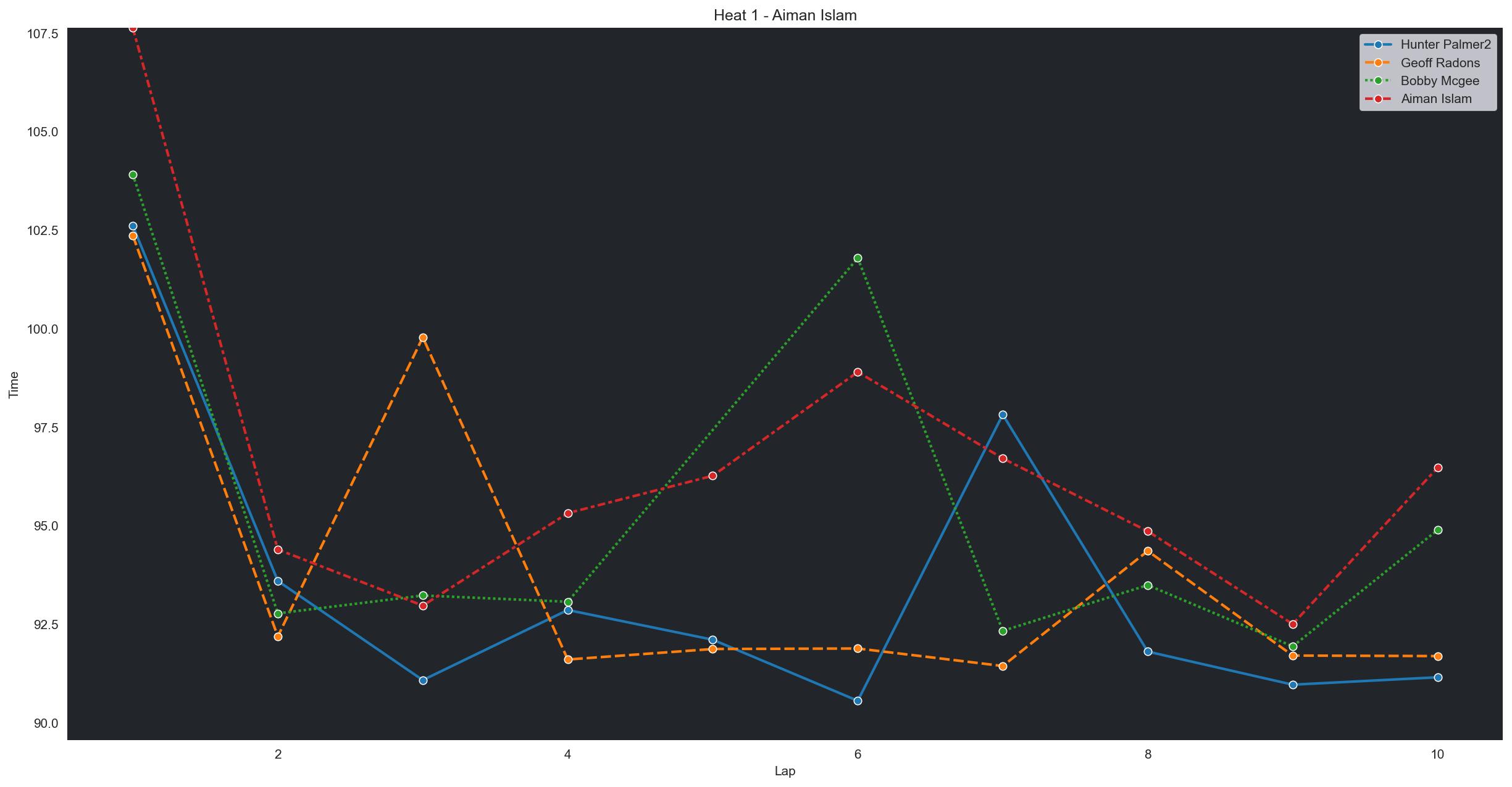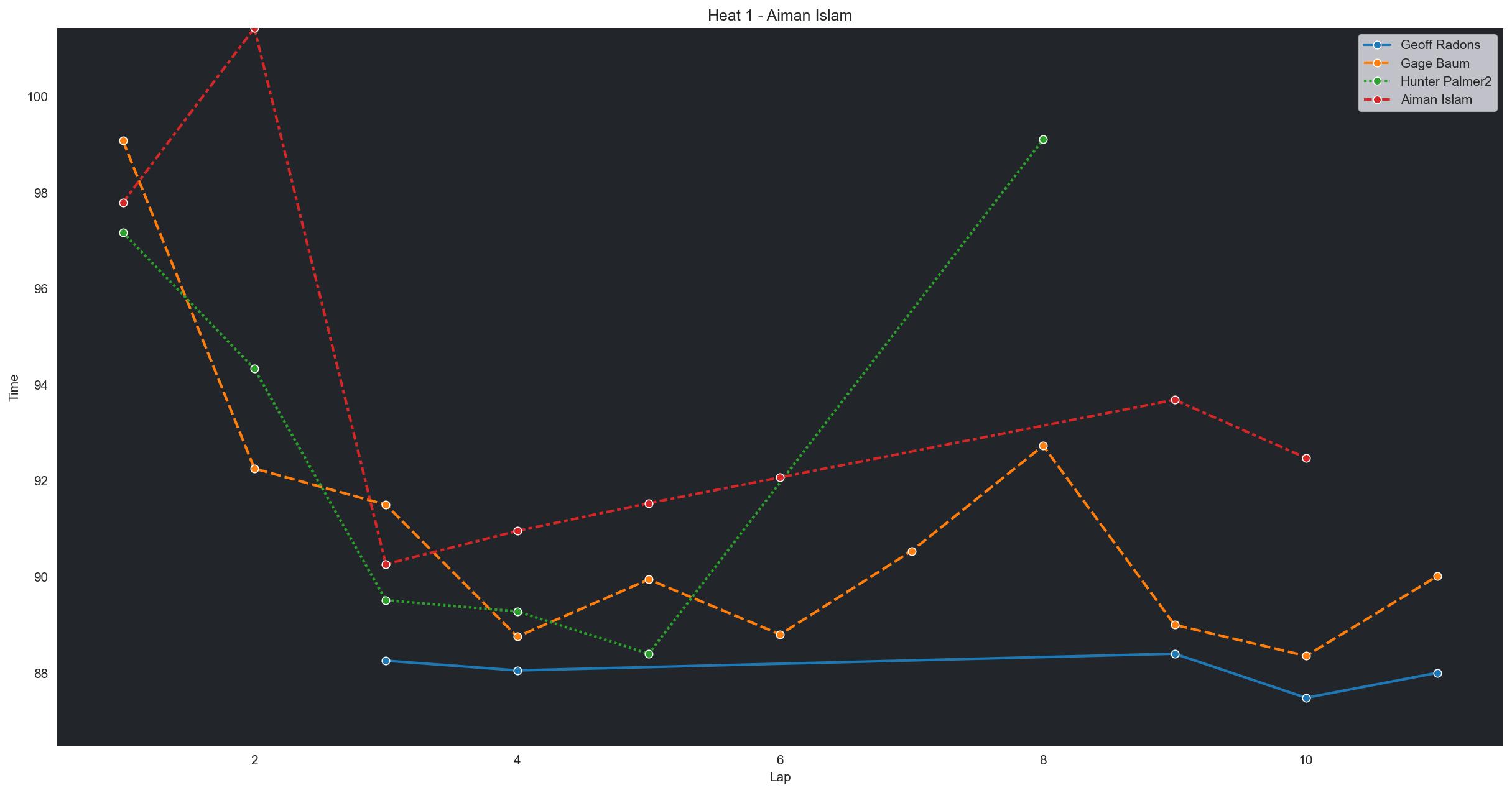 | Eric Sigurdson | 7 | 4 | 1:39.4106 | 1:31.7893 | 1:30.3371 | 1:30.1696 | 1:31.5870 | 1:31.4837 | 1:31.1819 | 1:30.5142 | 1:30.9637 | 1:31.1360 | 0 |