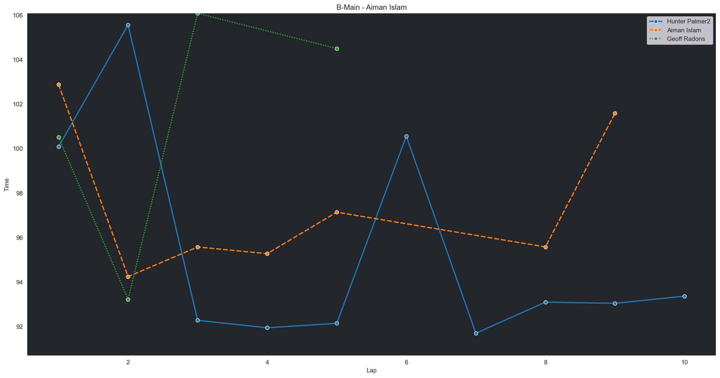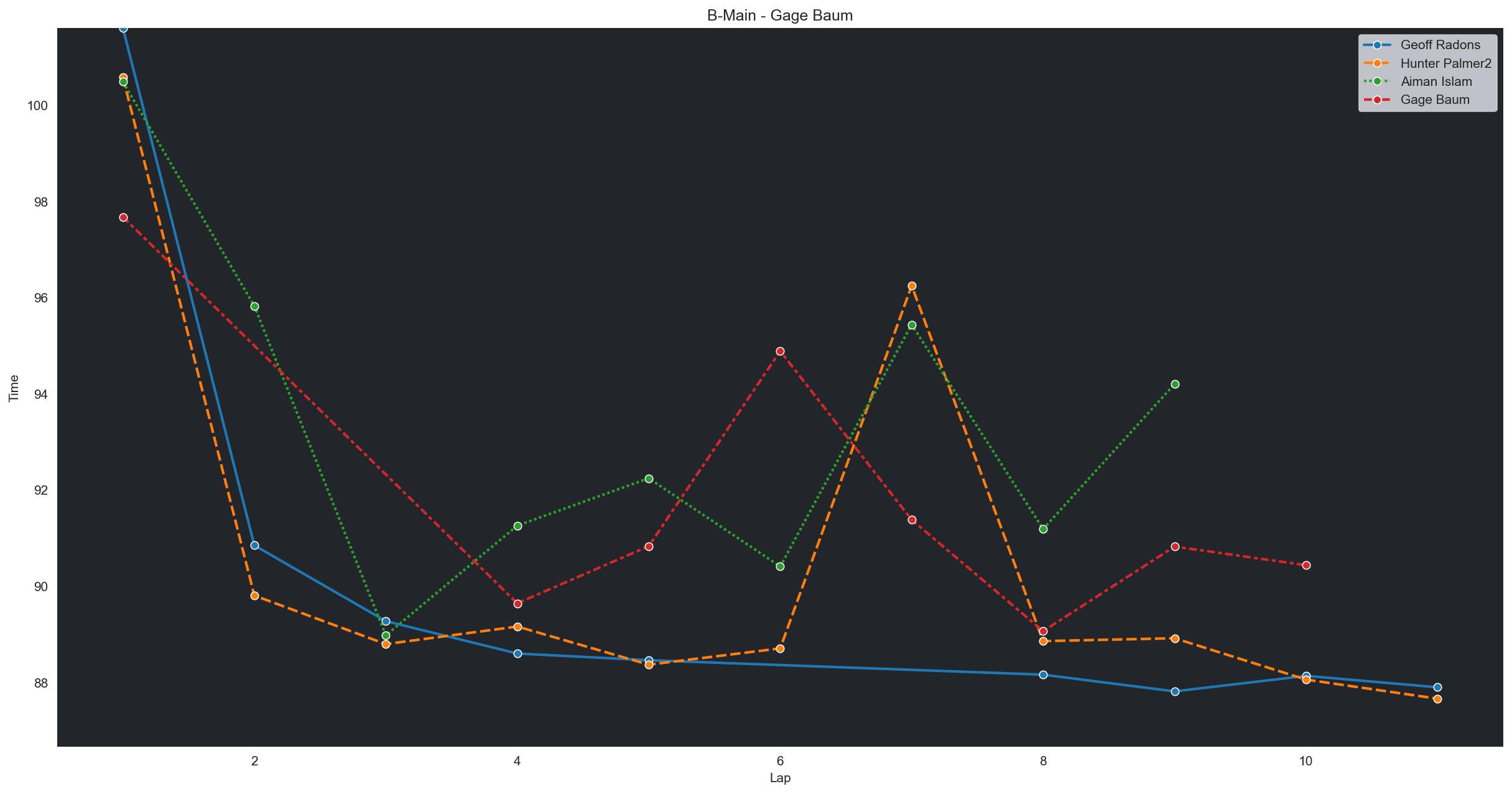 | Mikey Howanic | 3 | 6 | 1:34.6073 | 1:30.2862 | 1:29.5249 | 1:29.1345 | 1:29.0453 | 1:29.1594 | 1:29.7199 | 1:28.8114 | 1:28.9012 | 1:32.6091 | 0 |