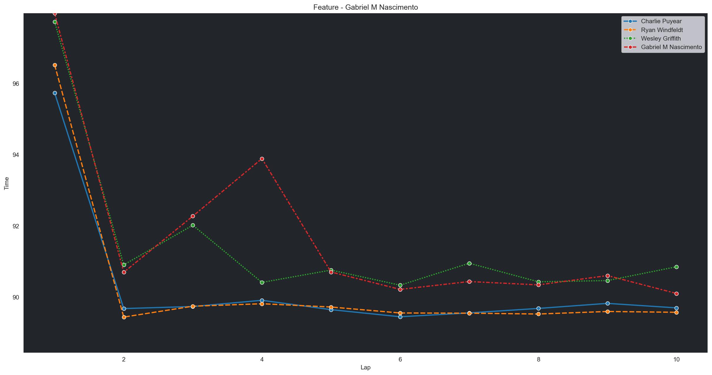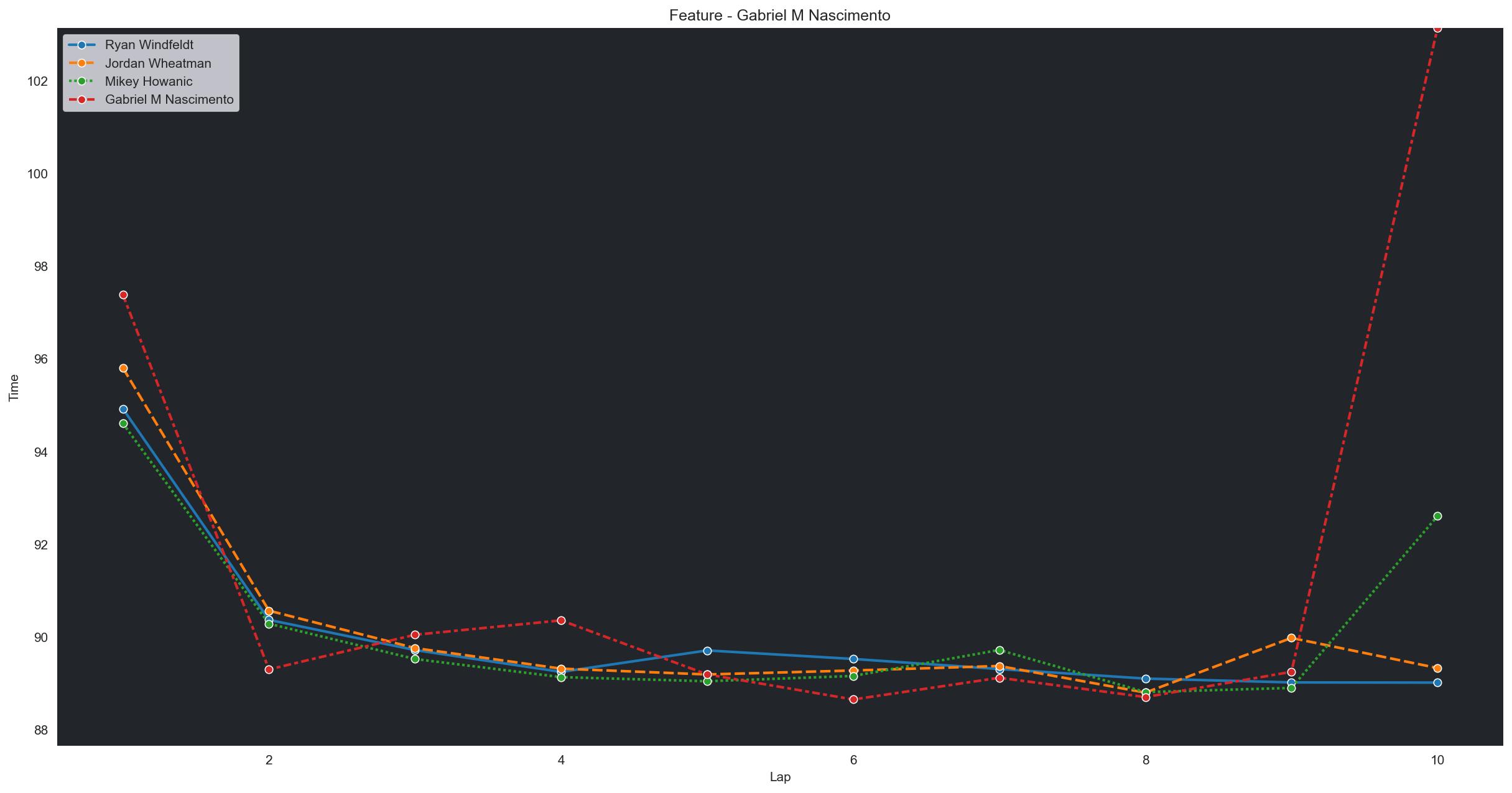 | Gabriel M Nascimento | 5 | 6 | 1:37.3803 | 1:29.3011 | 1:30.0484 | 1:30.3587 | 1:29.1933 | 1:28.6523 | 1:29.1205 | 1:28.7039 | 1:29.2485 | 1:43.1372 | 0 |