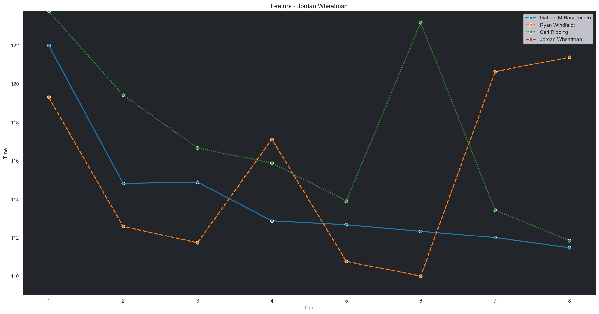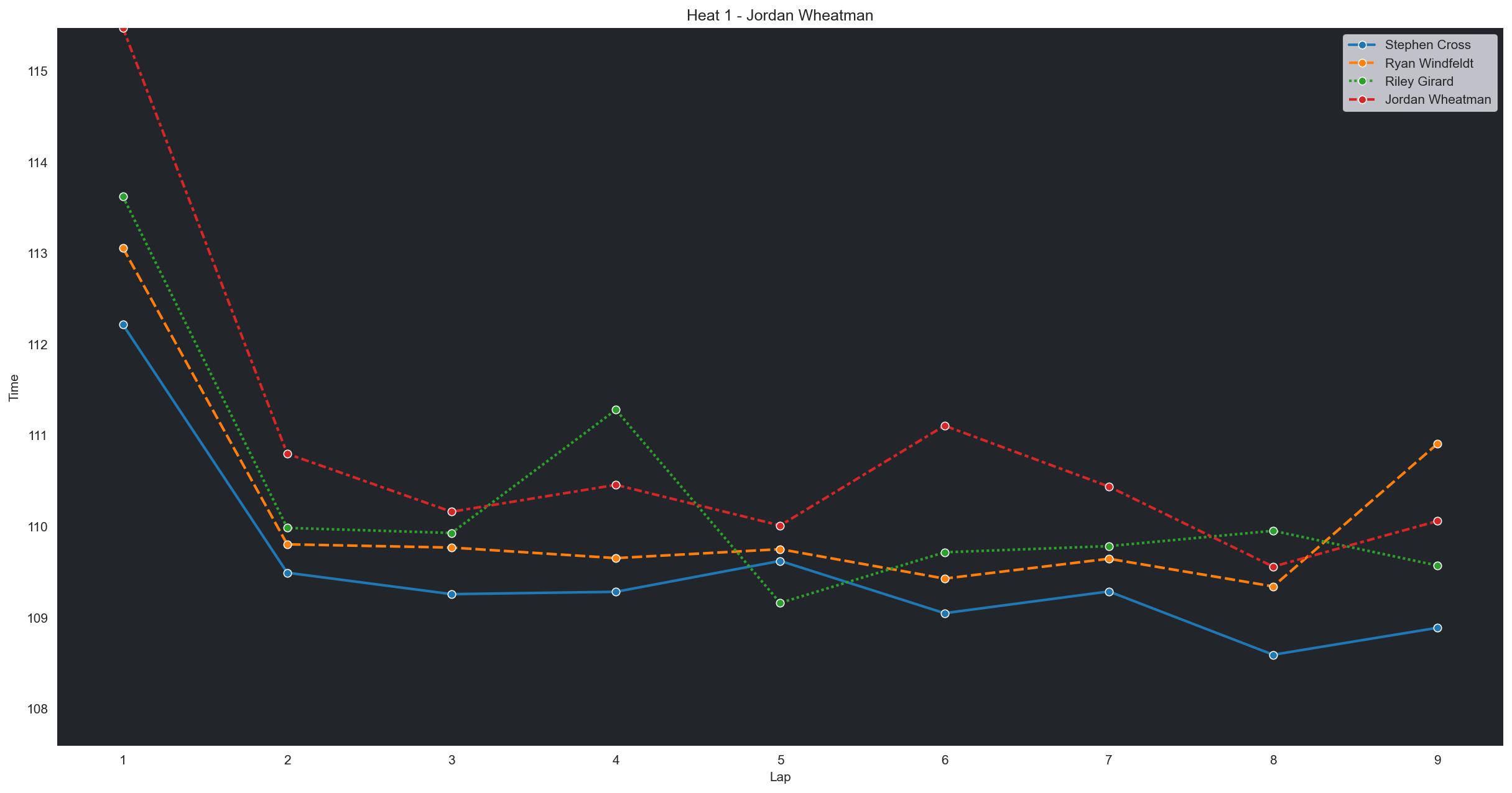 | Jordan Wheatman | 5 | 5 | 2:15.2965 | 2:13.3042 | 2:11.8311 | 2:11.5675 | 2:12.1715 | 2:11.6573 | 2:12.1816 | 0 | |