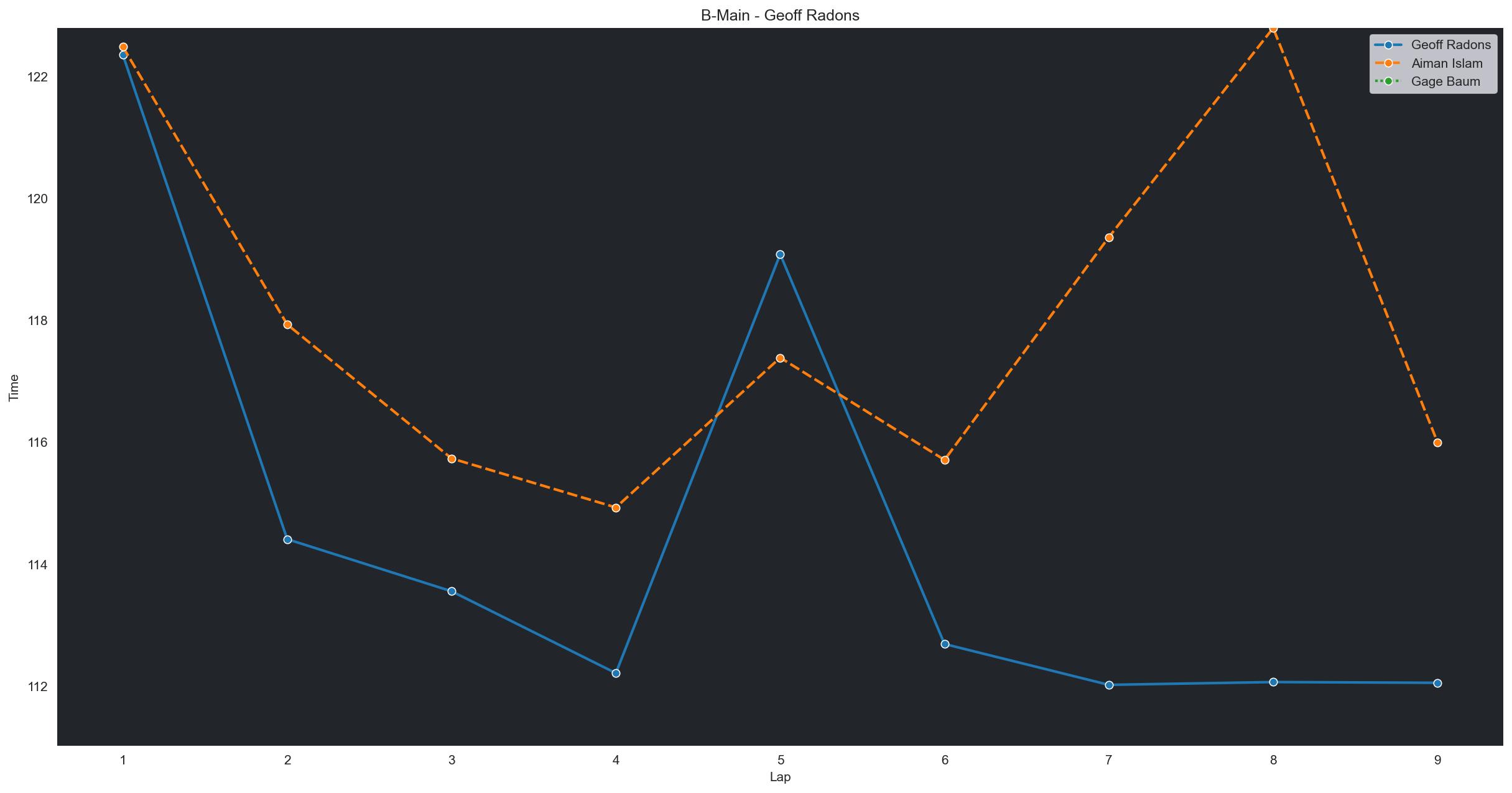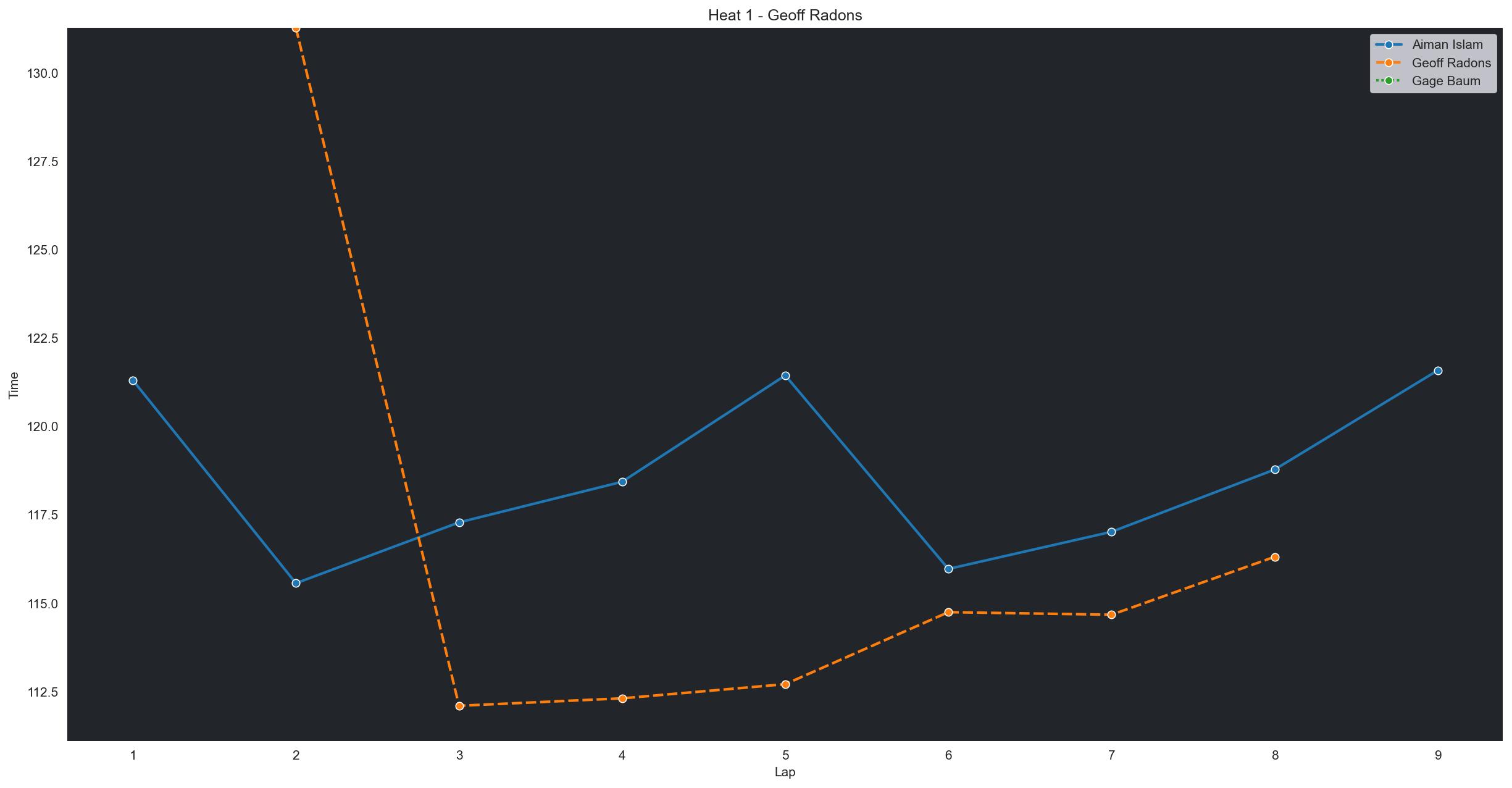| Geoff Radons | 8 | 4 | 1:42.4026 | 1:36.4774 | 1:33.8474 | 1:34.7154 | 1:33.4704 | 1:33.5996 | 1:33.5609 | 1:35.0761 | 1:35.3821 | 1:36.6676 | 0 |