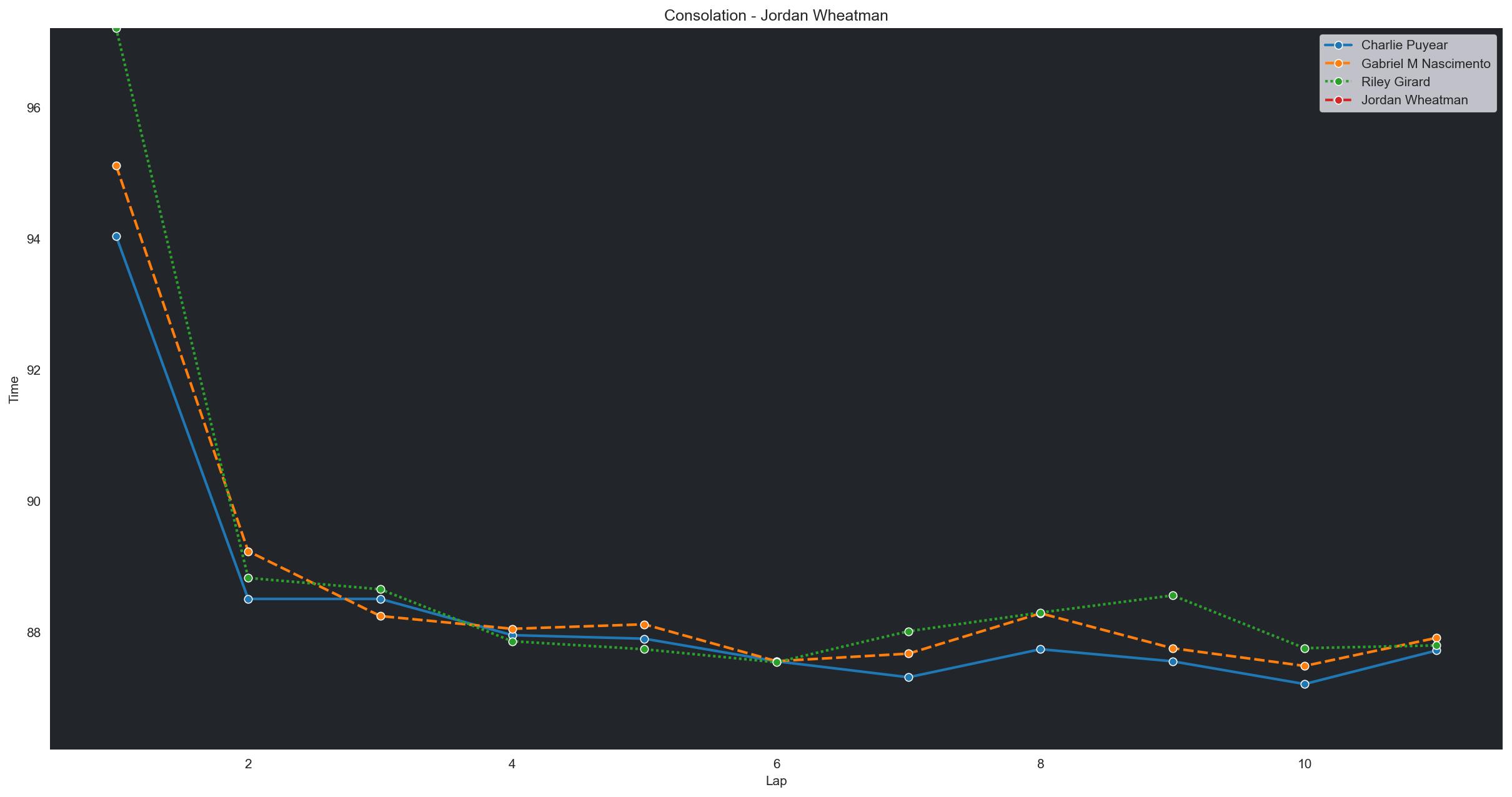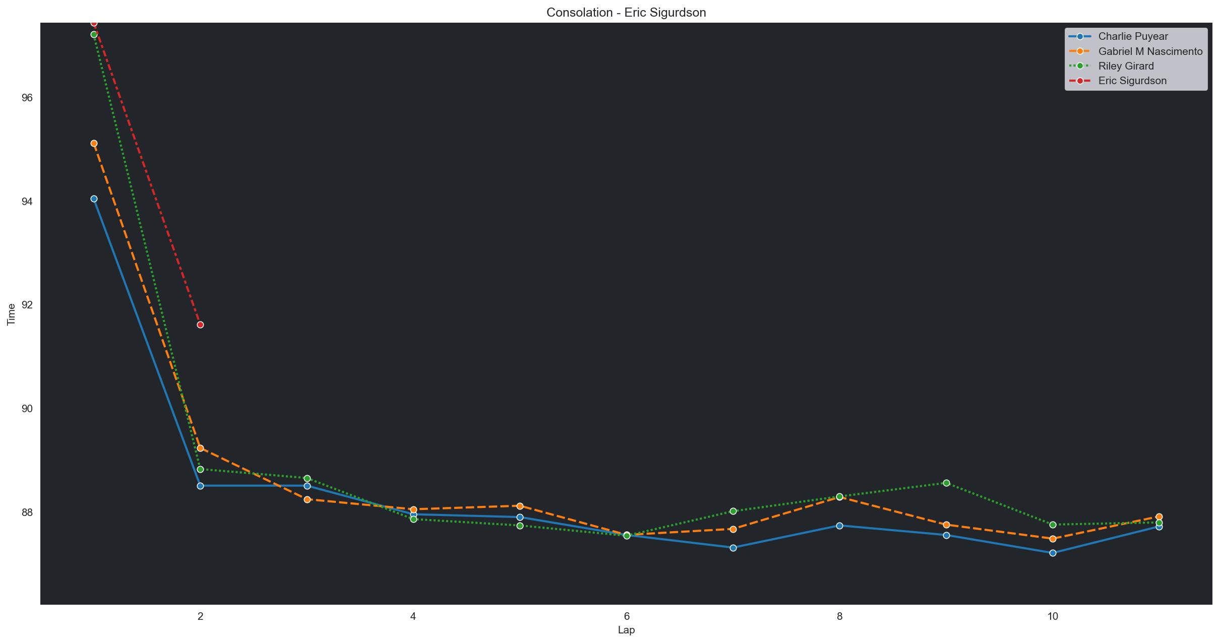 | Riley Girard | 2 | 4 | 1:42.4907 | 1:33.3963 | 1:34.0390 | 1:34.8998 | 1:33.1798 | 1:32.6175 | 1:32.3541 | 1:31.9243 | 1:35.4164 | 1:32.2992 | 0 |