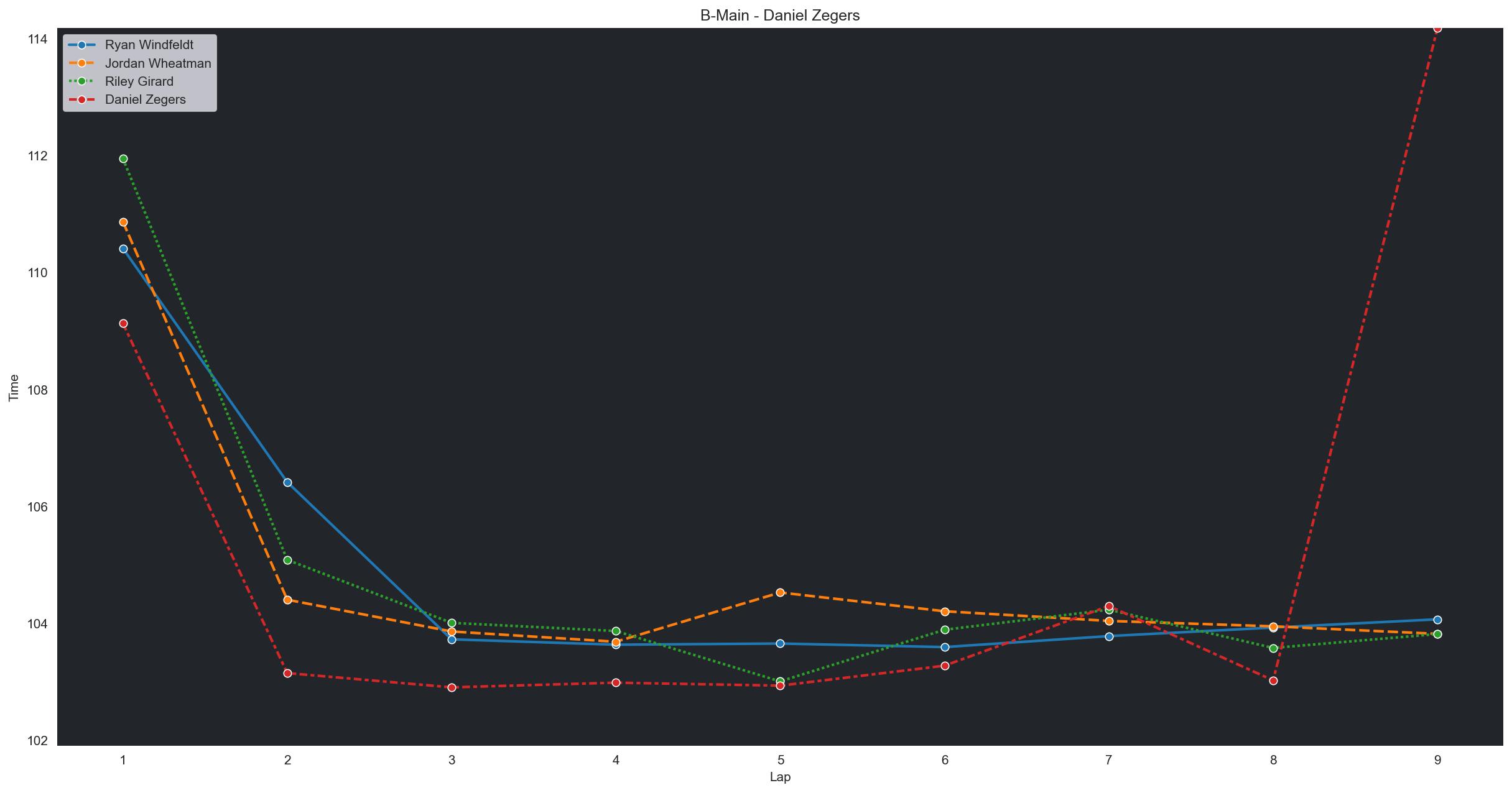 | Riley Girard | 7 | 4 | 1:38.0312 | 1:41.3156 | 1:33.7476 | 1:35.6468 | 1:33.4589 | 1:32.6022 | 1:32.8000 | 1:35.9287 | 1:35.1578 | 1:33.0234 | 0 |
