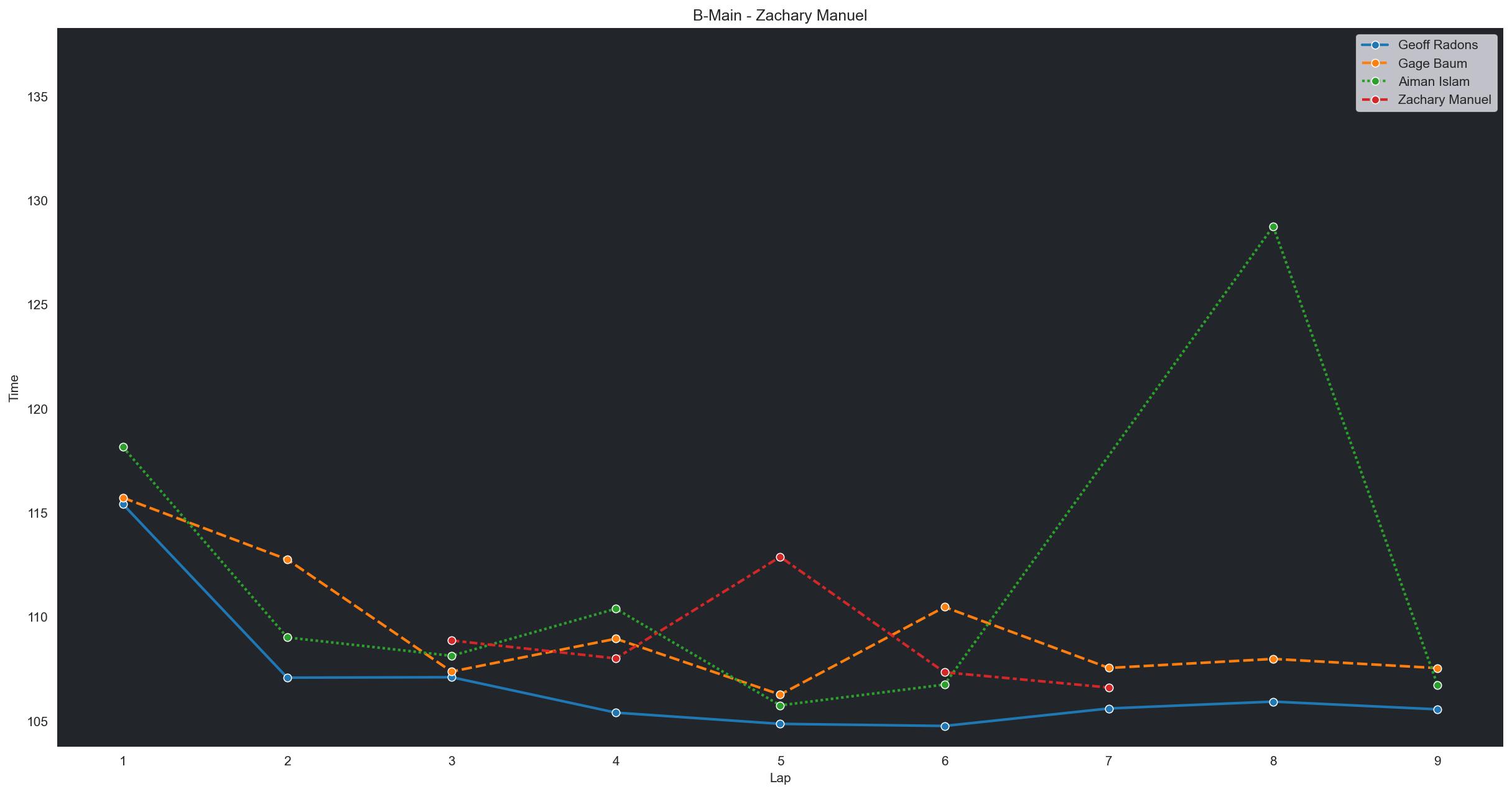 | Aiman Islam | 7 | 4 | 1:48.3005 | 1:35.0226 | 1:35.5541 | 1:51.7335 | 1:35.5927 | 1:37.3149 | 1:34.9442 | 1:36.3491 | 1:34.6310 | 1:36.3737 | 0 |