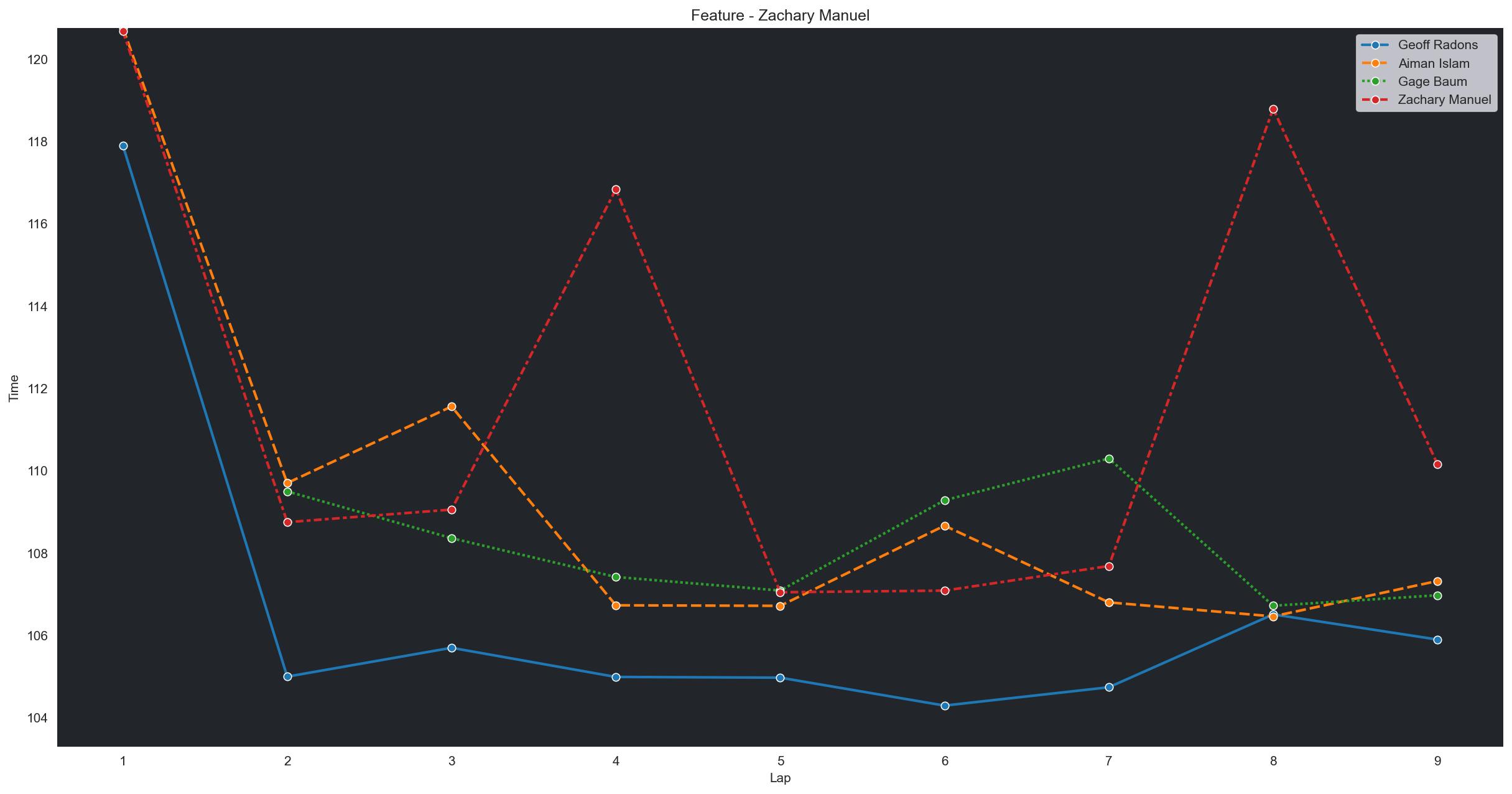 | Greg Zenhye | 3 | 5 | 1:42.0699 | 1:34.6700 | 1:35.4319 | 1:34.8316 | 1:33.5419 | 1:33.9207 | 1:33.3747 | 1:33.7311 | 1:33.6863 | 1:35.9047 | 0 |