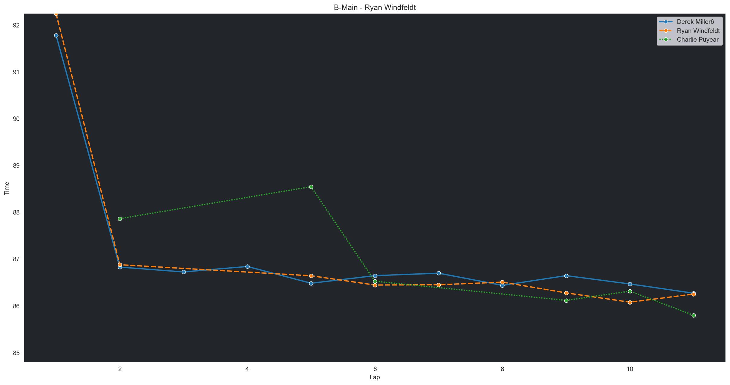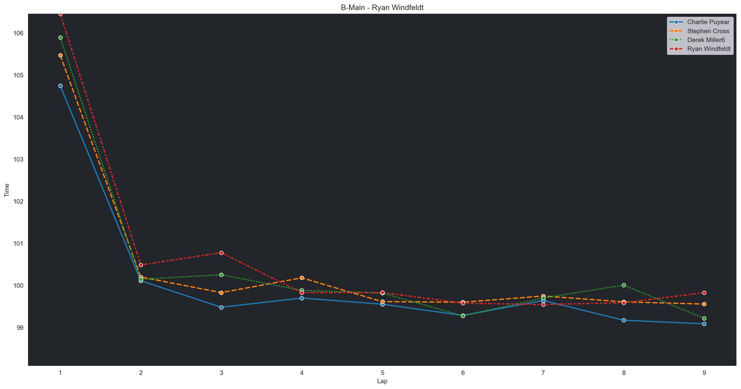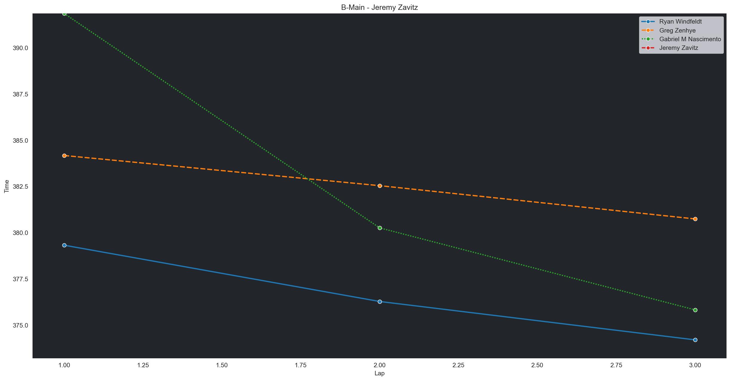 | Ryan Windfeldt | 1 | 8 | 1:34.9239 | 1:30.3692 | 1:29.7185 | 1:29.2469 | 1:29.7101 | 1:29.5264 | 1:29.3091 | 1:29.1031 | 1:29.0201 | 1:29.0161 | 0 |
