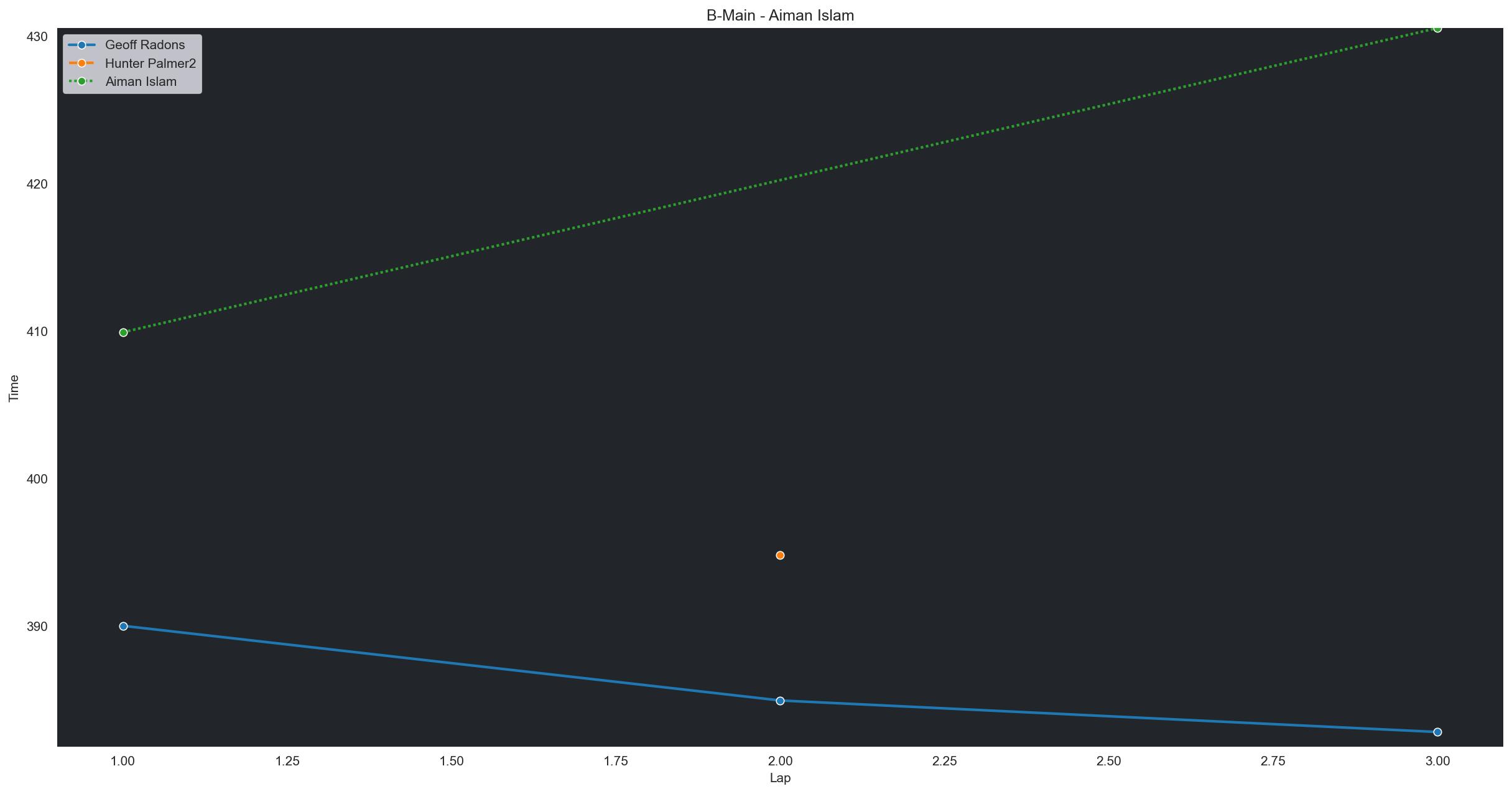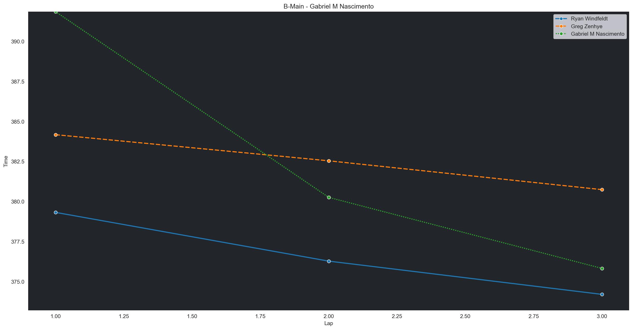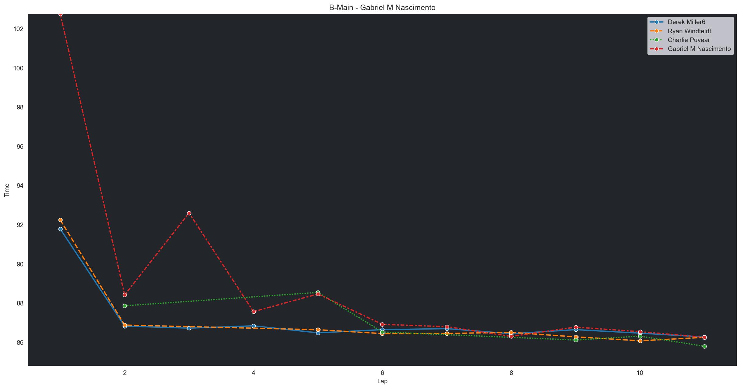 | Ryan Windfeldt | 1 | 8 | 1:34.9239 | 1:30.3692 | 1:29.7185 | 1:29.2469 | 1:29.7101 | 1:29.5264 | 1:29.3091 | 1:29.1031 | 1:29.0201 | 1:29.0161 | 0 |
