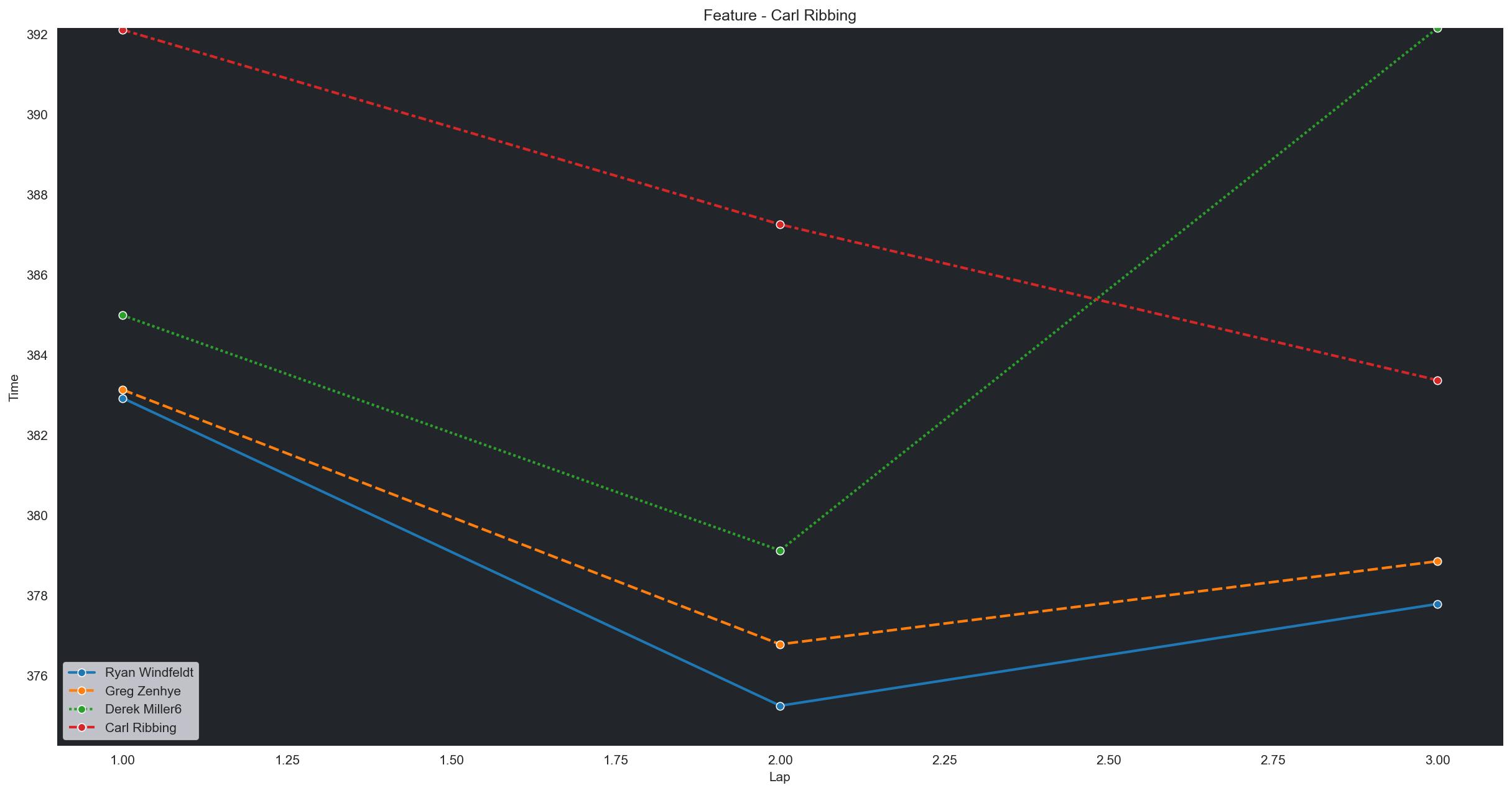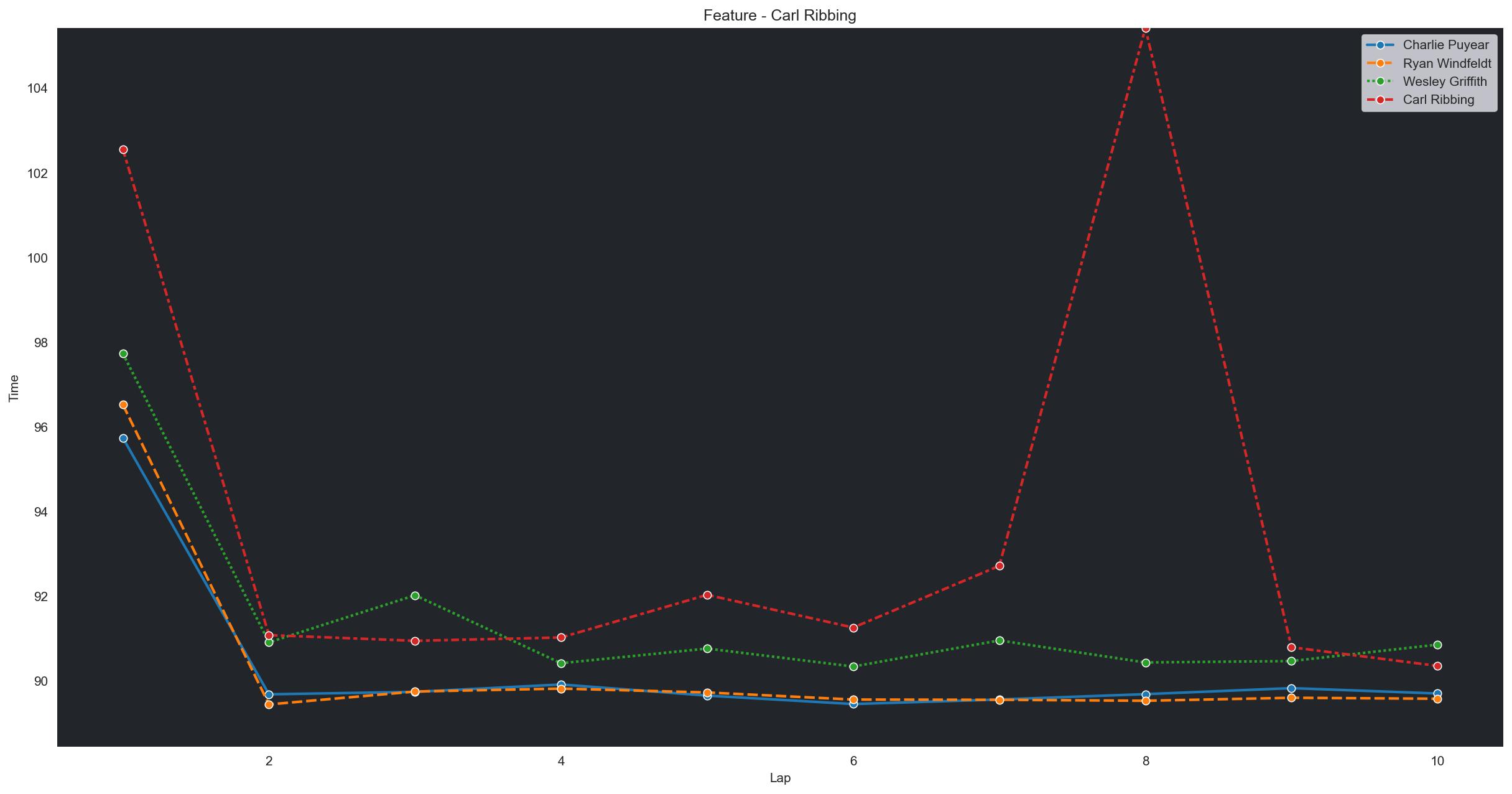 | Carl Ribbing | 6 | 4 | 1:37.3700 | 1:31.6388 | 1:29.7885 | 1:30.8683 | 1:32.1858 | 1:30.4438 | 1:30.8481 | 1:30.3560 | 1:30.3214 | 1:33.0453 | 0 |