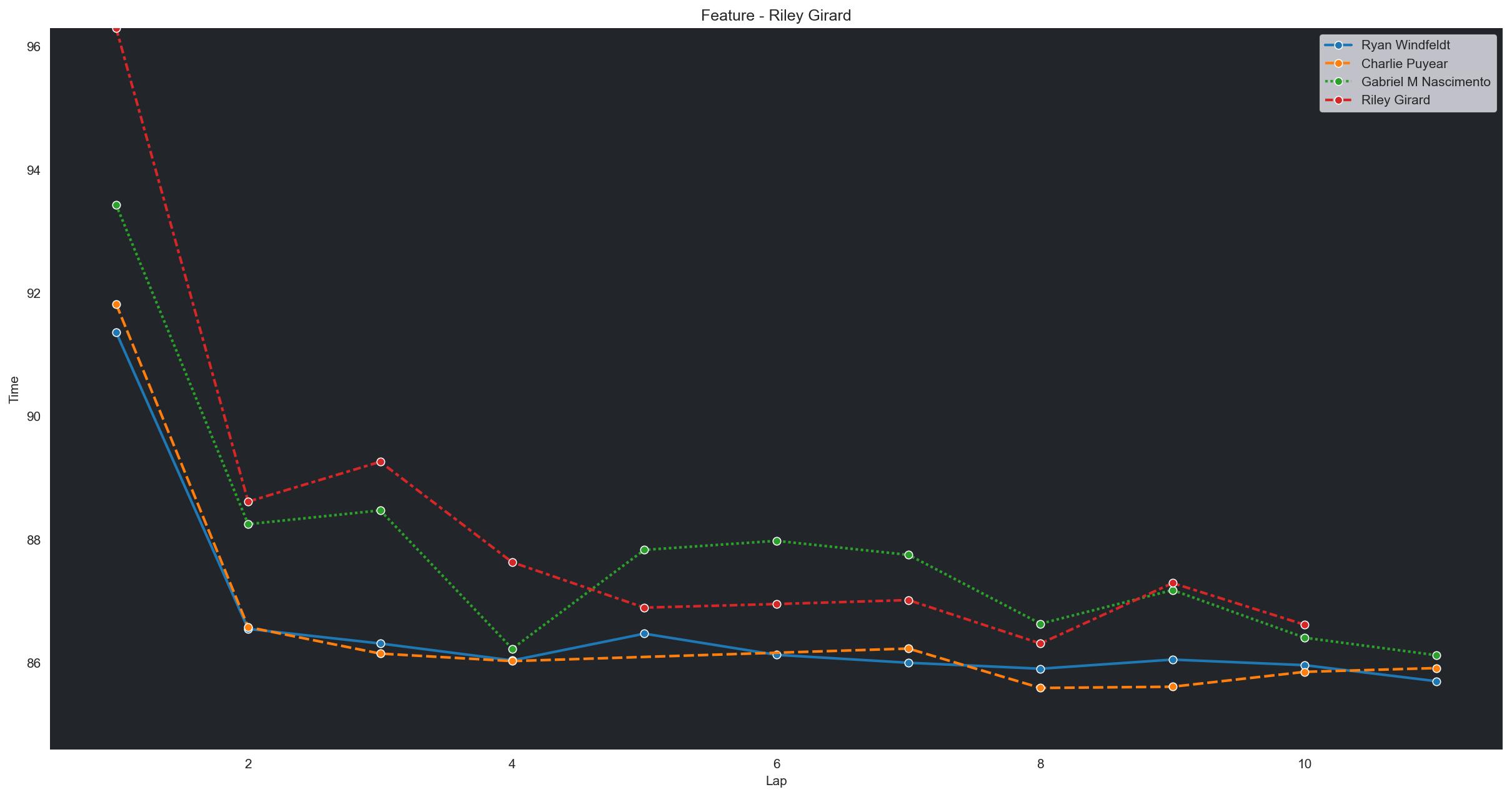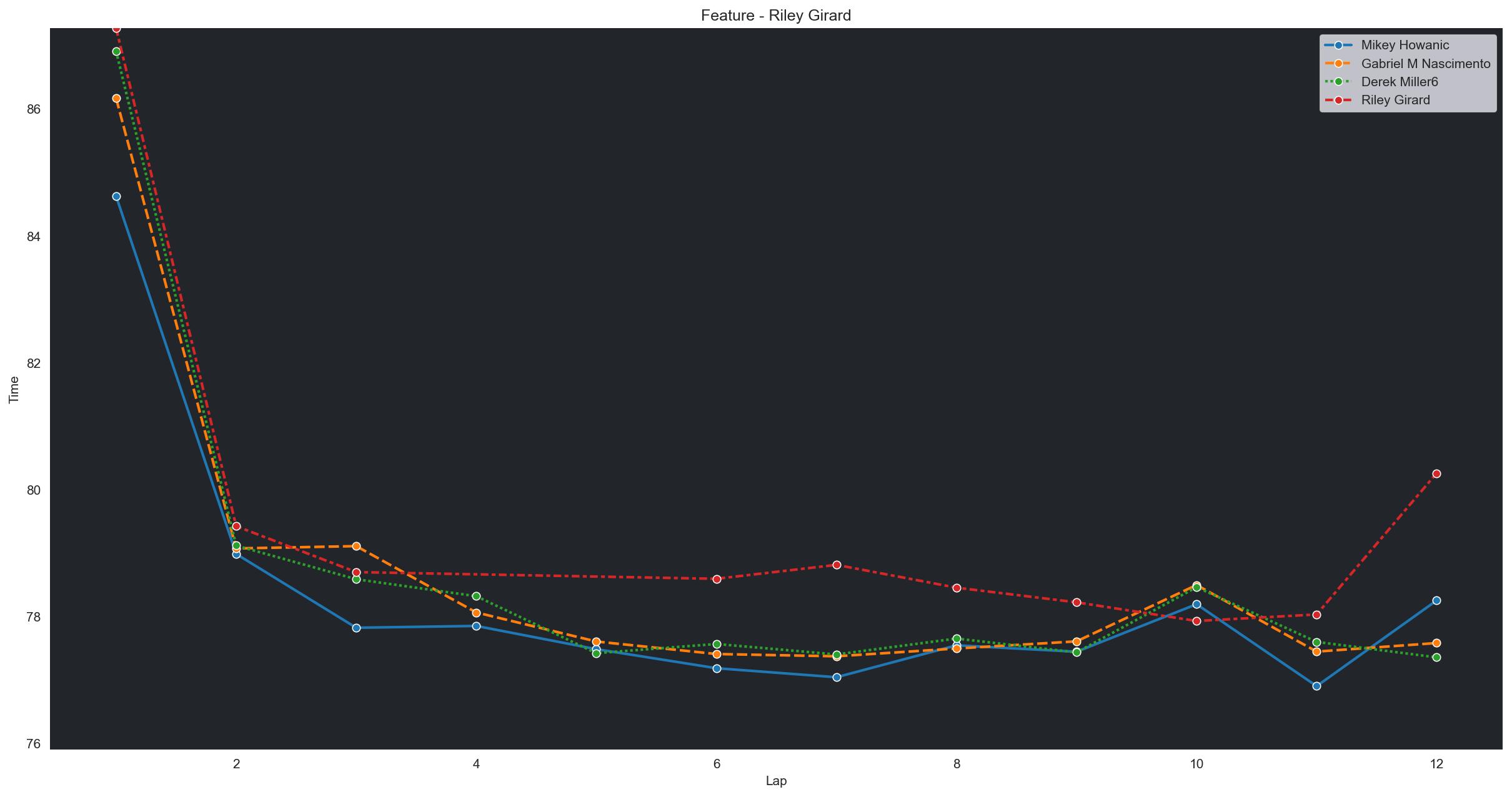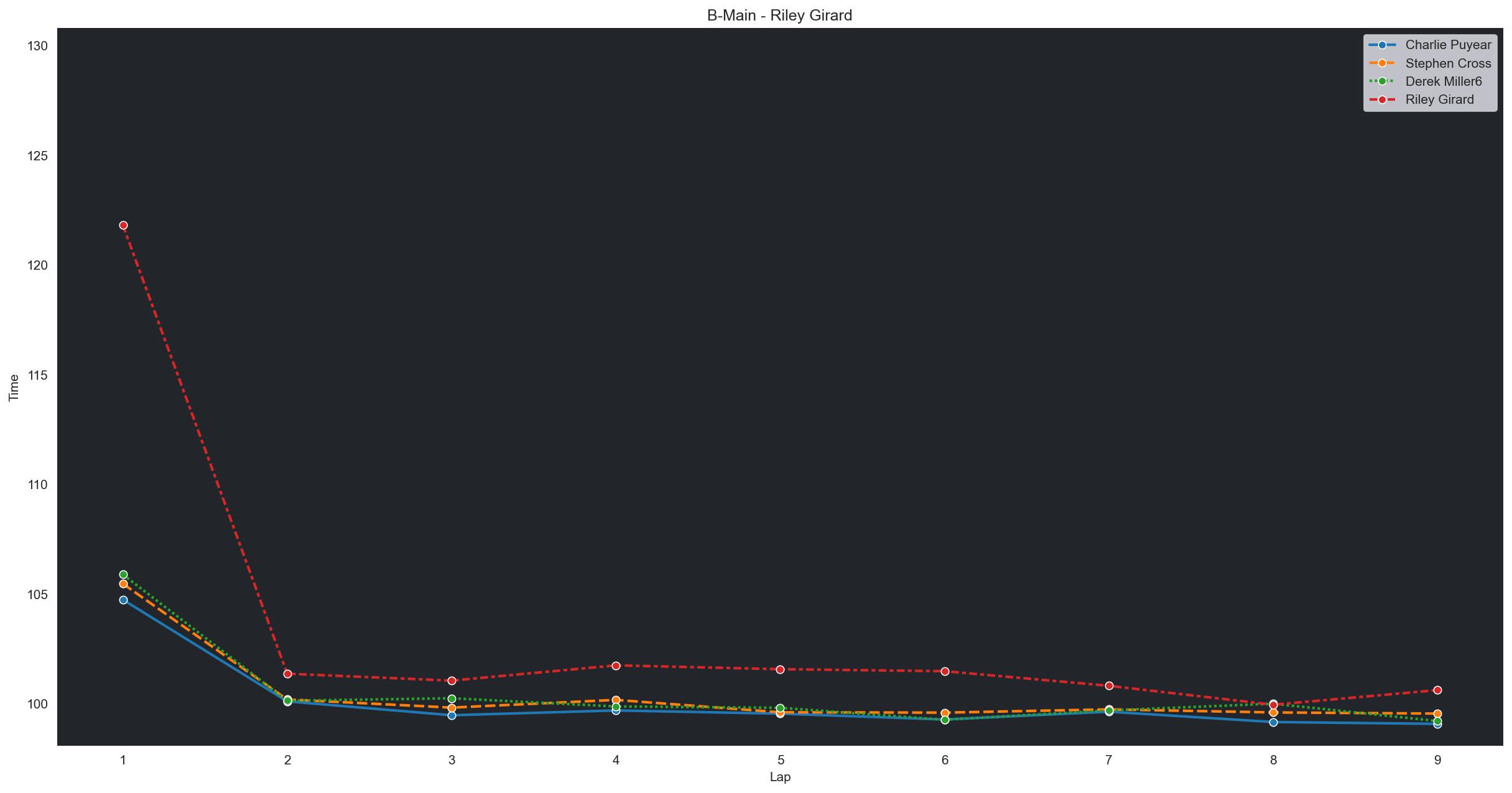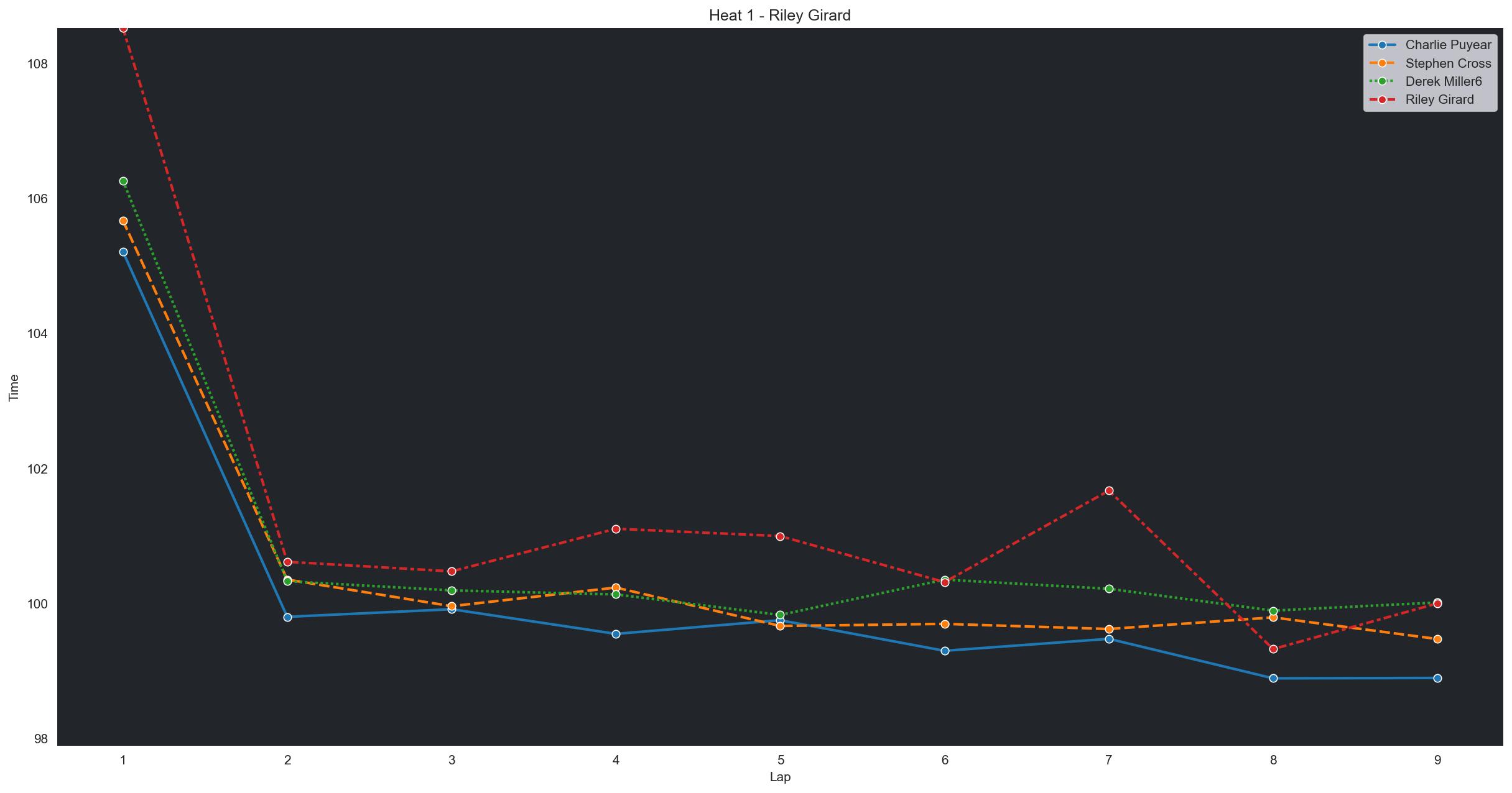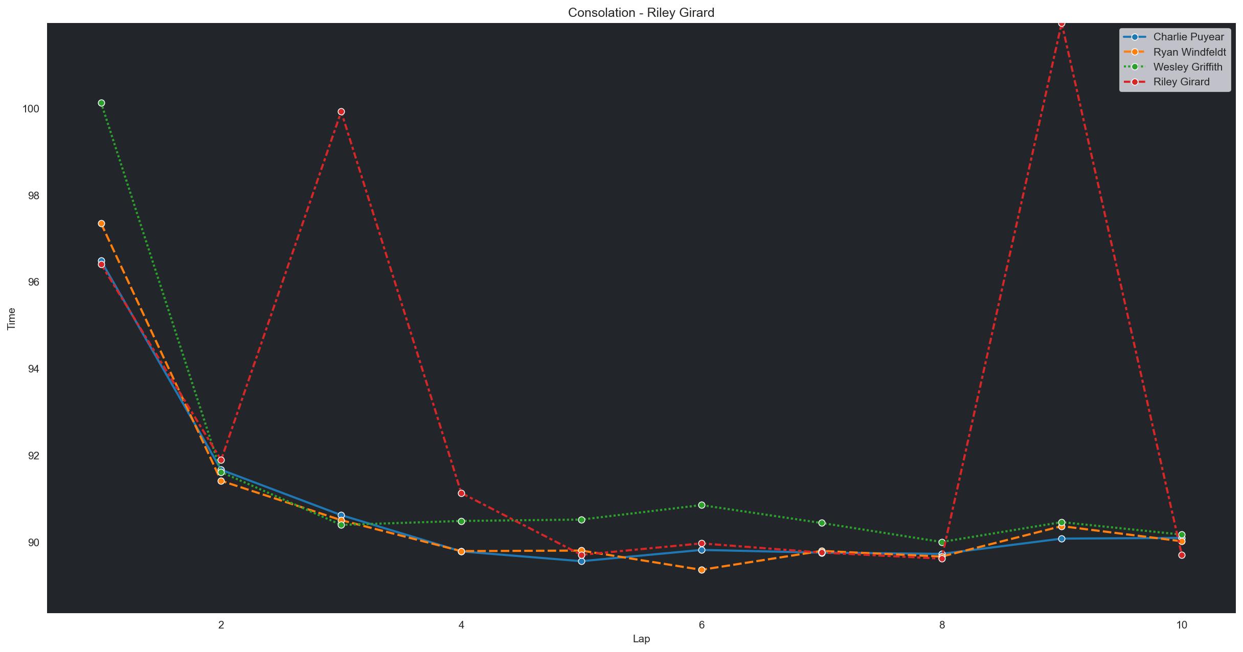 | Riley Girard | 4 | 6 | 1:35.3014 | 1:31.1338 | 1:29.1877 | 1:29.4148 | 1:29.3092 | 1:31.2933 | 1:28.8115 | 1:29.2651 | 1:32.9120 | 1:29.2056 | 0 |