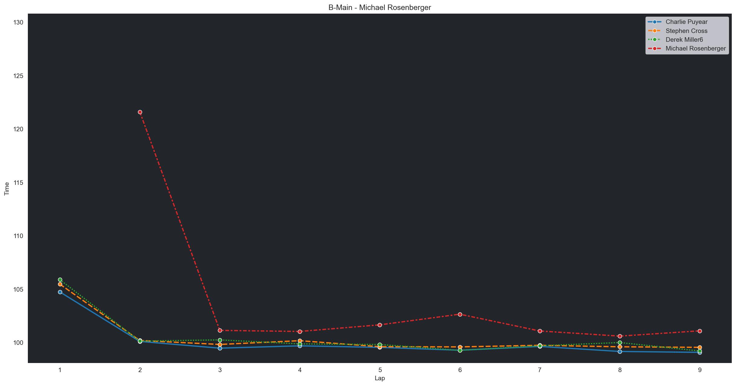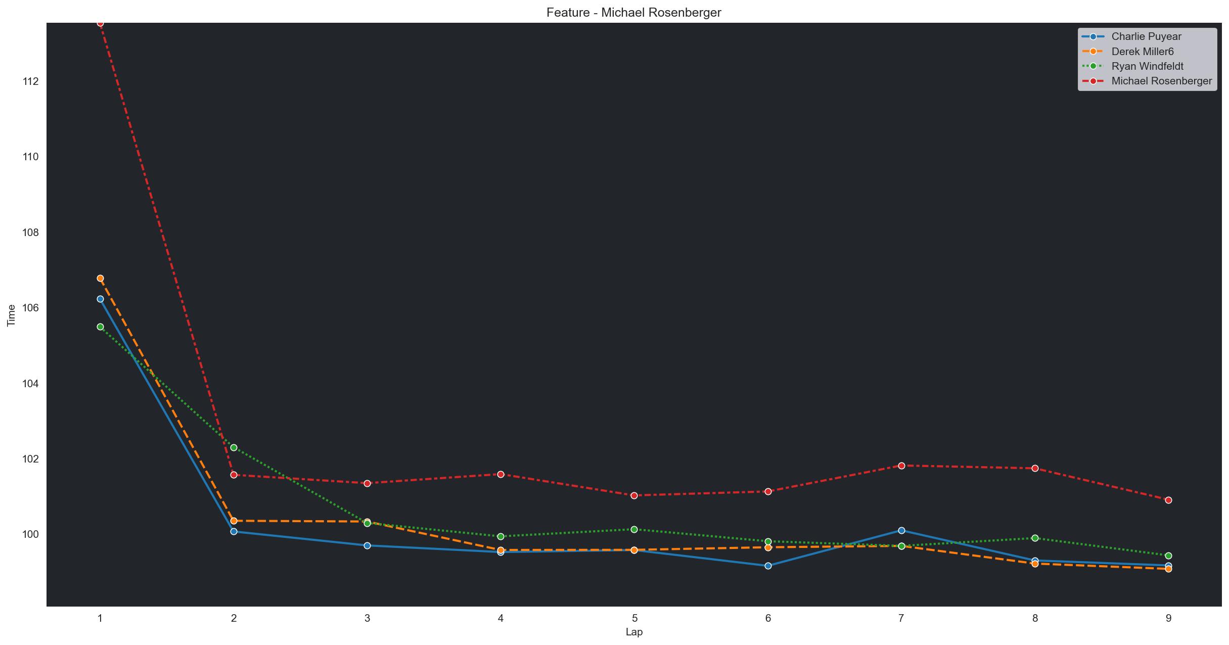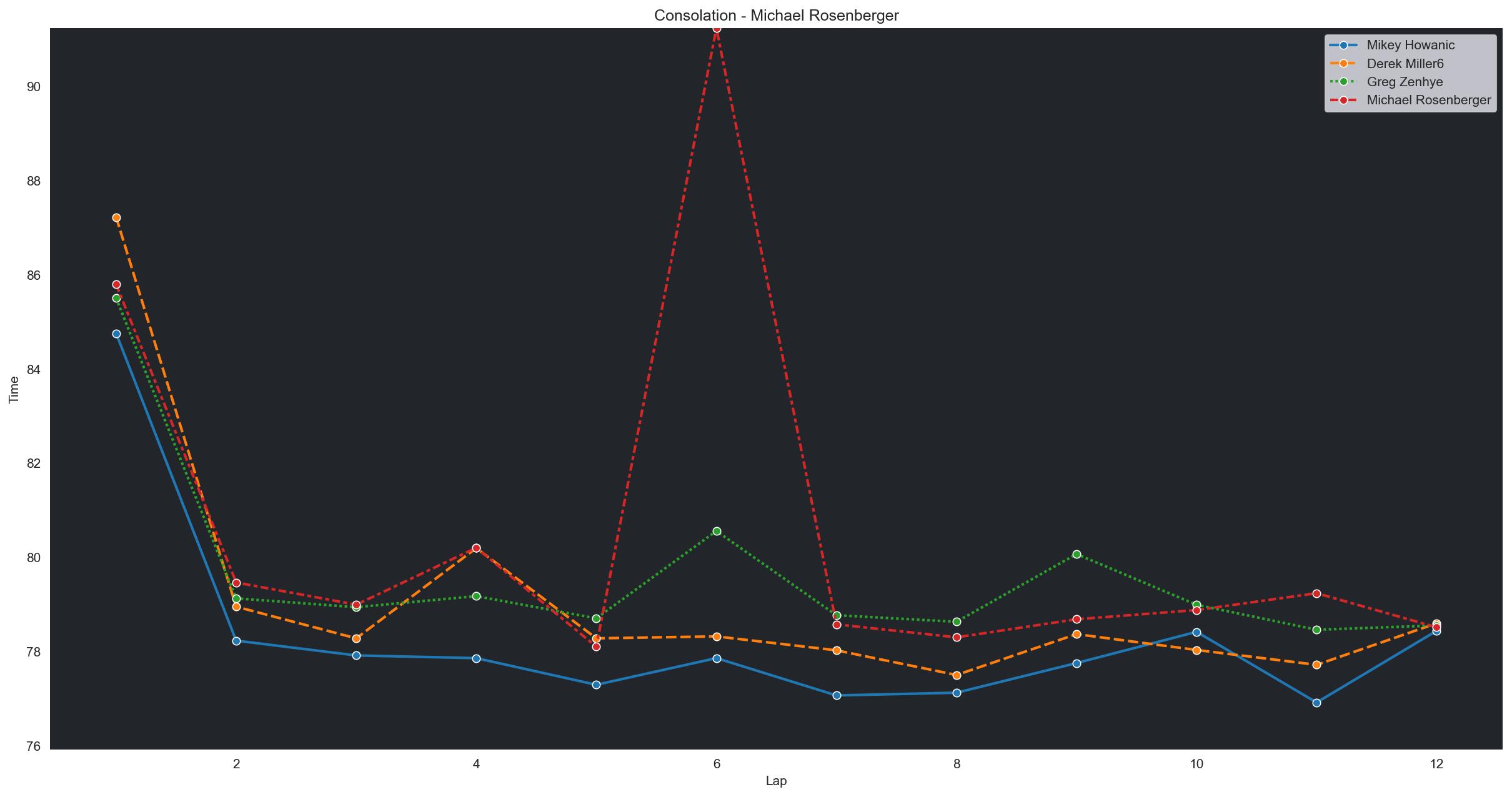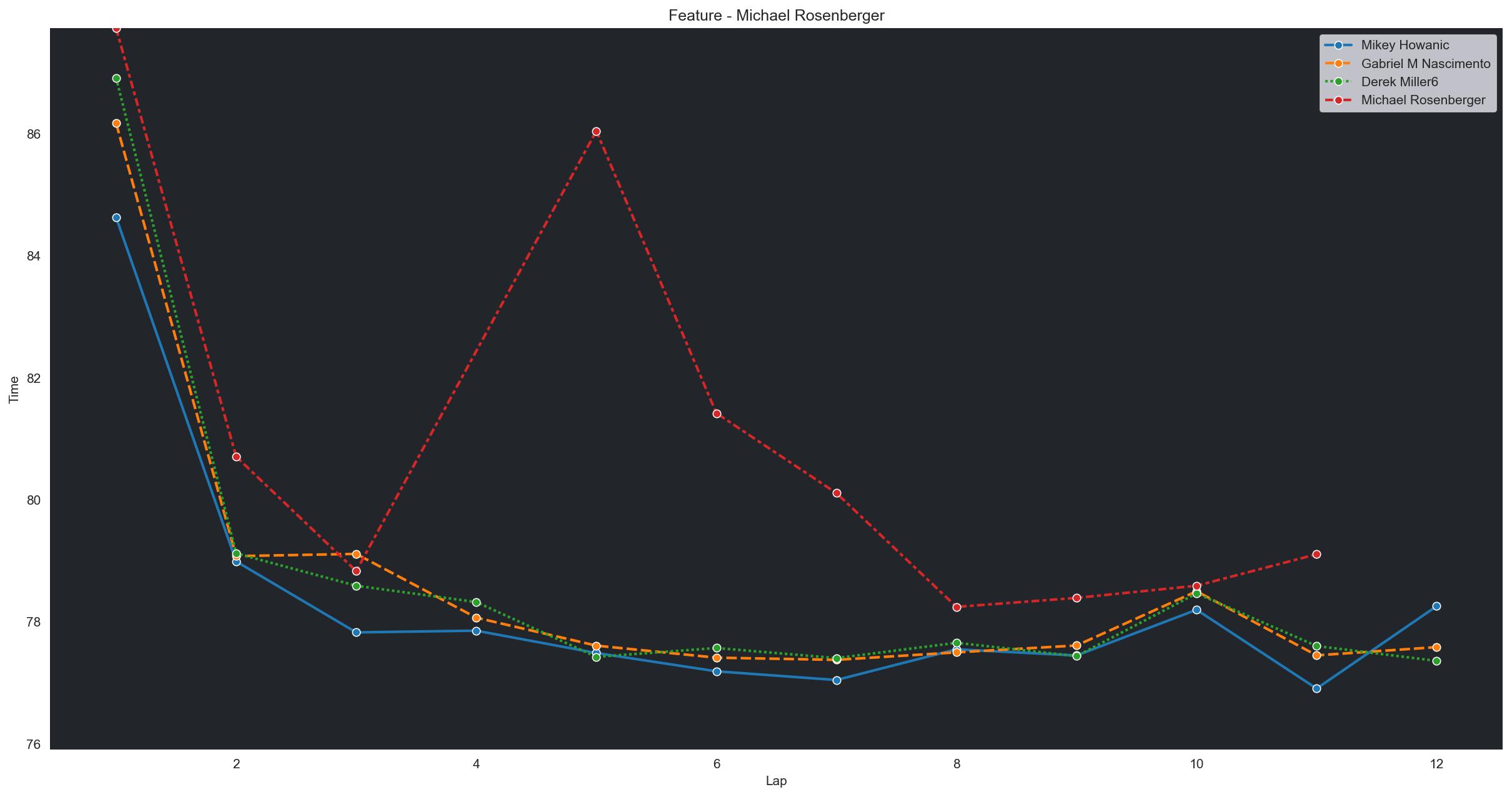 | Michael Rosenberger | 9 | 3 | 1:38.4064 | 1:31.7774 | 1:29.9854 | 1:30.0612 | 1:37.7890 | 1:30.9266 | 1:30.7882 | 1:37.5862 | 1:31.3100 | 1:32.4473 | 0 |