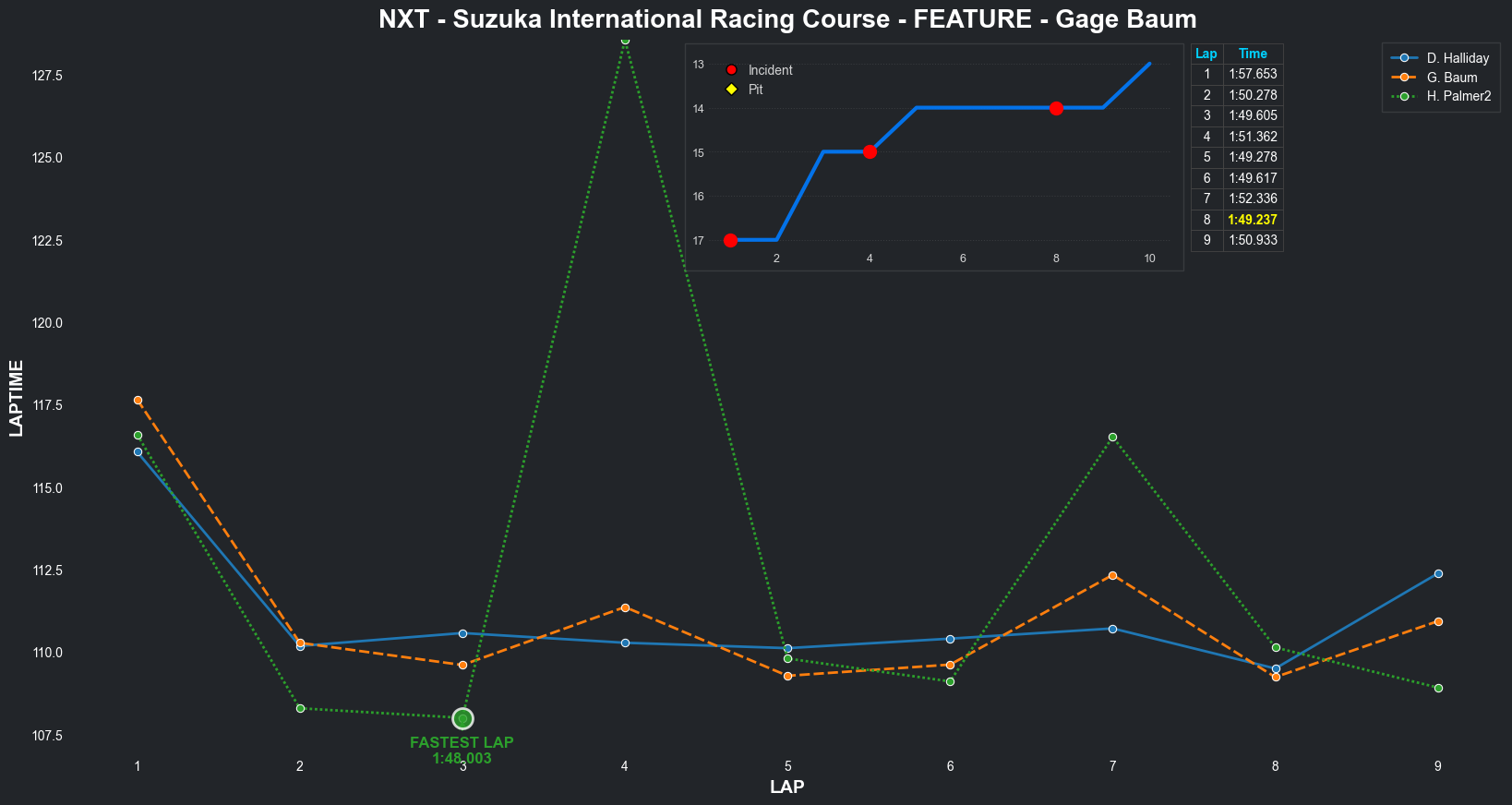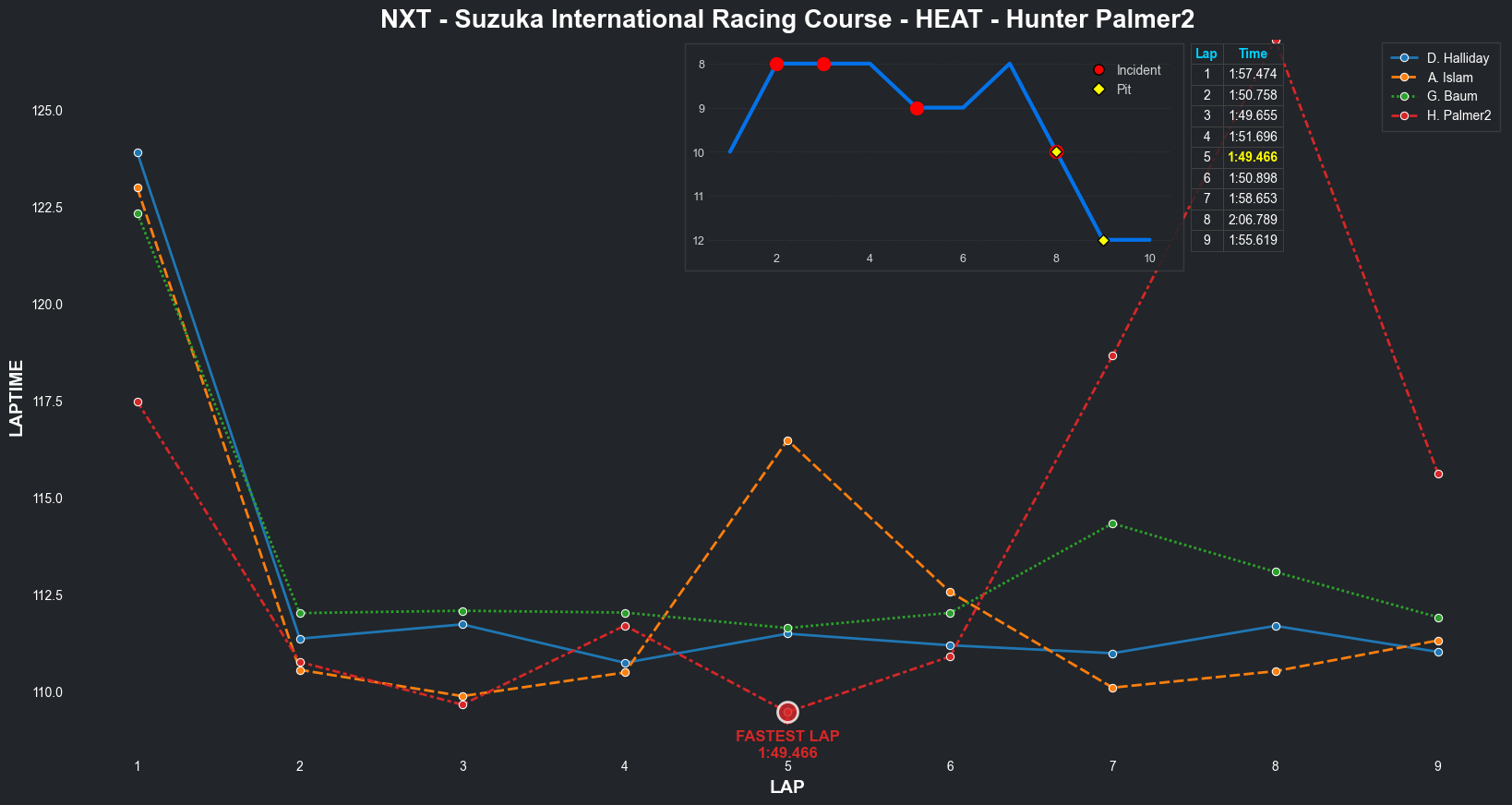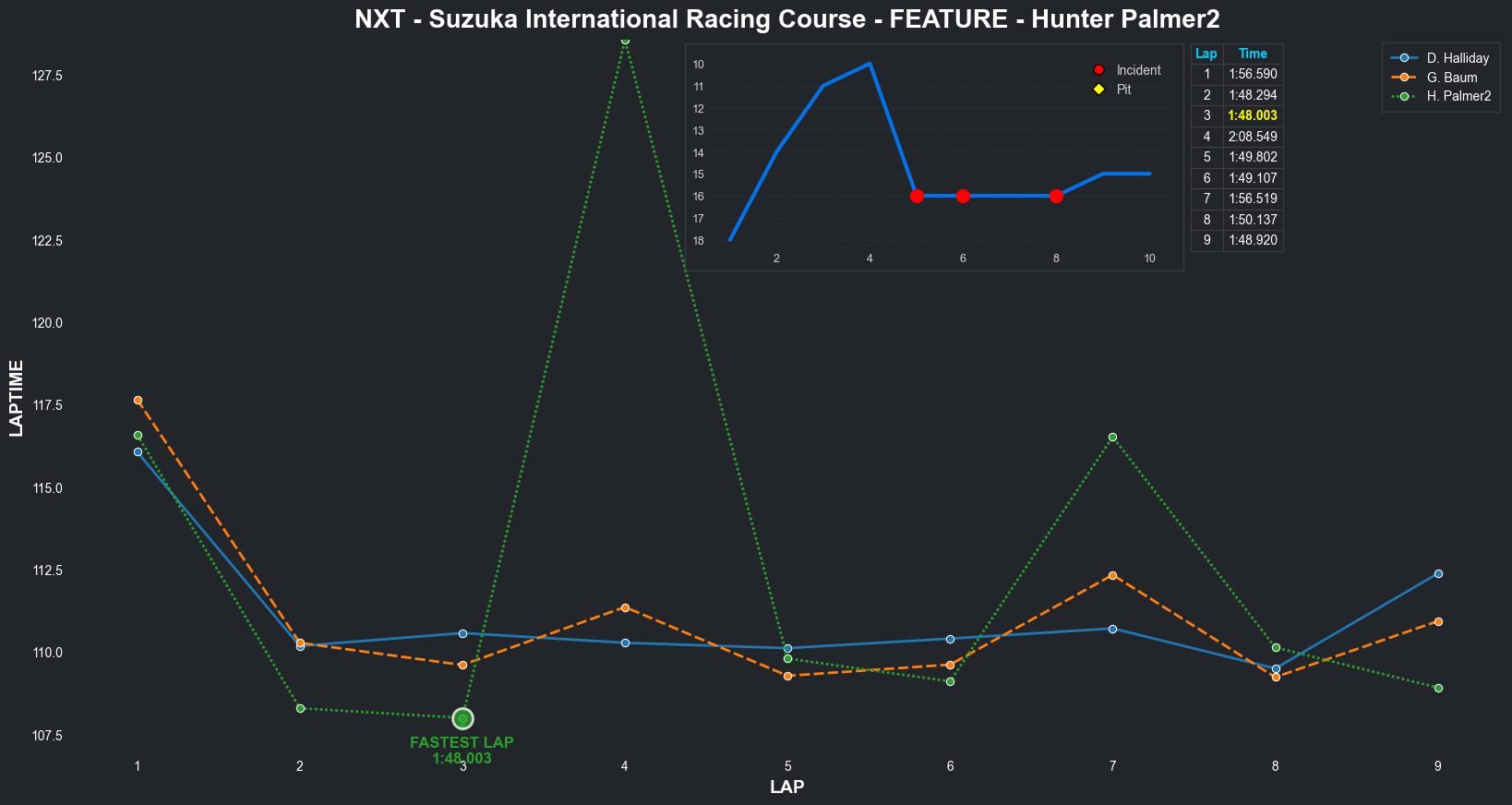 | Hunter Palmer2 | 15 | 3 | 1:56.5896 | 1:48.2942 | 1:48.0032 | 2:08.5489 | 1:49.8019 | 1:49.1072 | 1:56.5192 | 1:50.1369 | 1:48.9203 | 0 | 9 | |