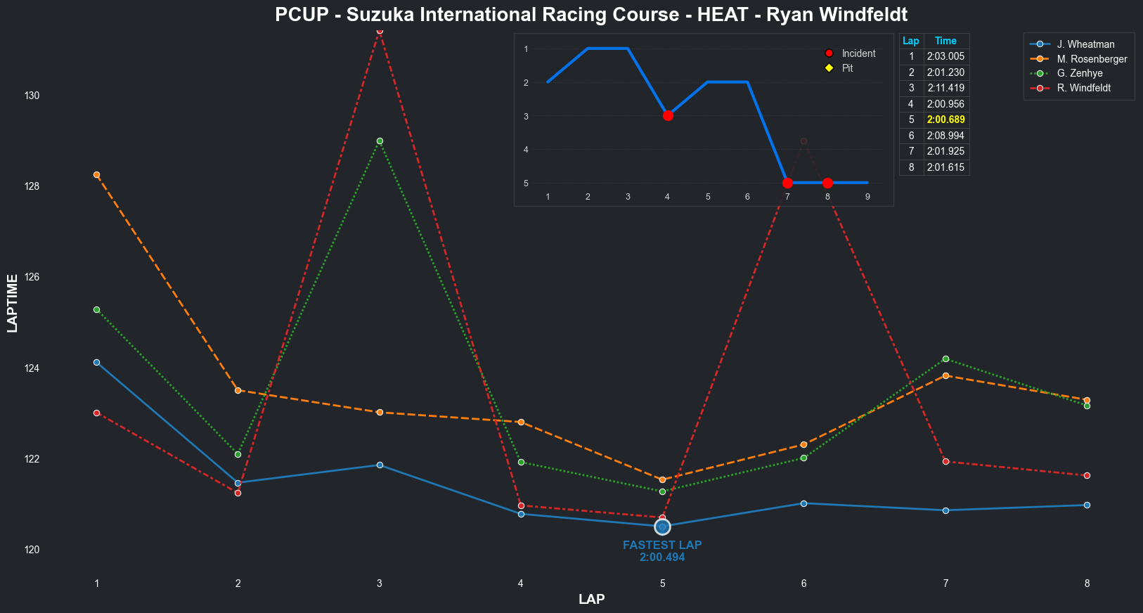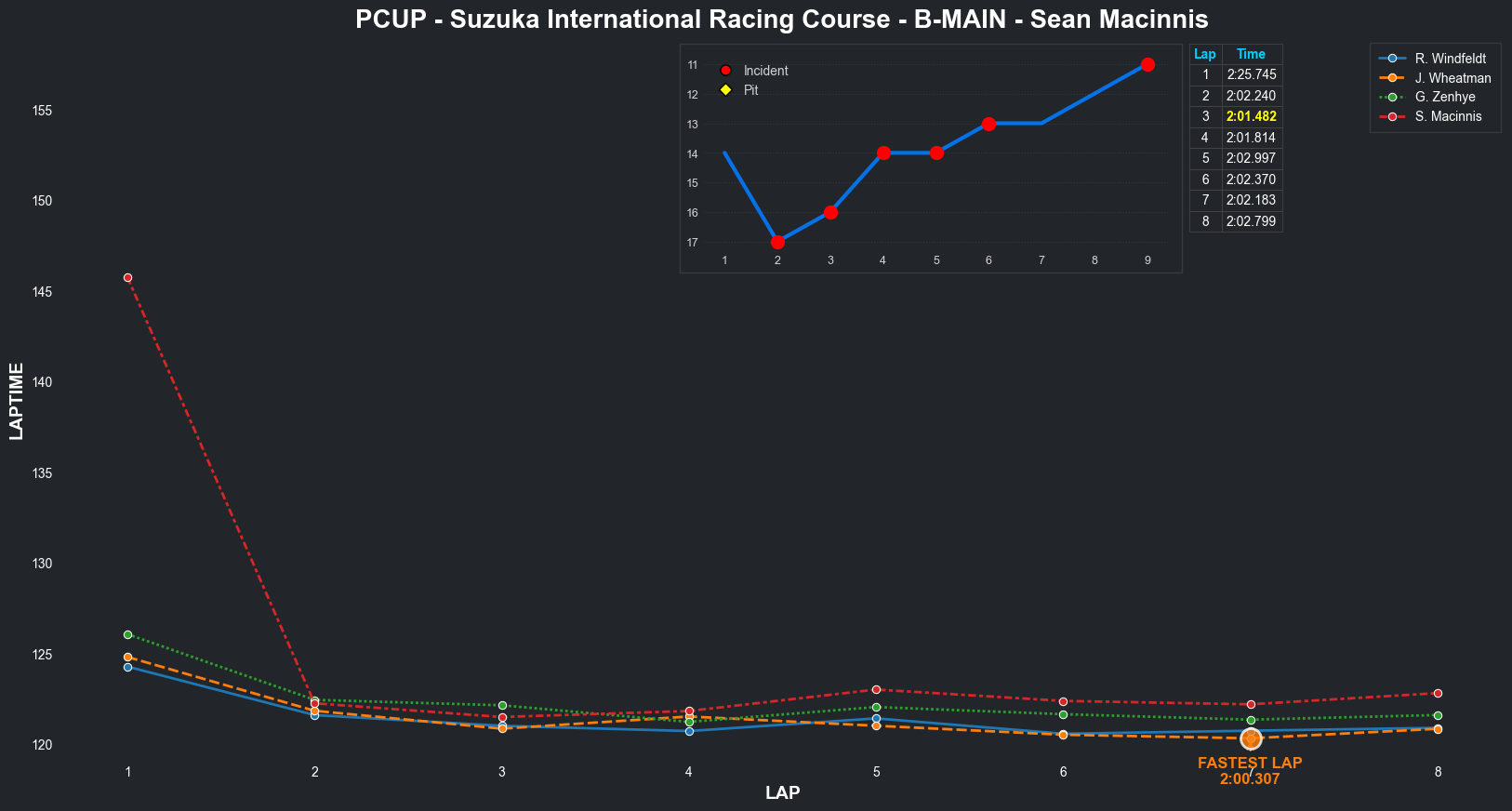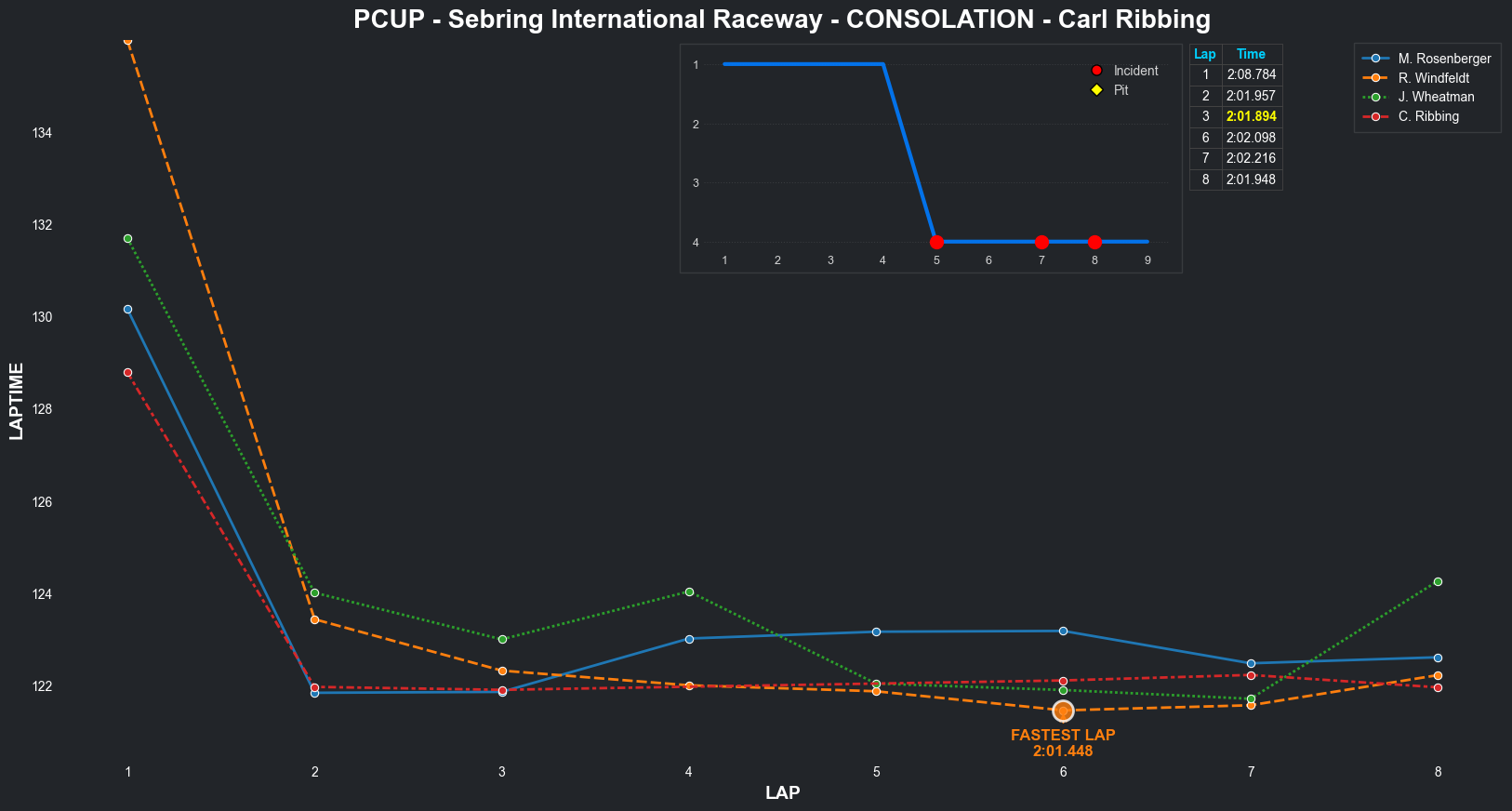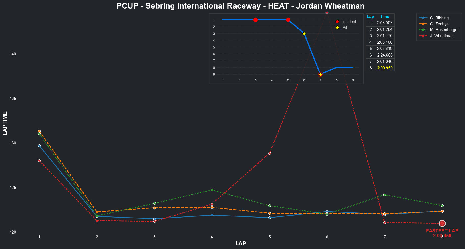 | Jordan Wheatman | 1 | 5 | 2:03.3144 | 2:01.0569 | 2:01.0261 | 2:00.7627 | 2:01.9933 | 2:00.6829 | 2:00.4210 | 2:02.5775 | 0 | 8 |