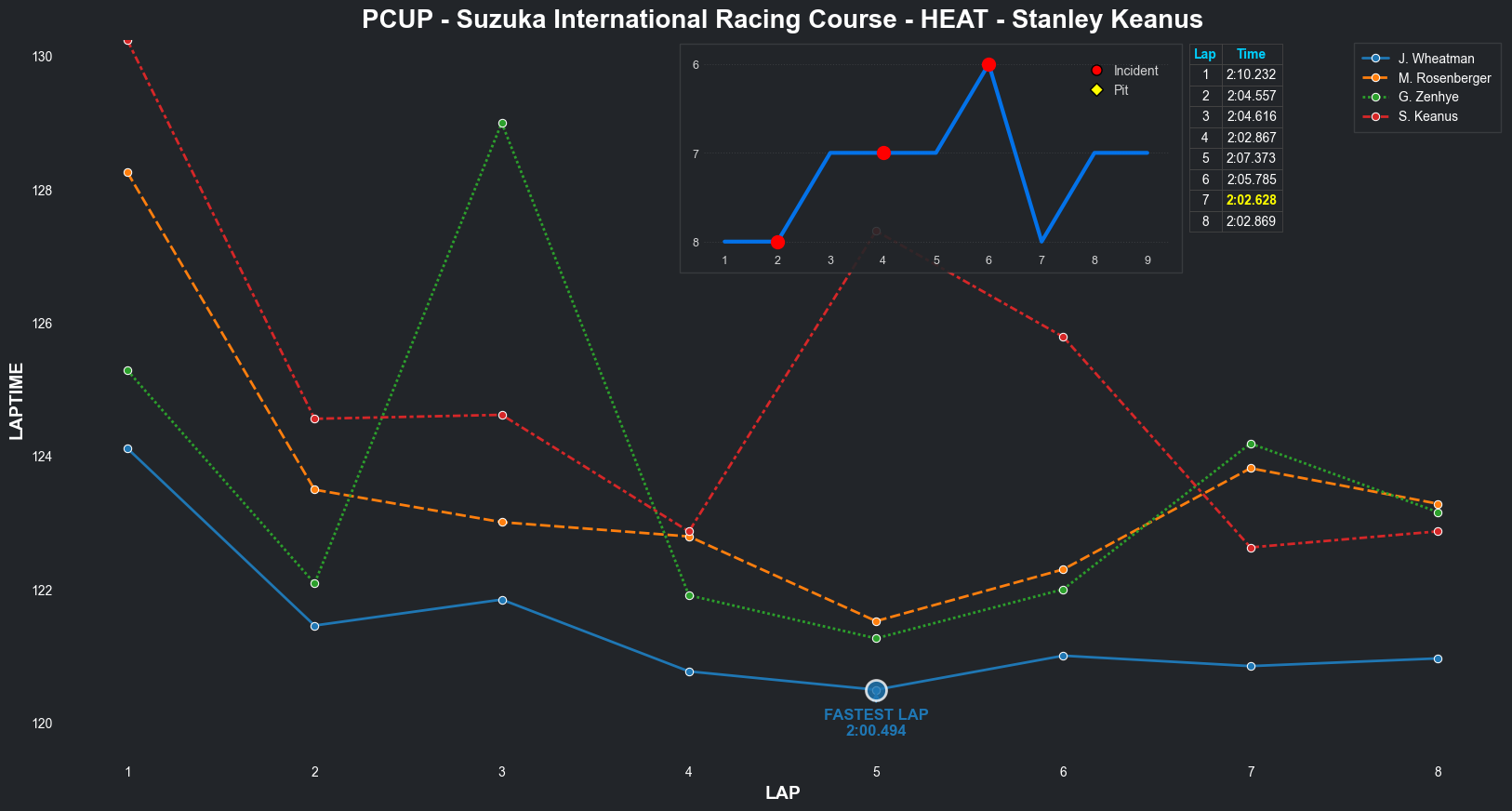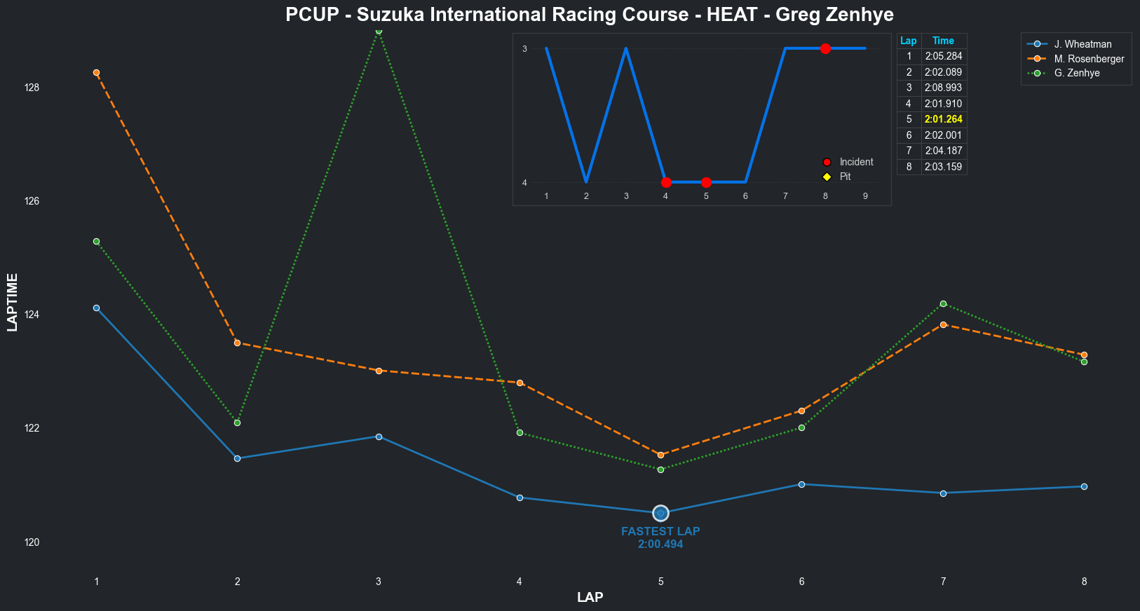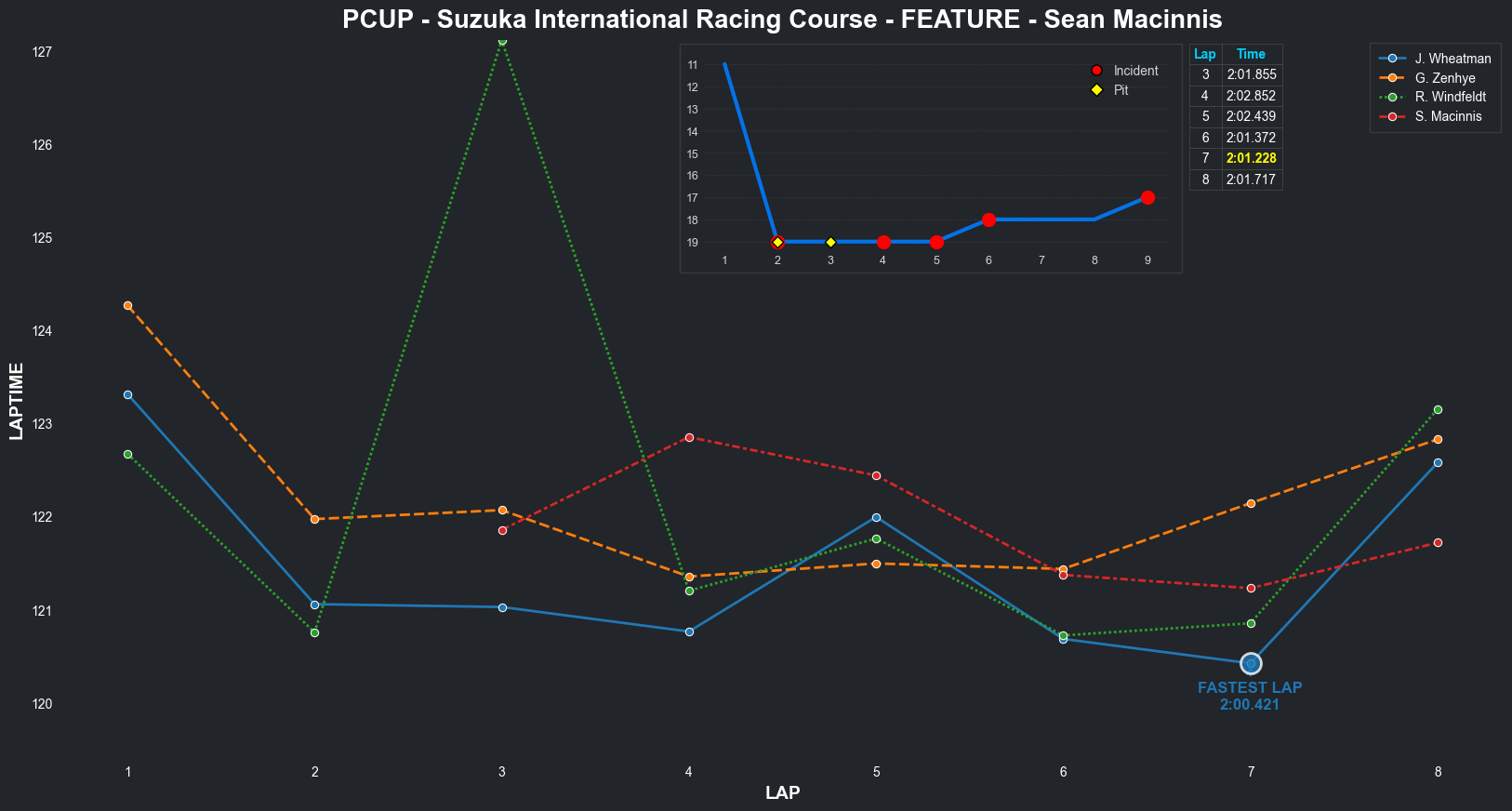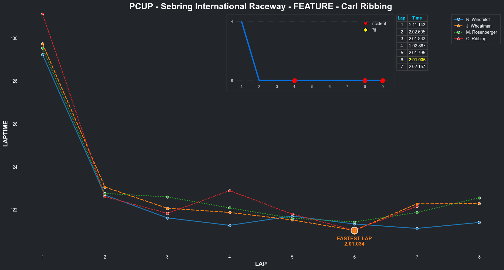 | Jordan Wheatman | 1 | 5 | 2:03.3144 | 2:01.0569 | 2:01.0261 | 2:00.7627 | 2:01.9933 | 2:00.6829 | 2:00.4210 | 2:02.5775 | 0 | 8 |