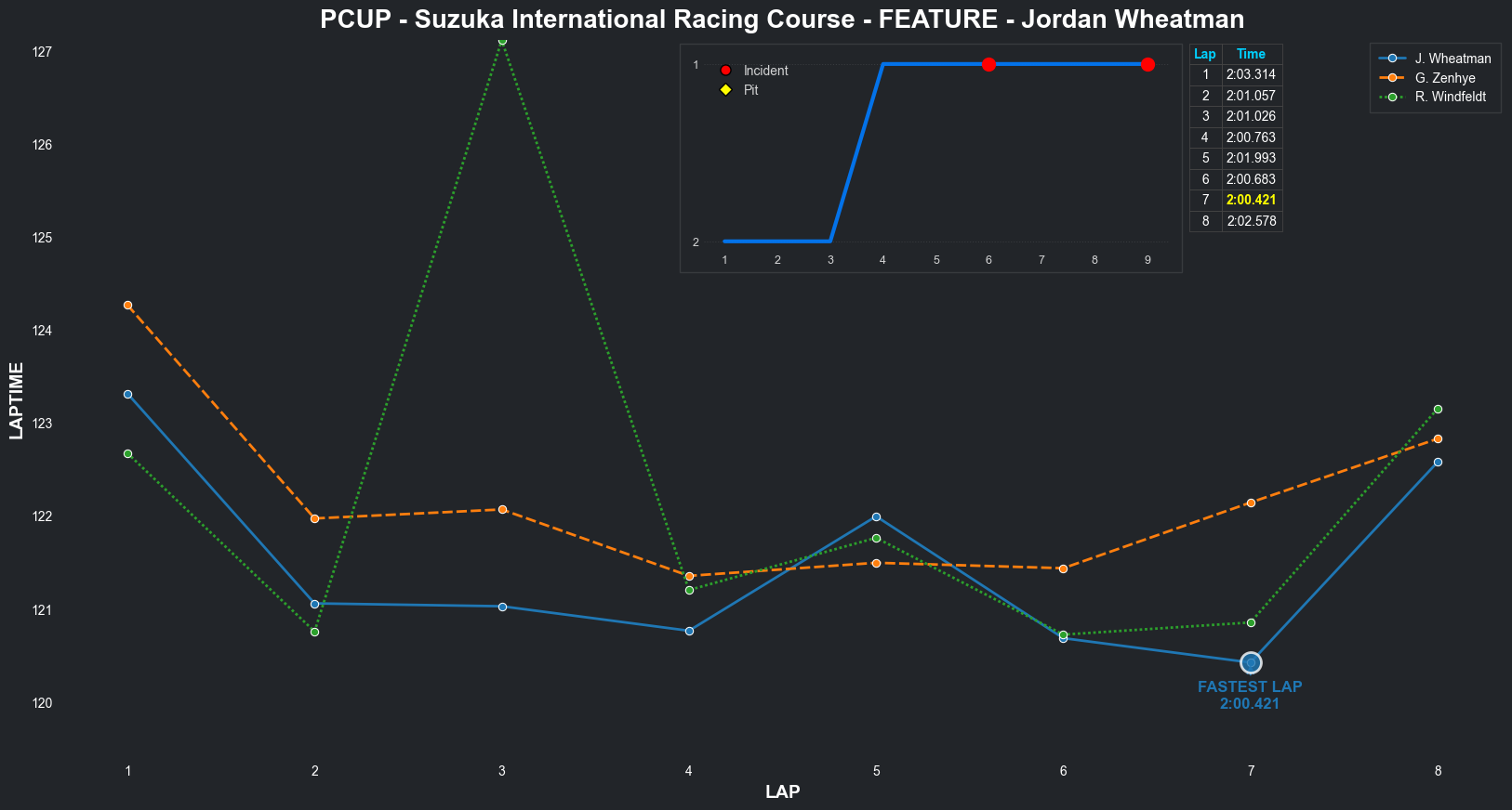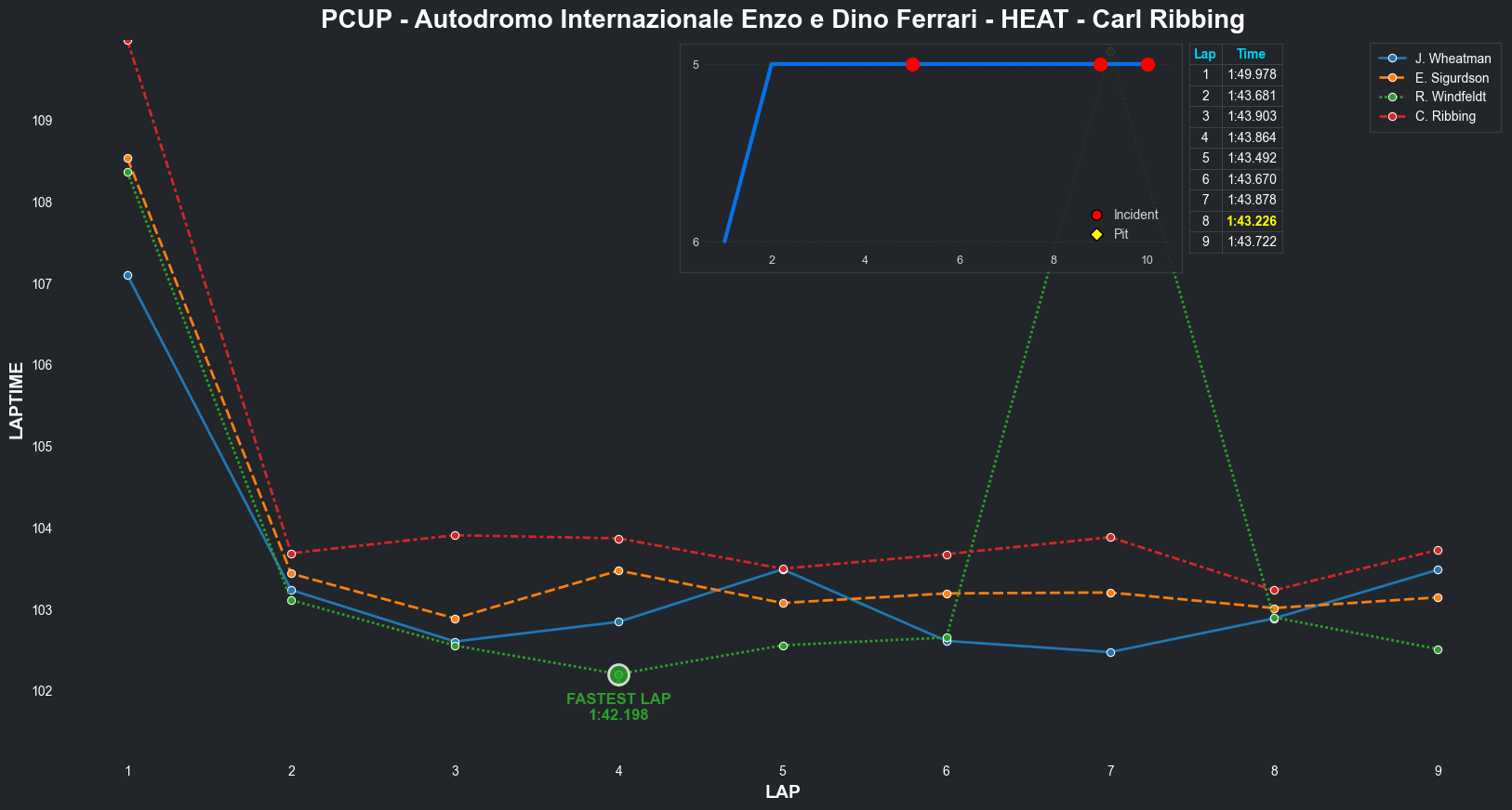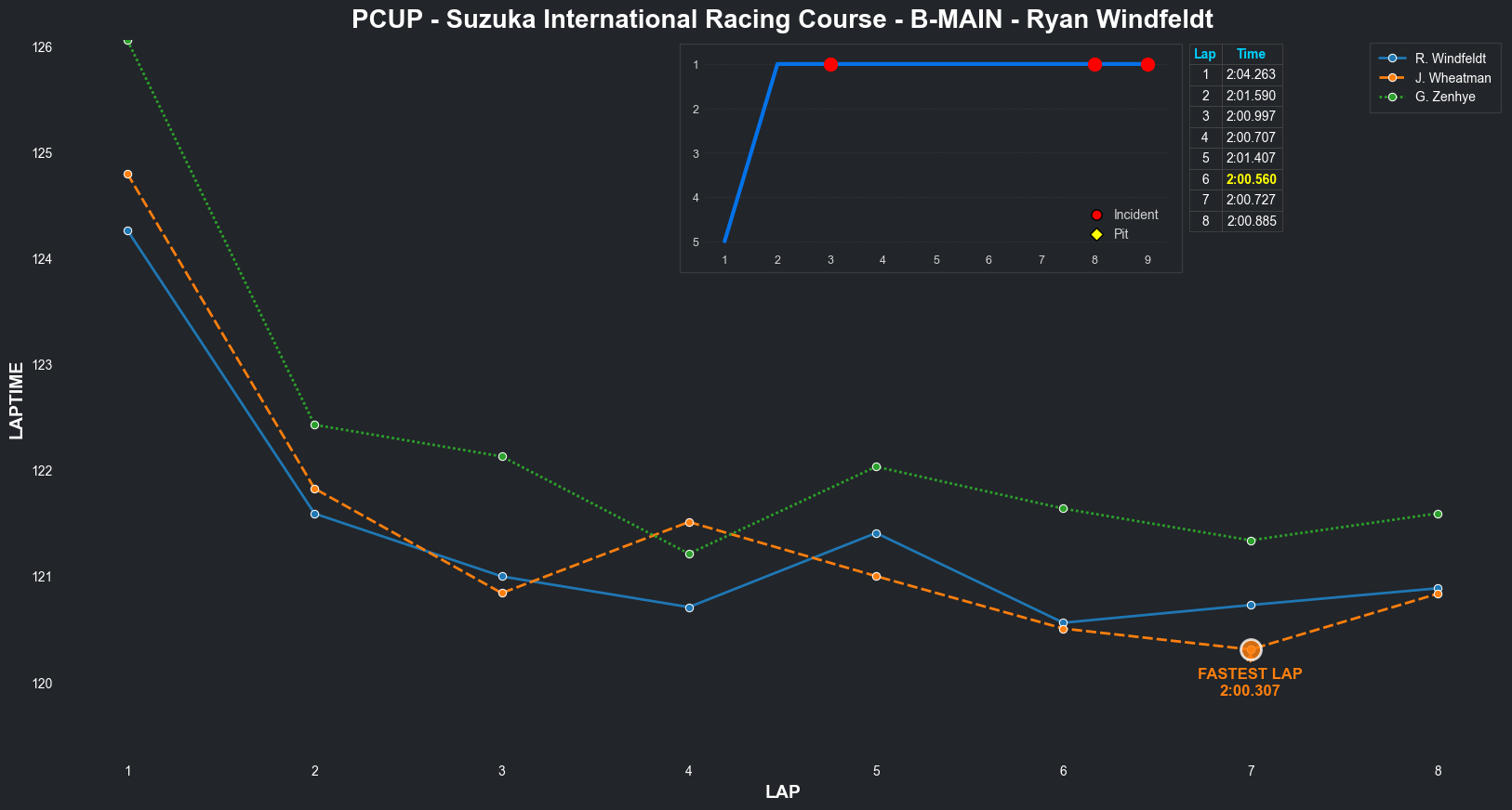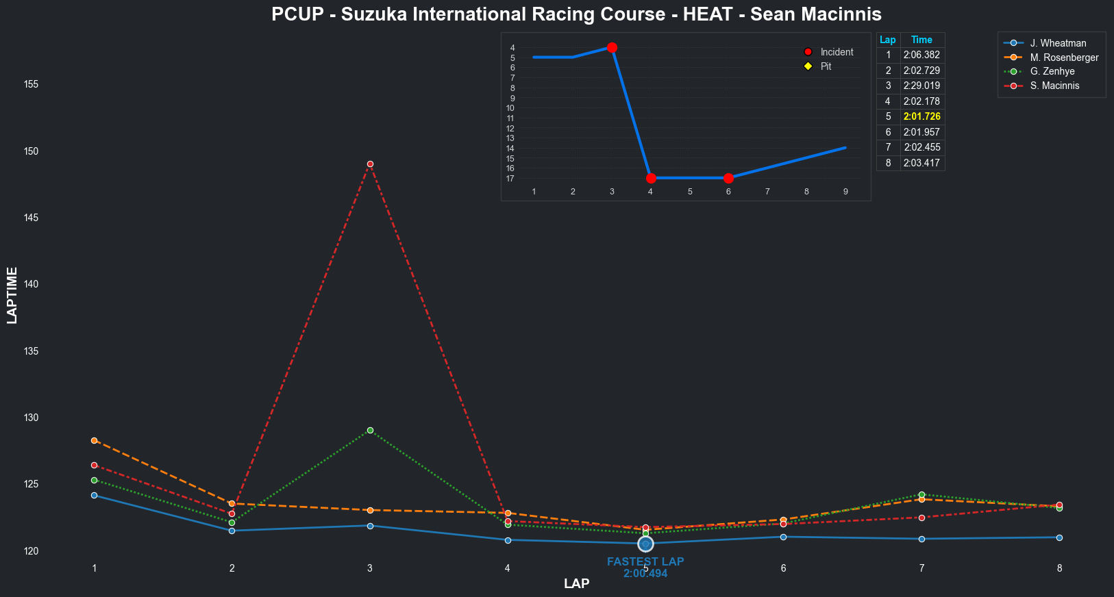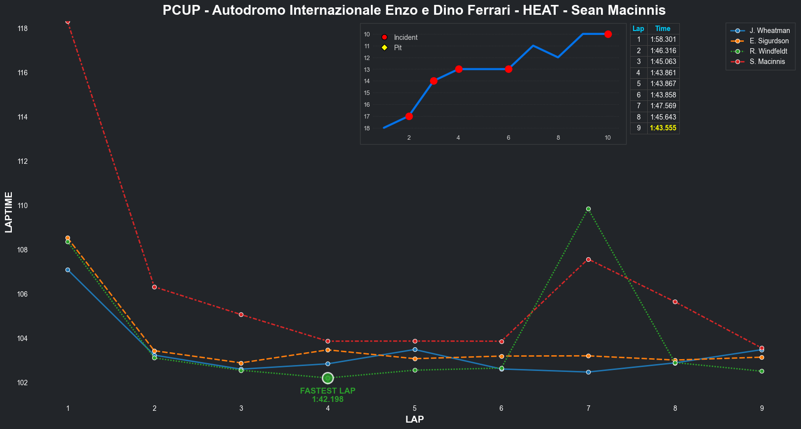 | Jordan Wheatman | 1 | 5 | 2:03.3144 | 2:01.0569 | 2:01.0261 | 2:00.7627 | 2:01.9933 | 2:00.6829 | 2:00.4210 | 2:02.5775 | 0 | 8 |