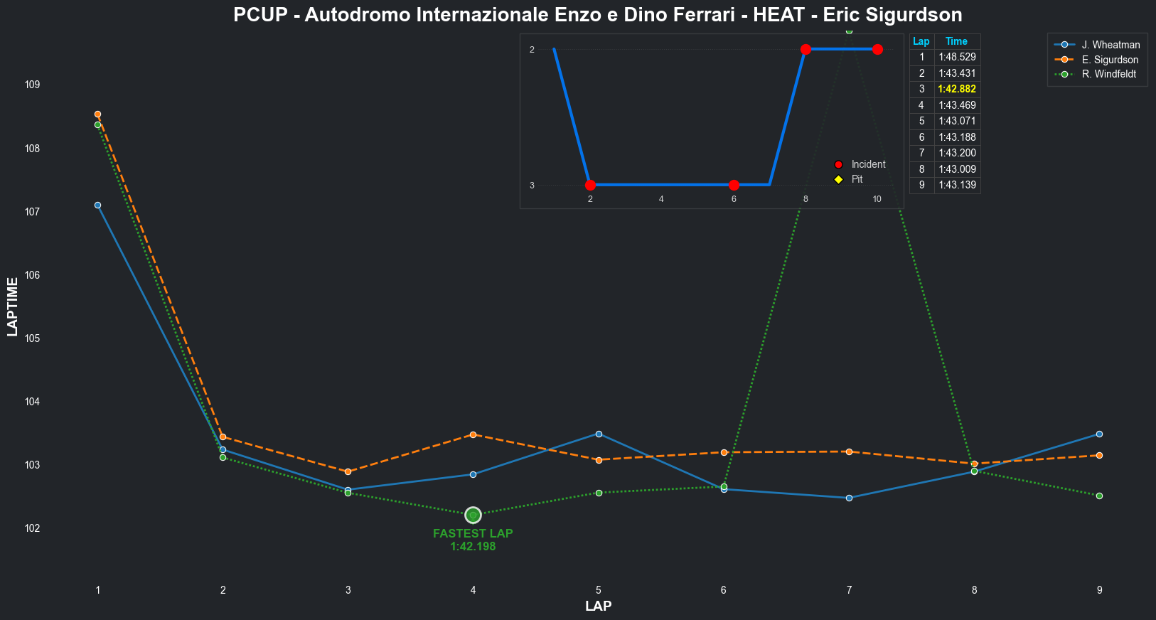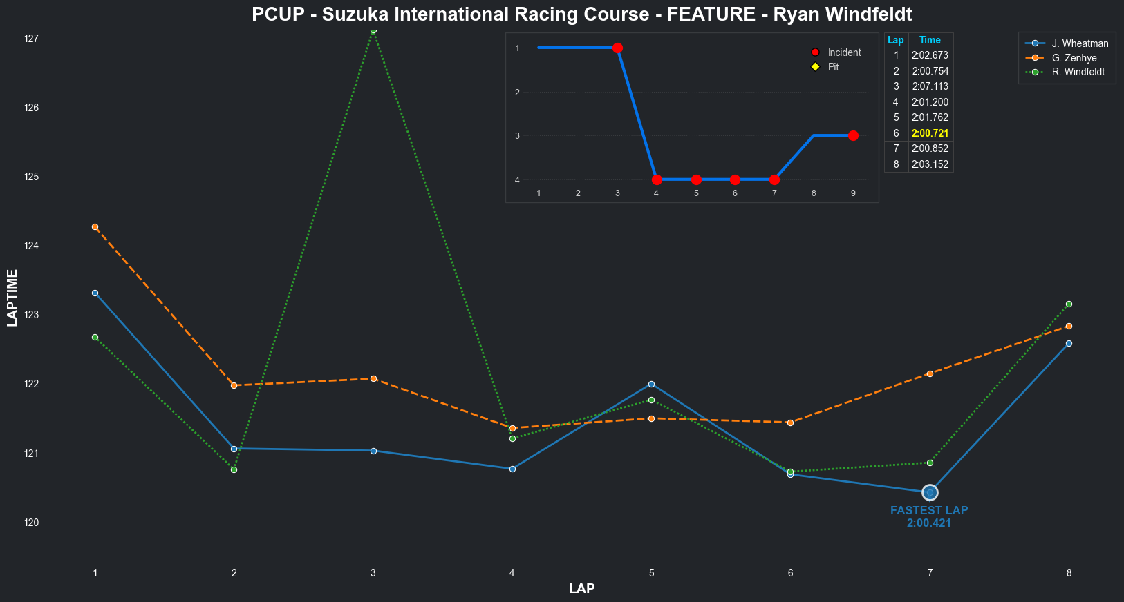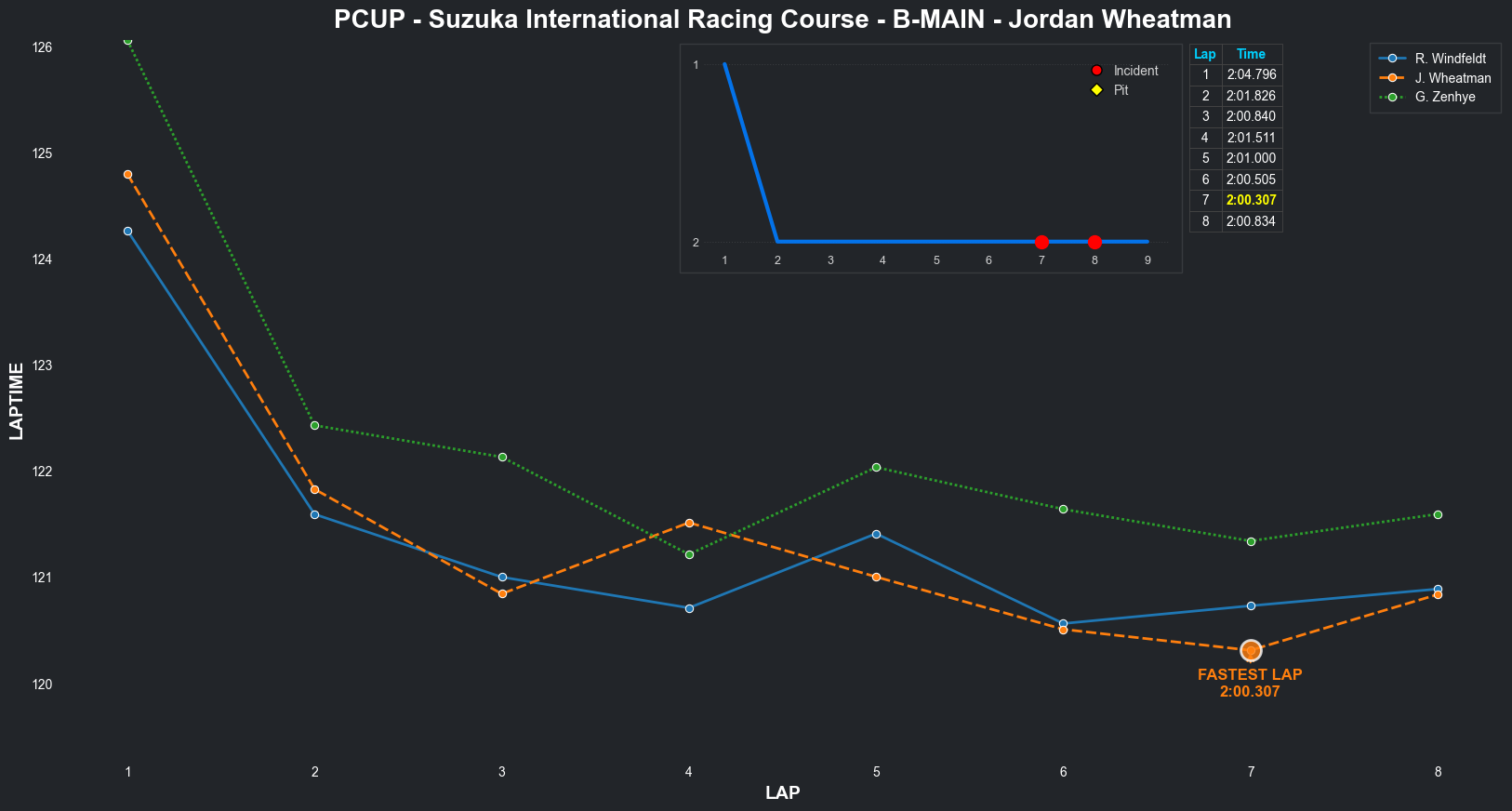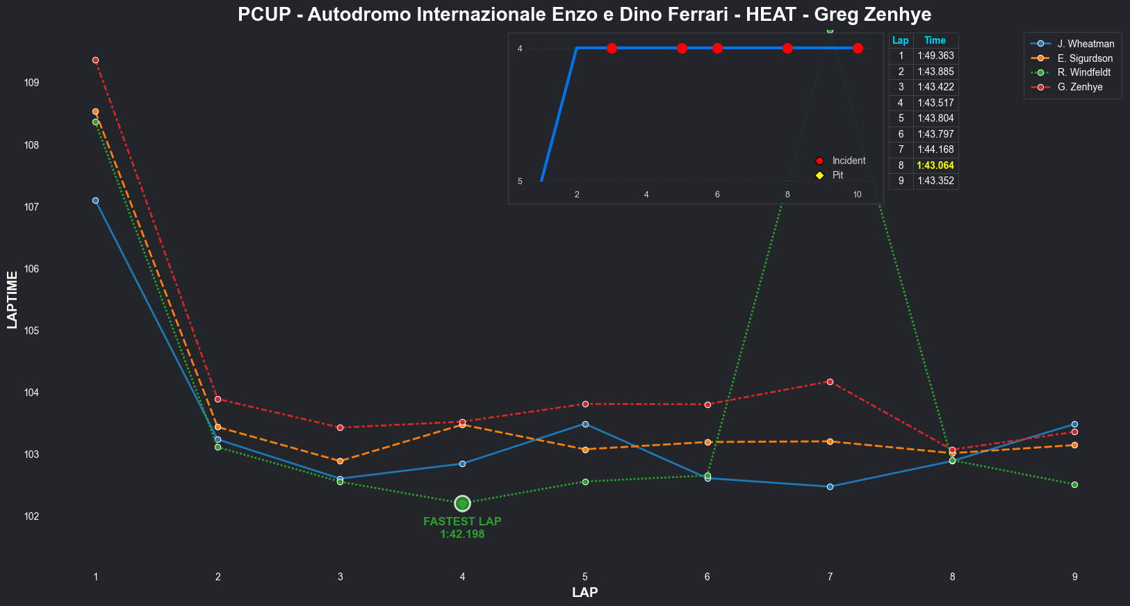 | Jordan Wheatman | 1 | 5 | 2:03.3144 | 2:01.0569 | 2:01.0261 | 2:00.7627 | 2:01.9933 | 2:00.6829 | 2:00.4210 | 2:02.5775 | 0 | 8 |