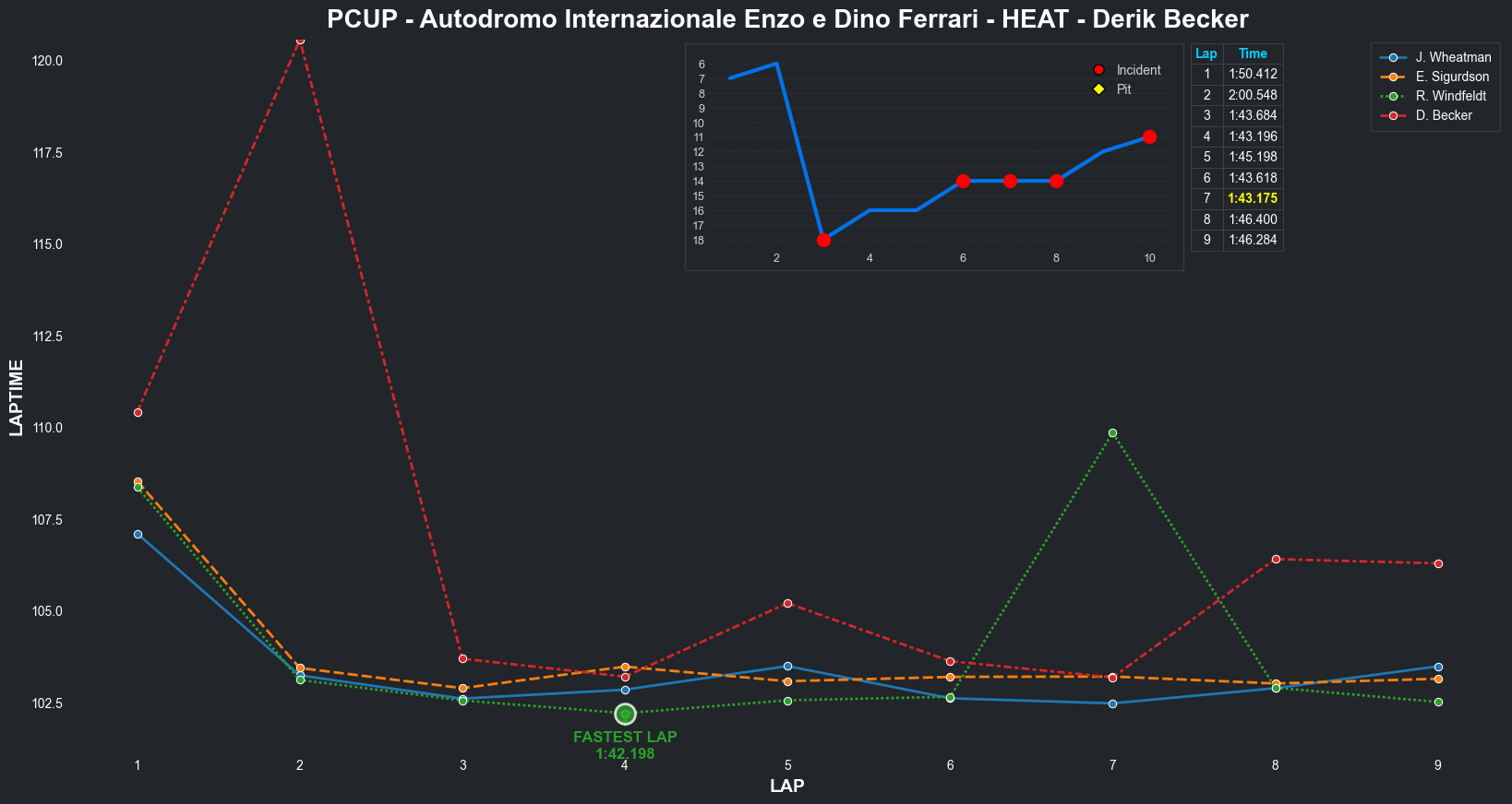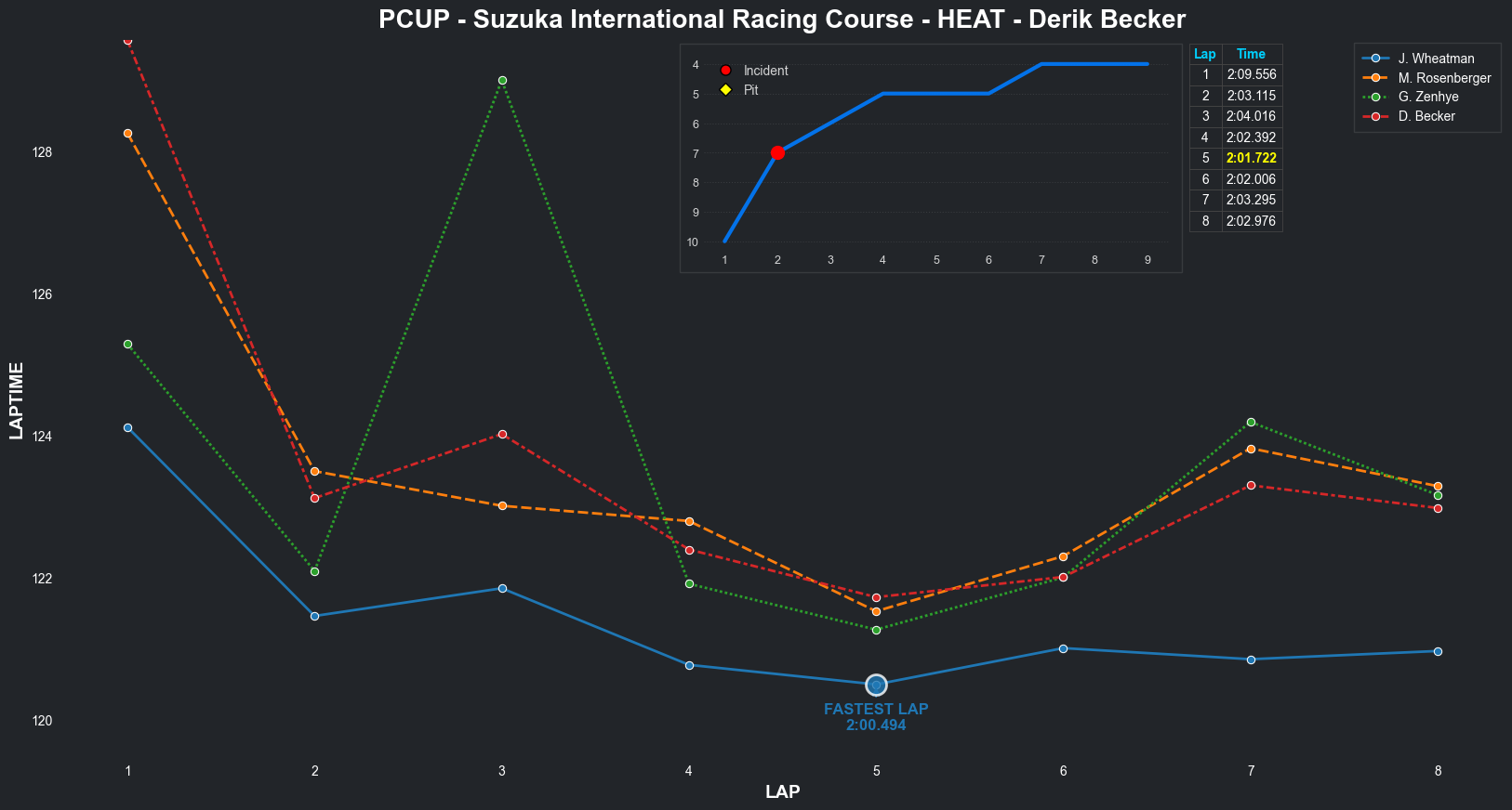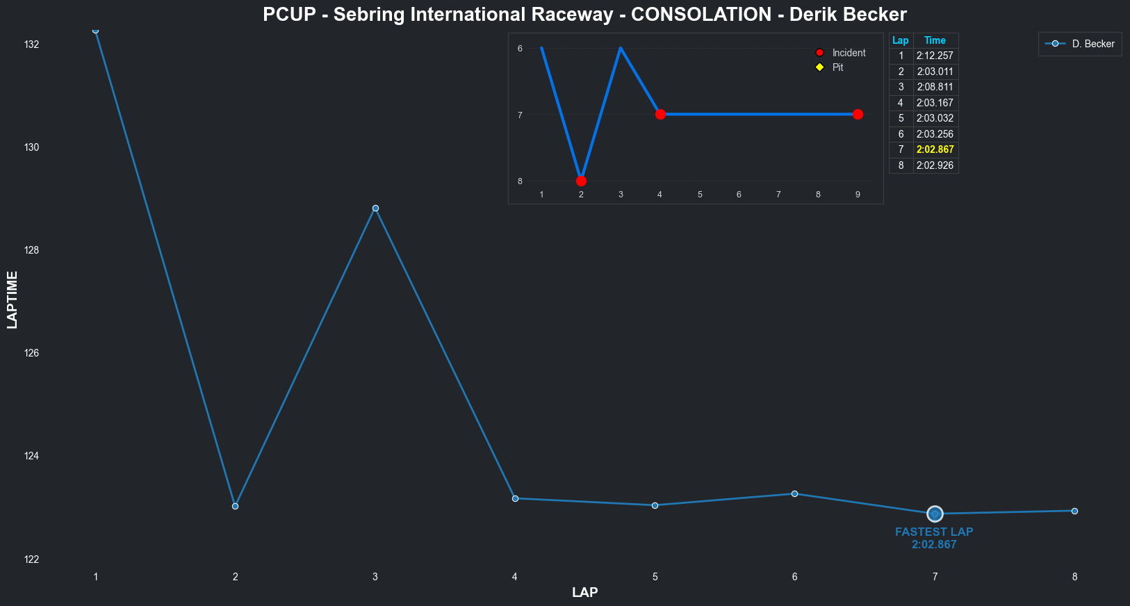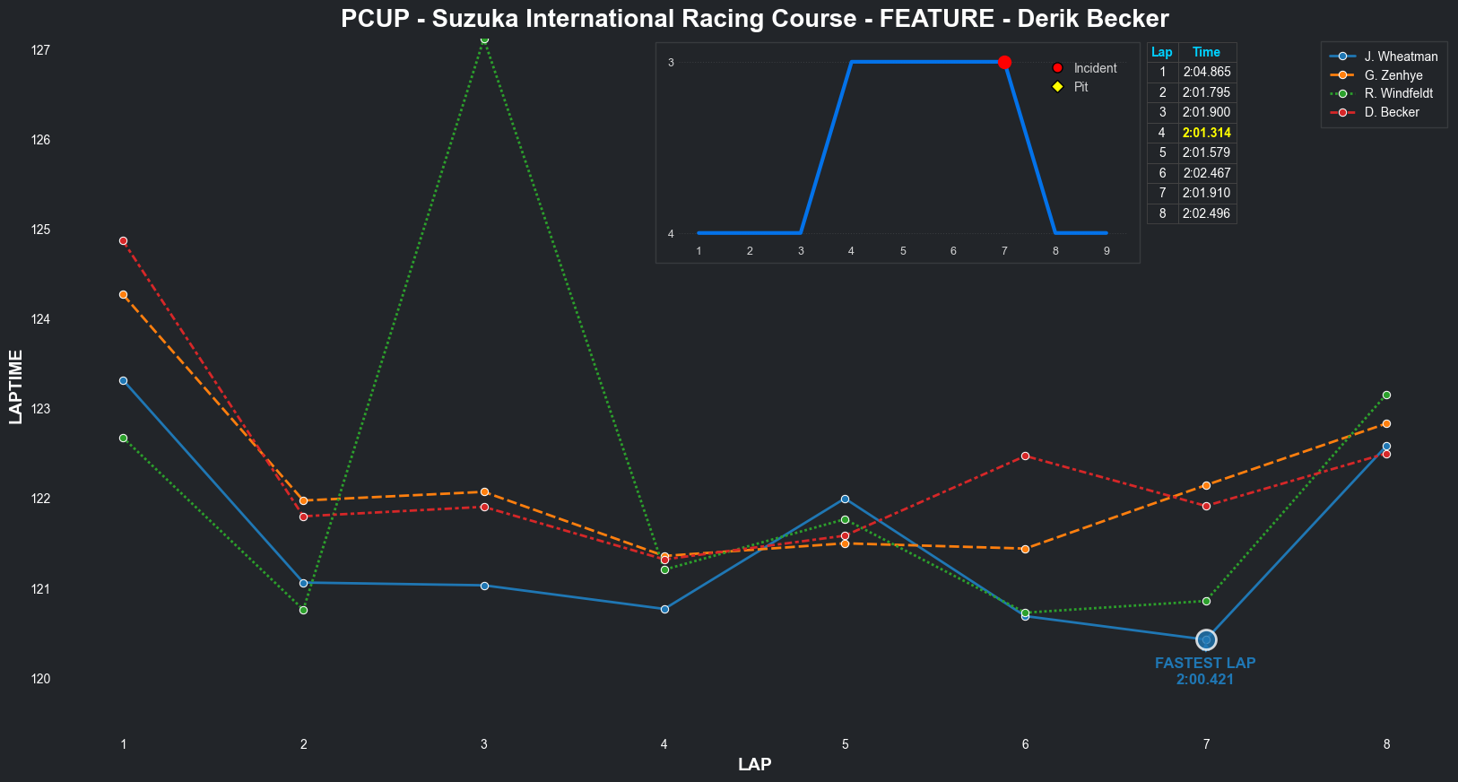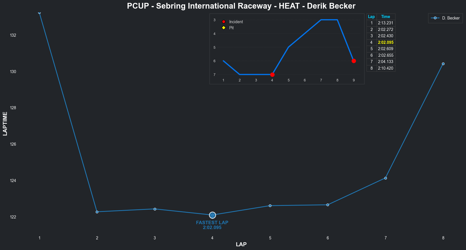 | Derik Becker | 4 | 7 | 2:04.8650 | 2:01.7947 | 2:01.9003 | 2:01.3144 | 2:01.5788 | 2:02.4672 | 2:01.9101 | 2:02.4955 | 0 | 8 |