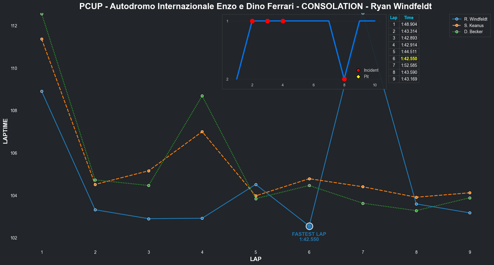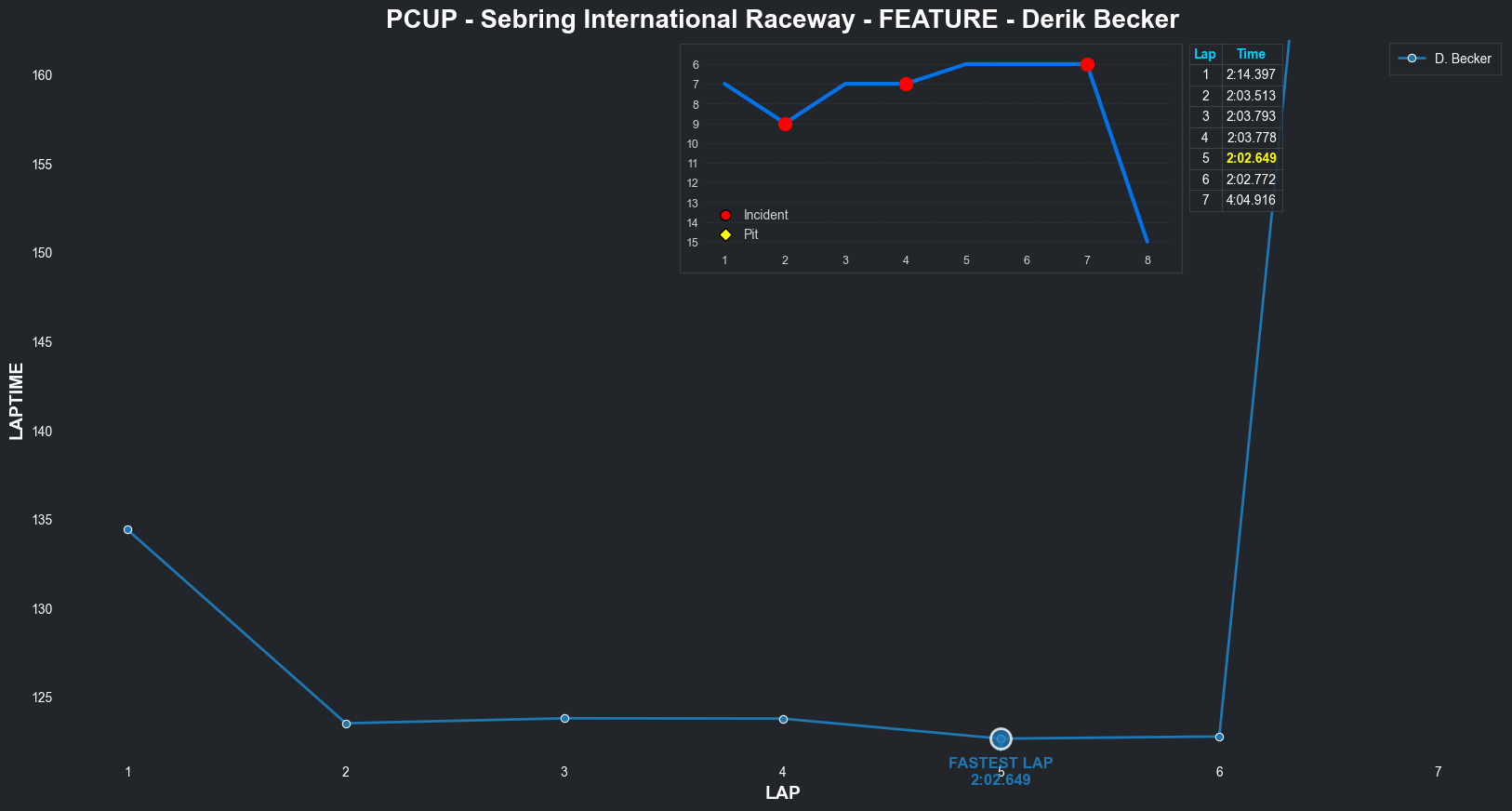 | Derik Becker | 6 | 5 | 2:13.2305 | 2:02.2720 | 2:02.4299 | 2:02.0946 | 2:02.6088 | 2:02.6554 | 2:04.1326 | 2:10.4203 | 0 | None | 8 |