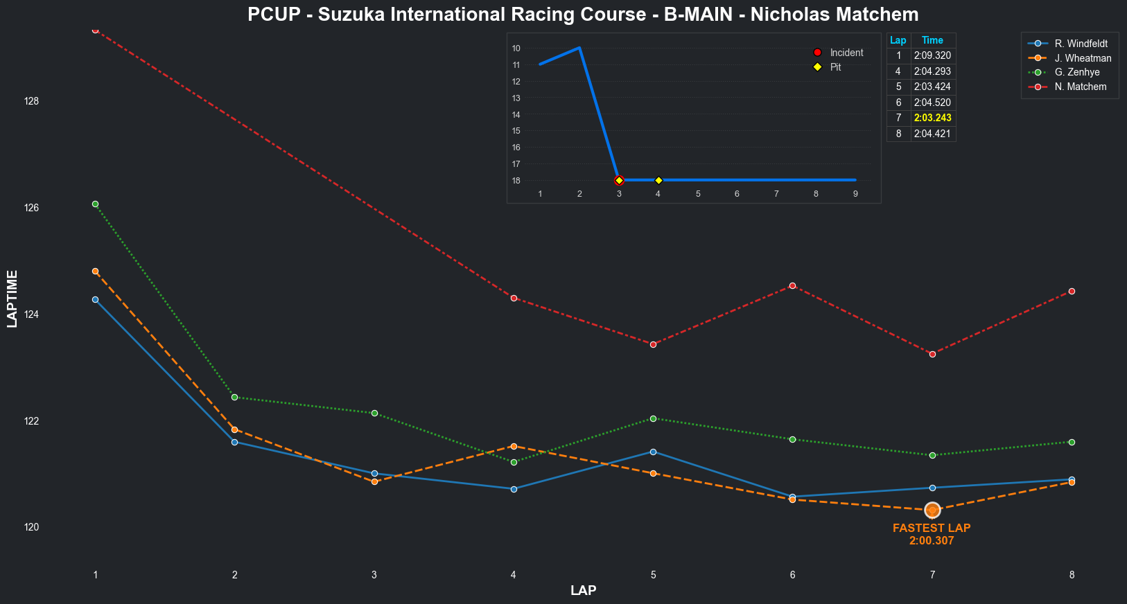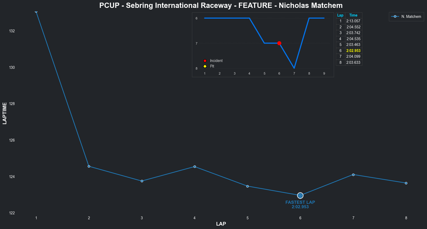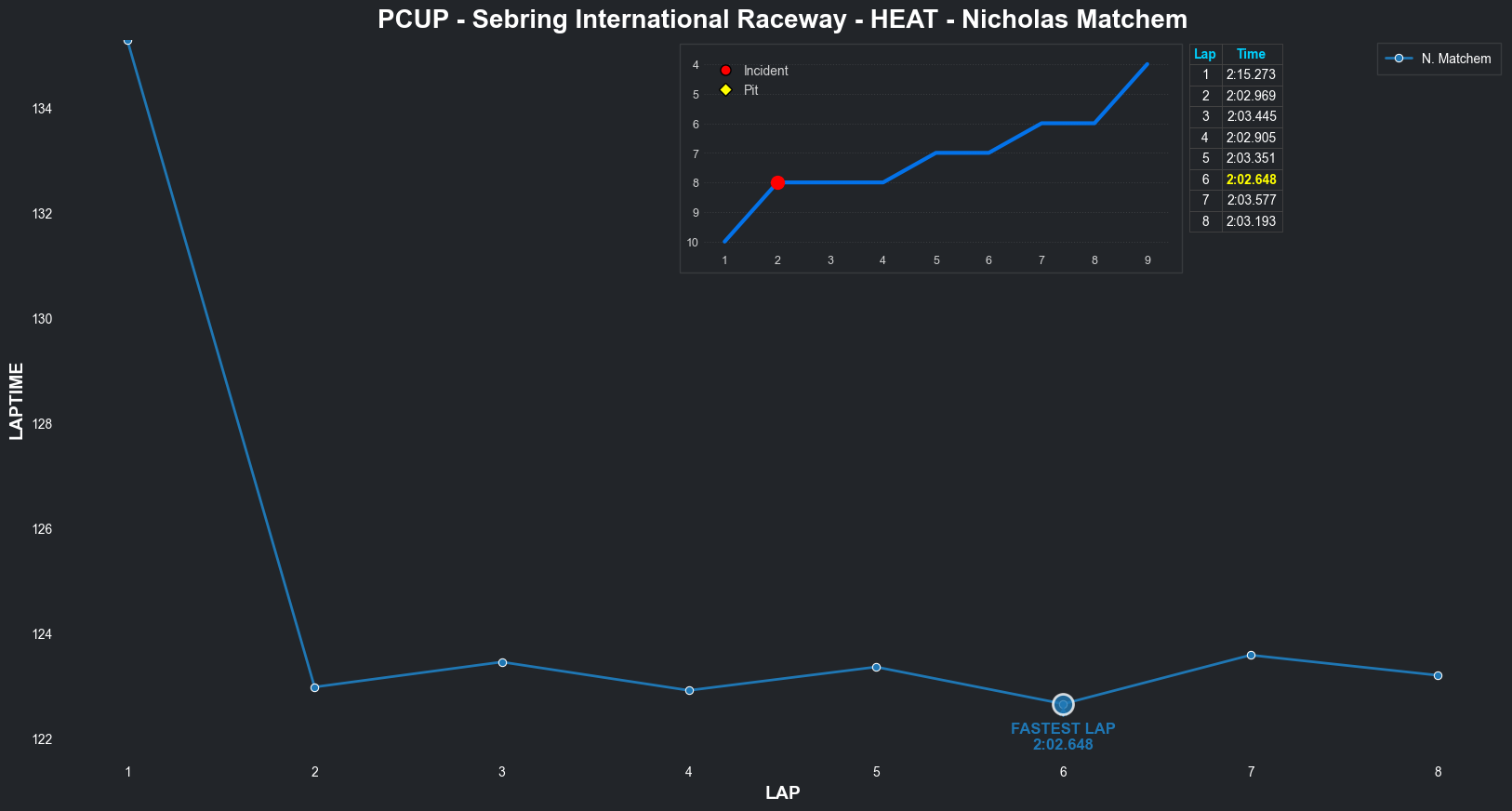 | Nicholas Matchem | 4 | 7 | 2:15.2729 | 2:02.9689 | 2:03.4455 | 2:02.9052 | 2:03.3509 | 2:02.6483 | 2:03.5767 | 2:03.1926 | 0 | None | 8 |
