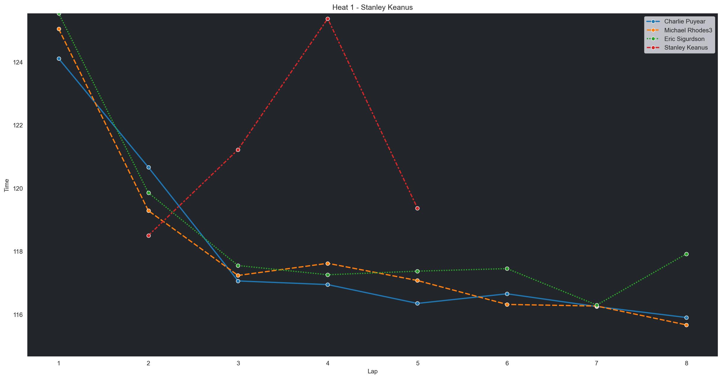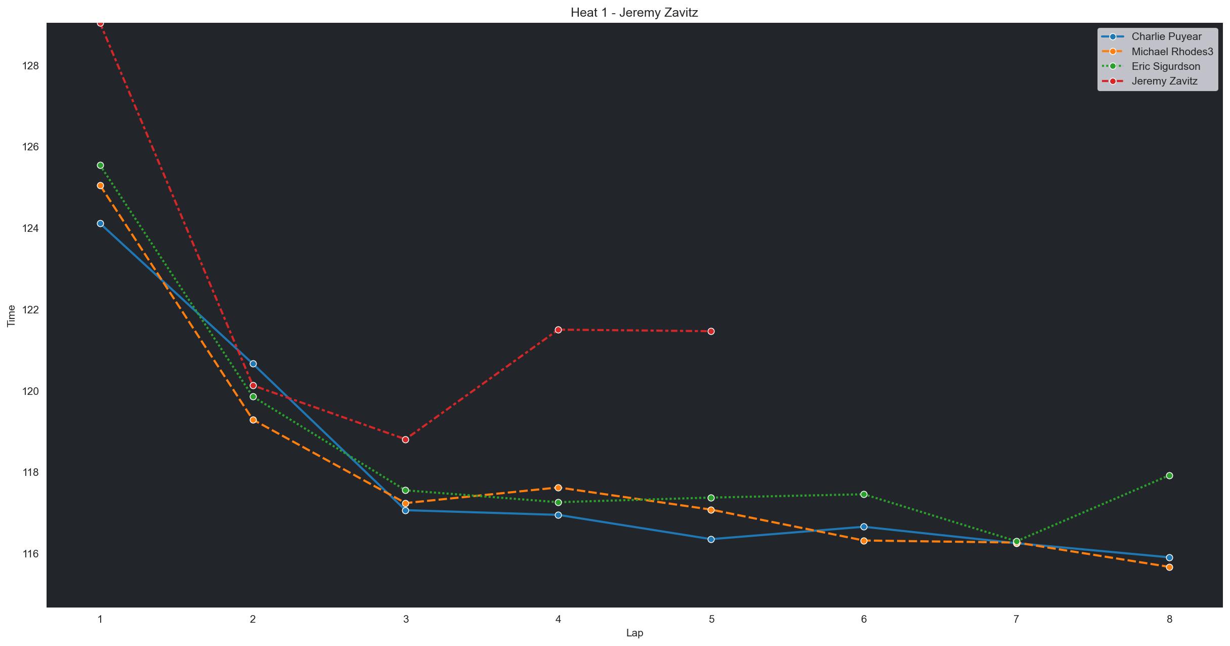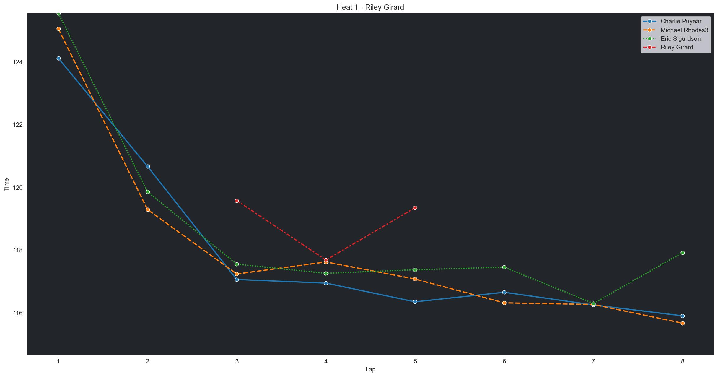 | Charlie Puyear | 1 | 6 | 2:04.1128 | 2:00.6658 | 1:57.0632 | 1:56.9480 | 1:56.3516 | 1:56.6561 | 1:56.2516 | 1:55.9048 | 0 |