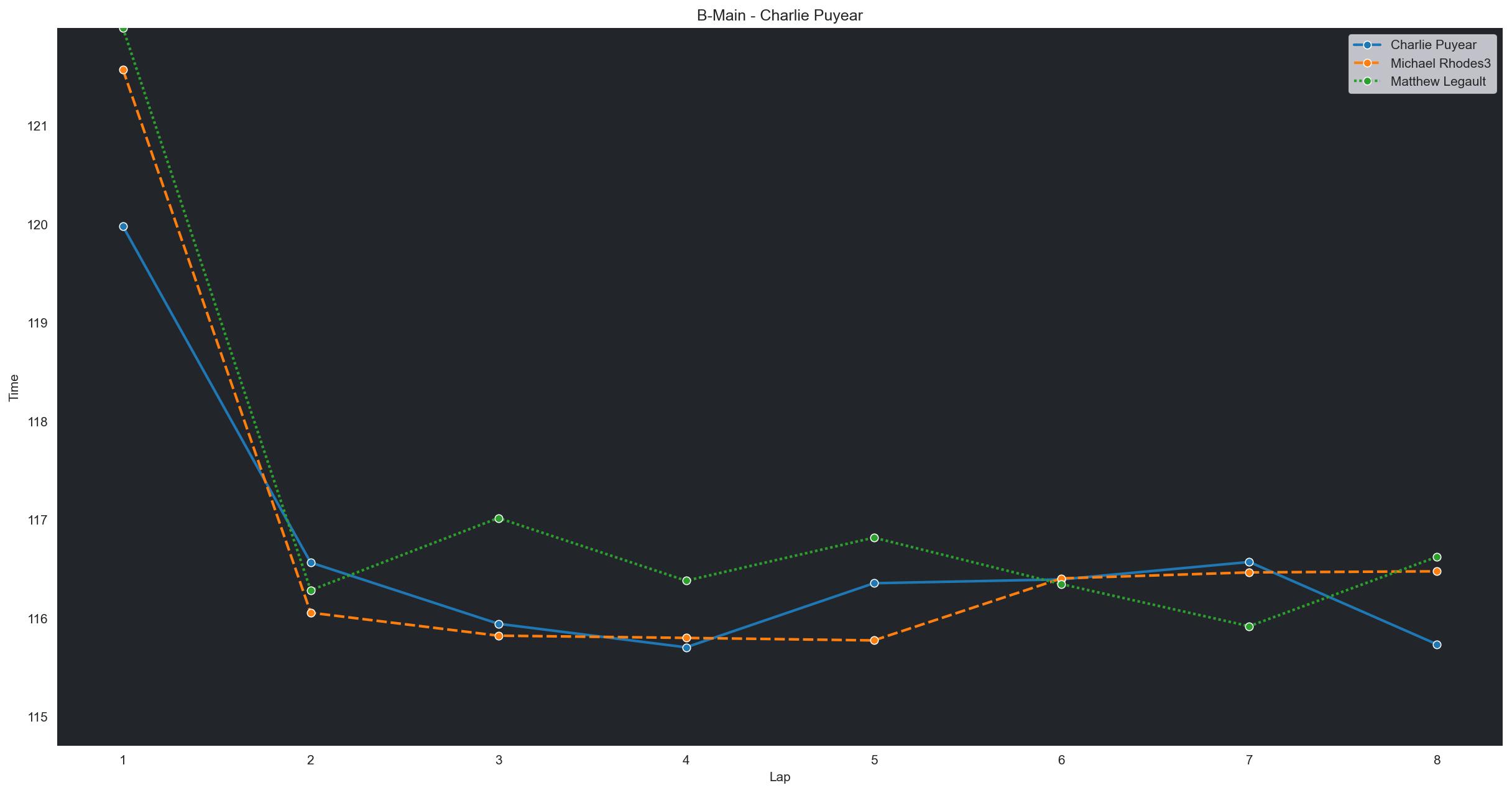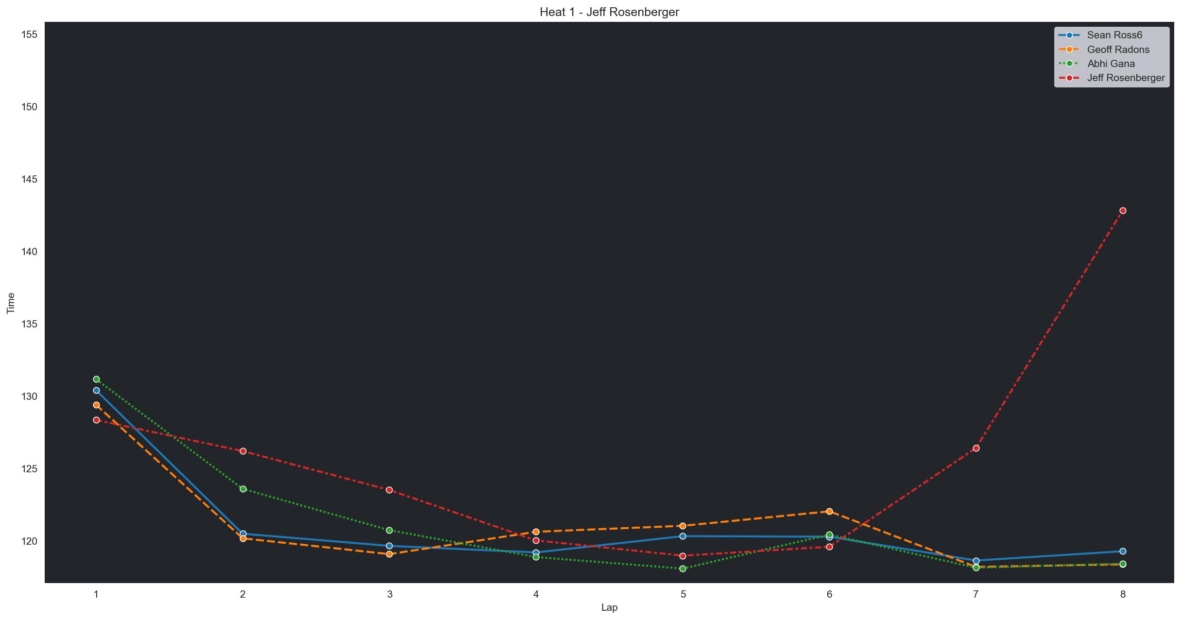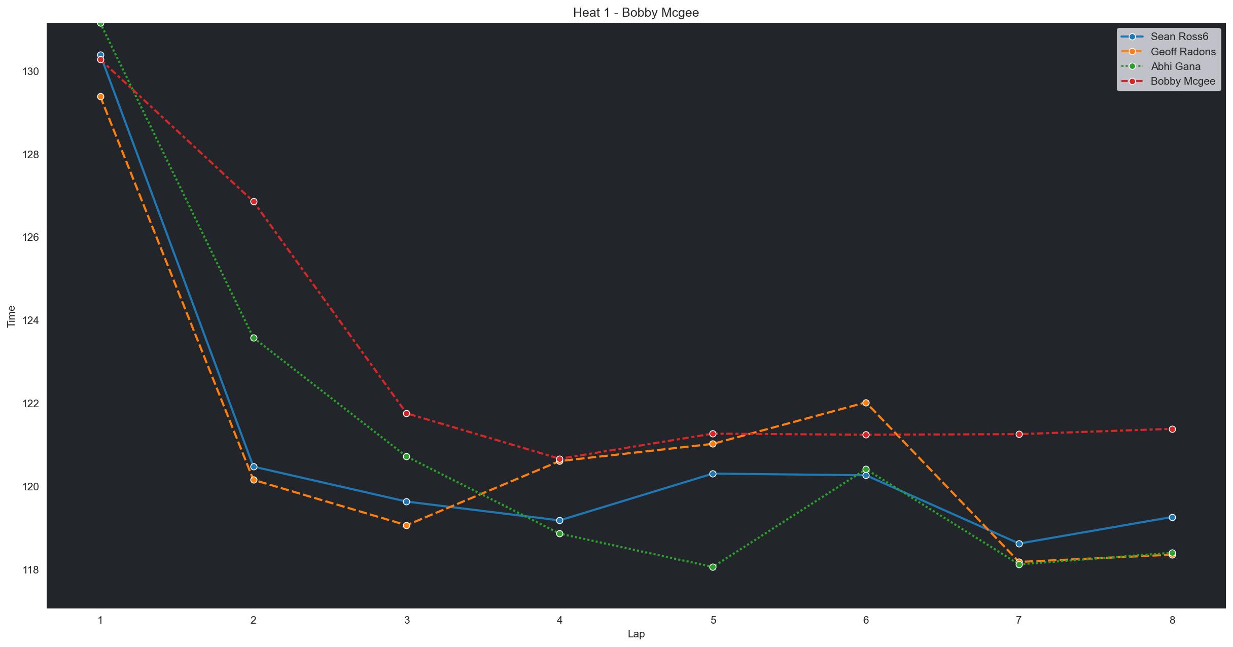 | Charlie Puyear | 1 | 6 | 2:04.1128 | 2:00.6658 | 1:57.0632 | 1:56.9480 | 1:56.3516 | 1:56.6561 | 1:56.2516 | 1:55.9048 | 0 |