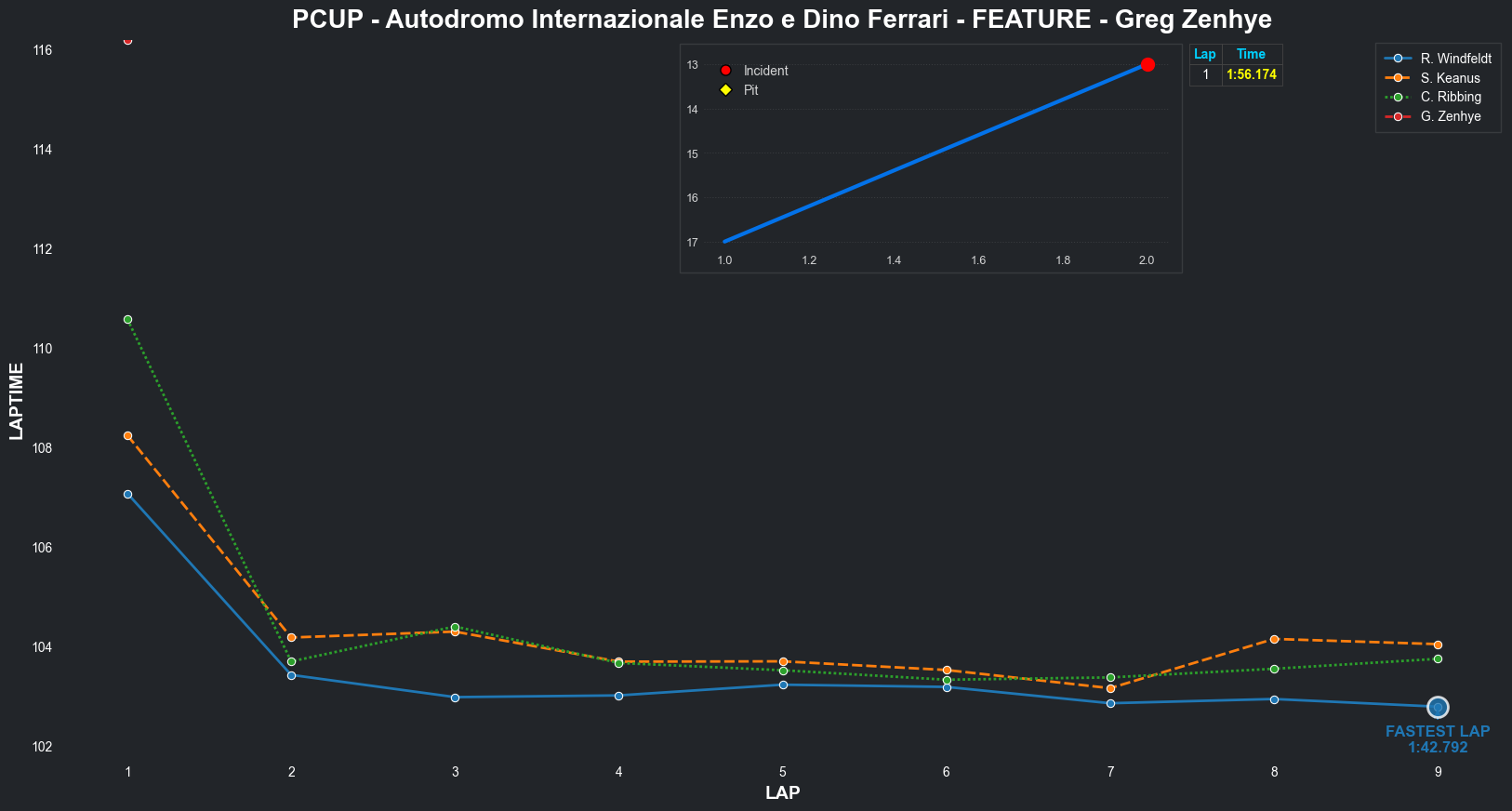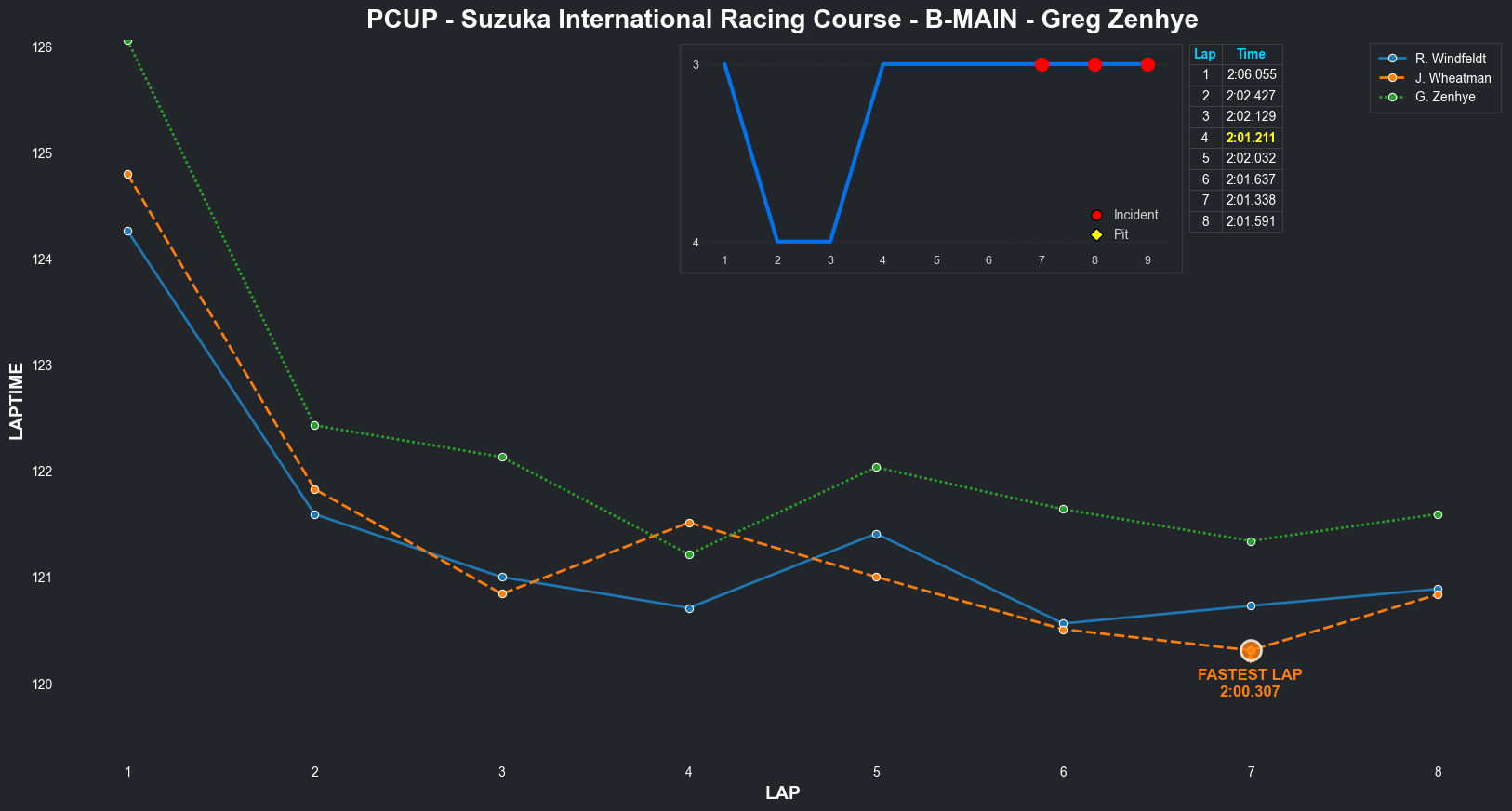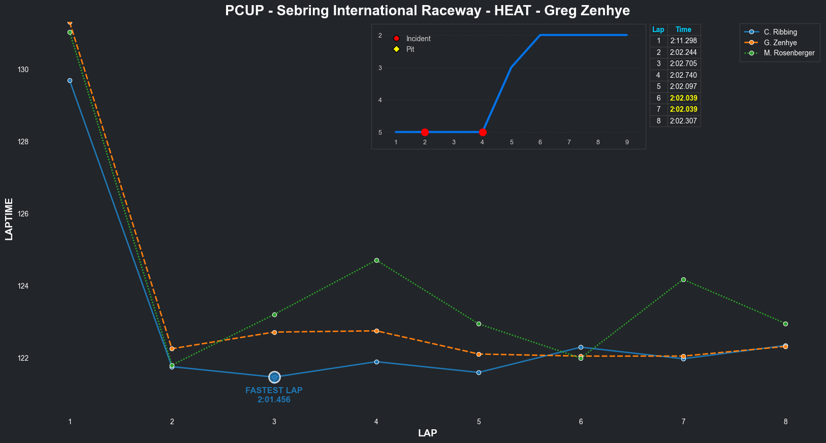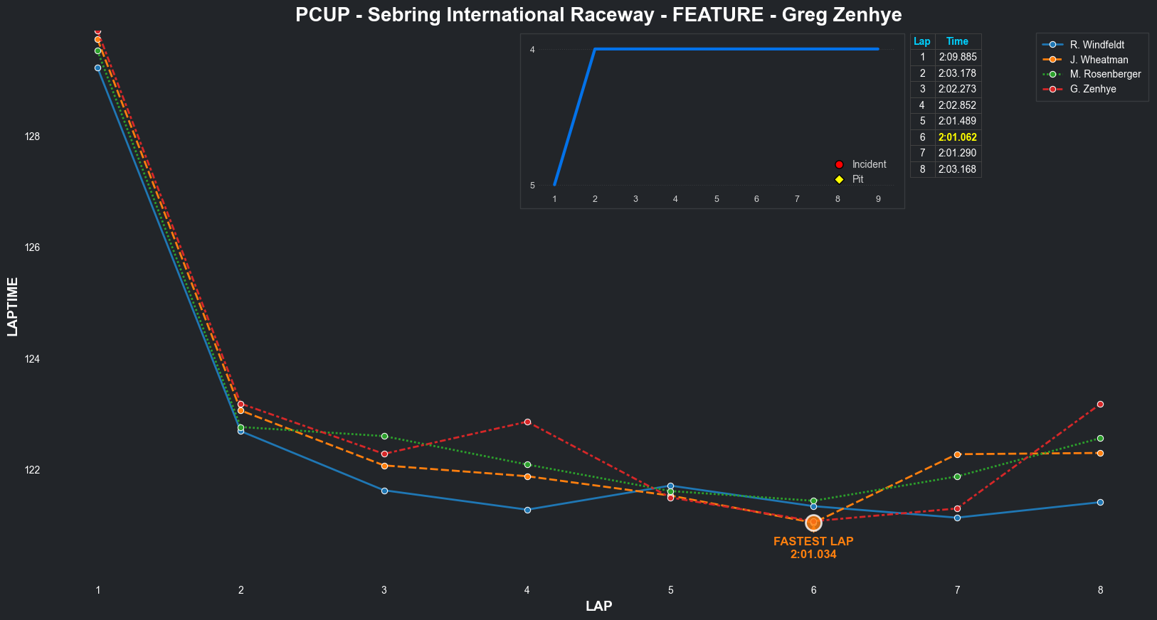| Greg Zenhye | 2 | 7 | 2:11.2977 | 2:02.2437 | 2:02.7049 | 2:02.7395 | 2:02.0966 | 2:02.0387 | 2:02.0393 | 2:02.3071 | 0 | 8 | |