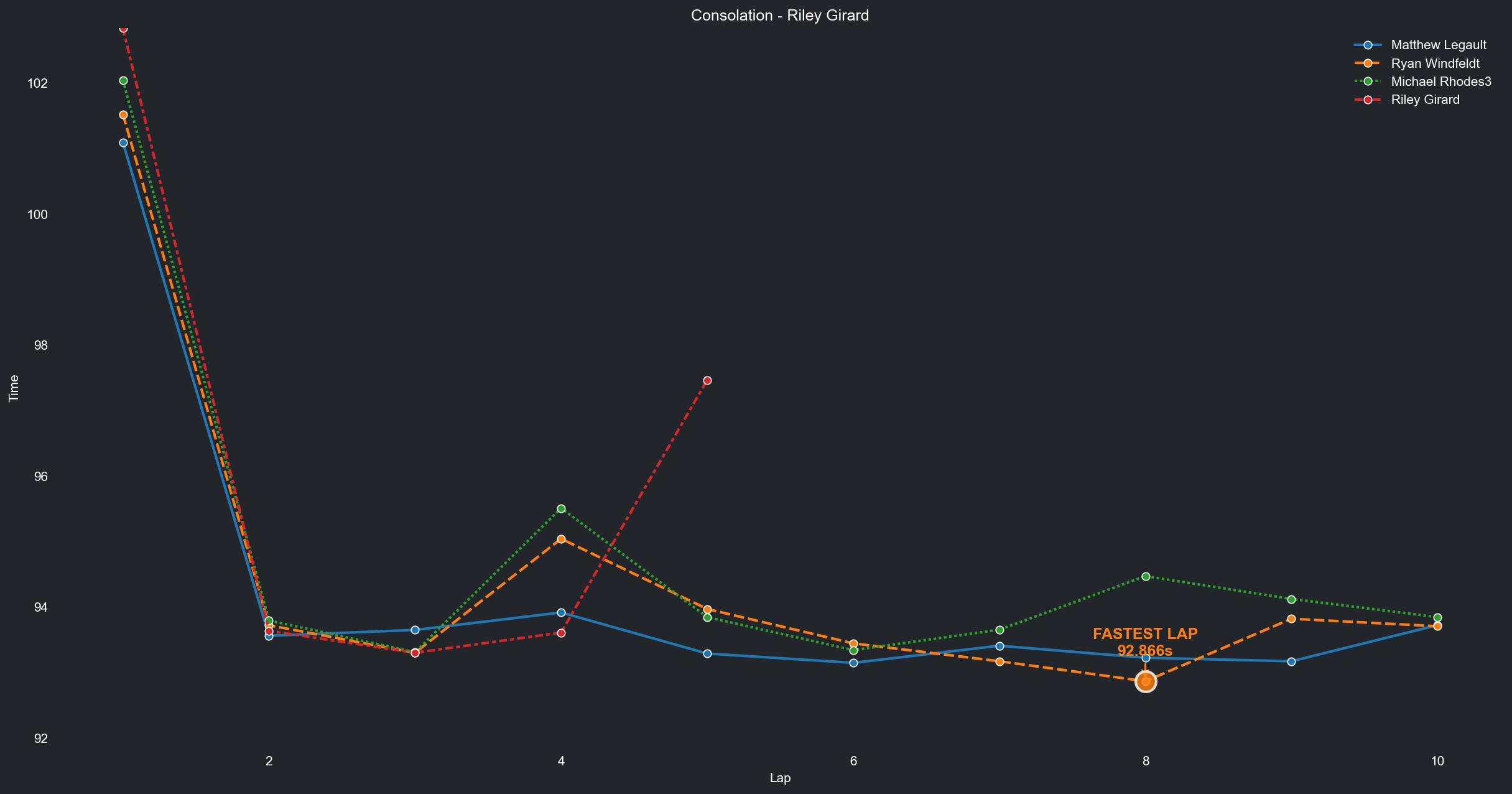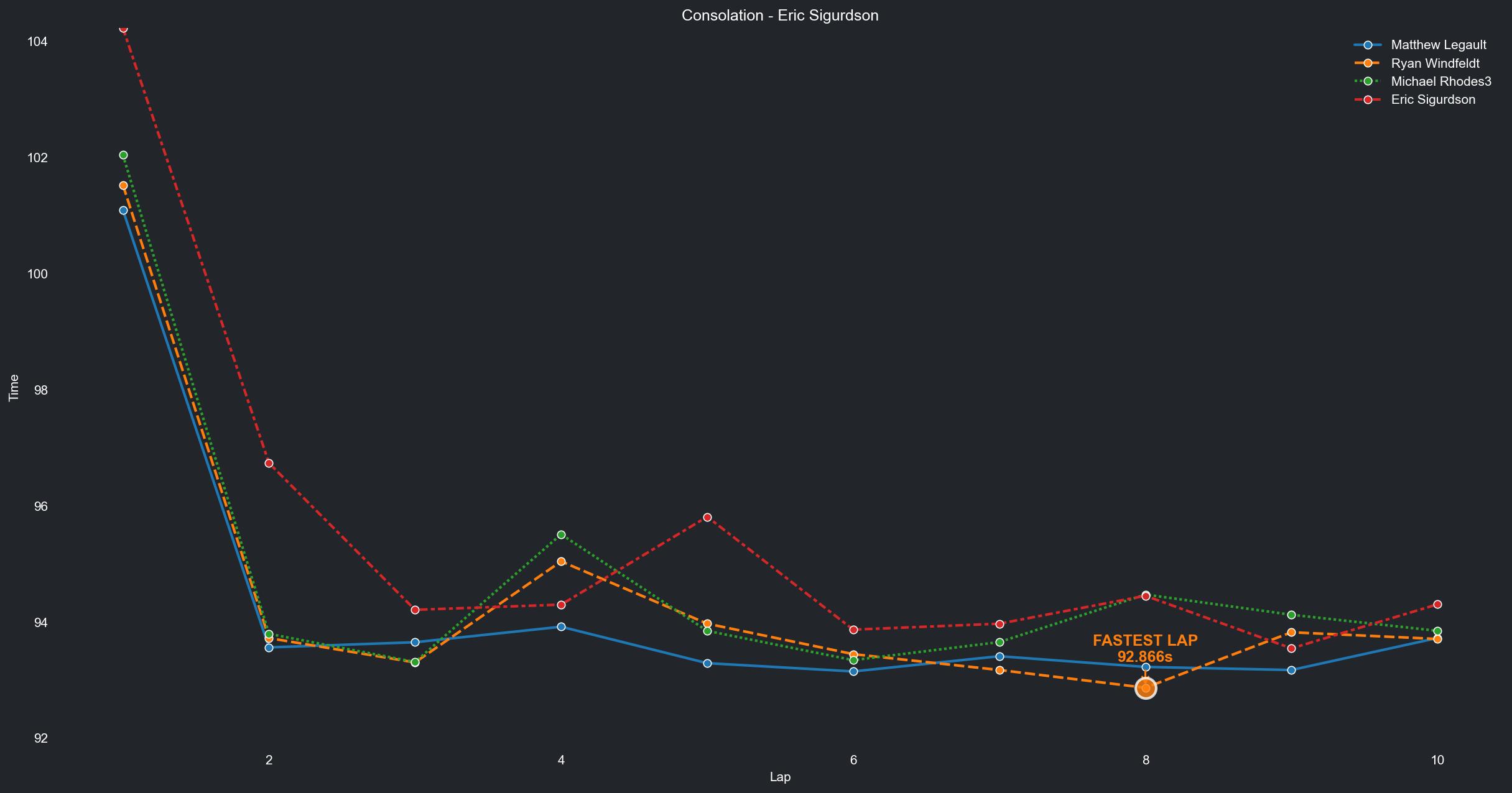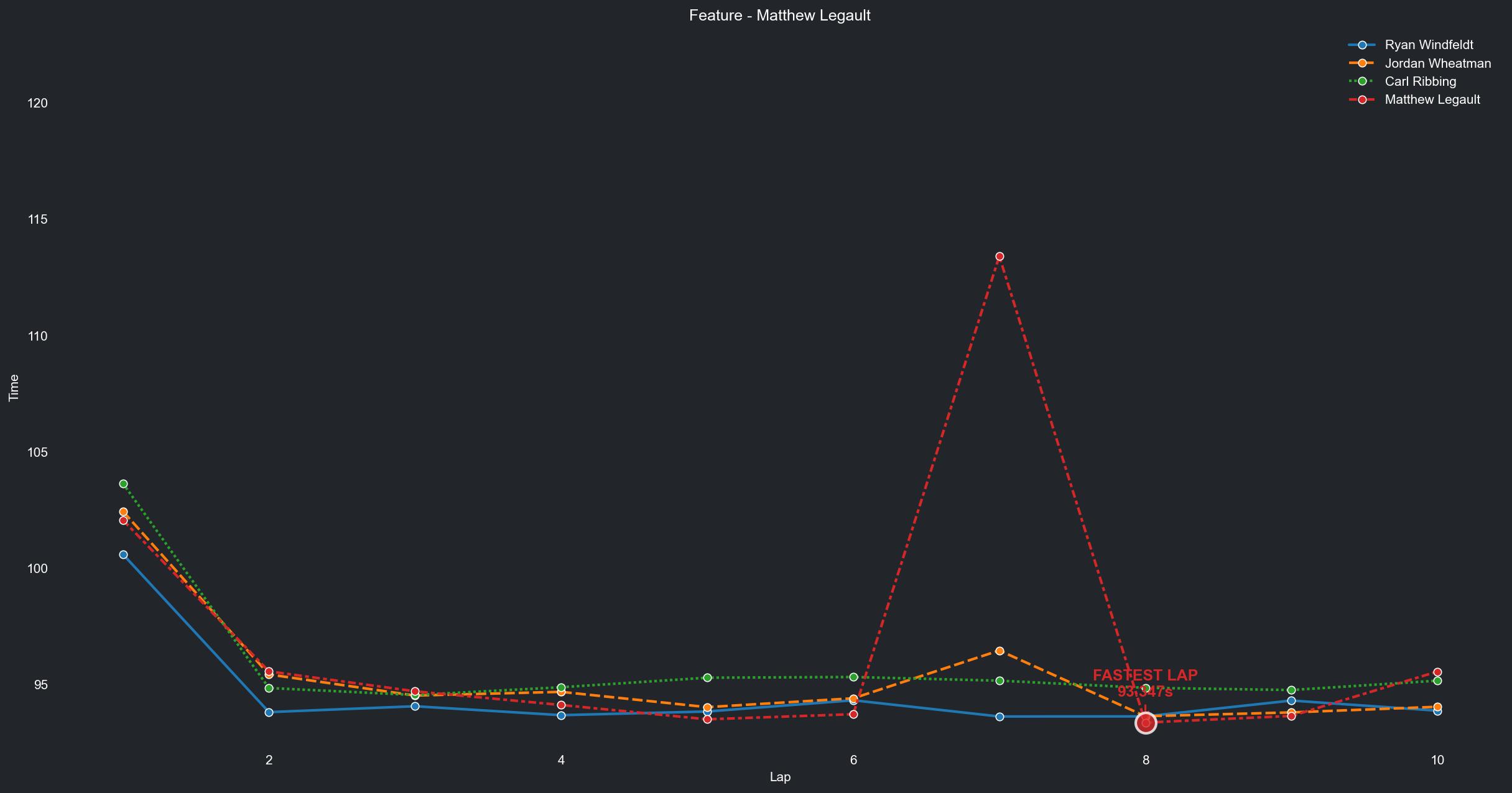 | Matthew Legault | 8 | 5 | 1:42.0580 | 1:35.5484 | 1:34.6908 | 1:34.1036 | 1:33.4879 | 1:33.7070 | 1:53.4019 | 1:33.3468 | 1:33.6330 | 1:35.5426 | 0 |