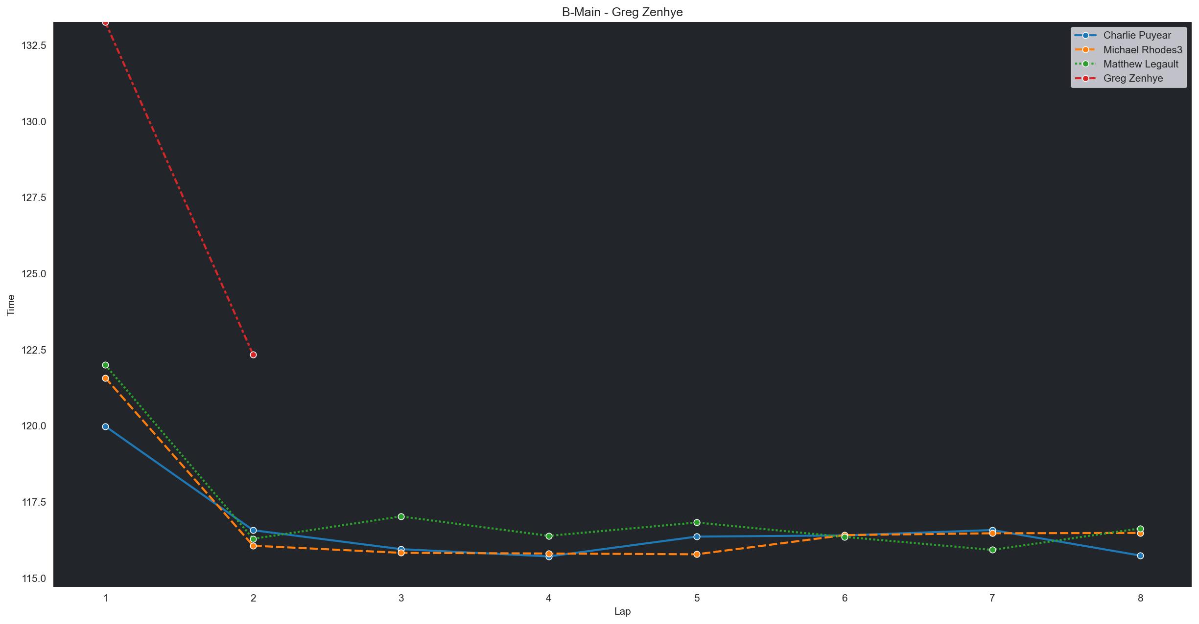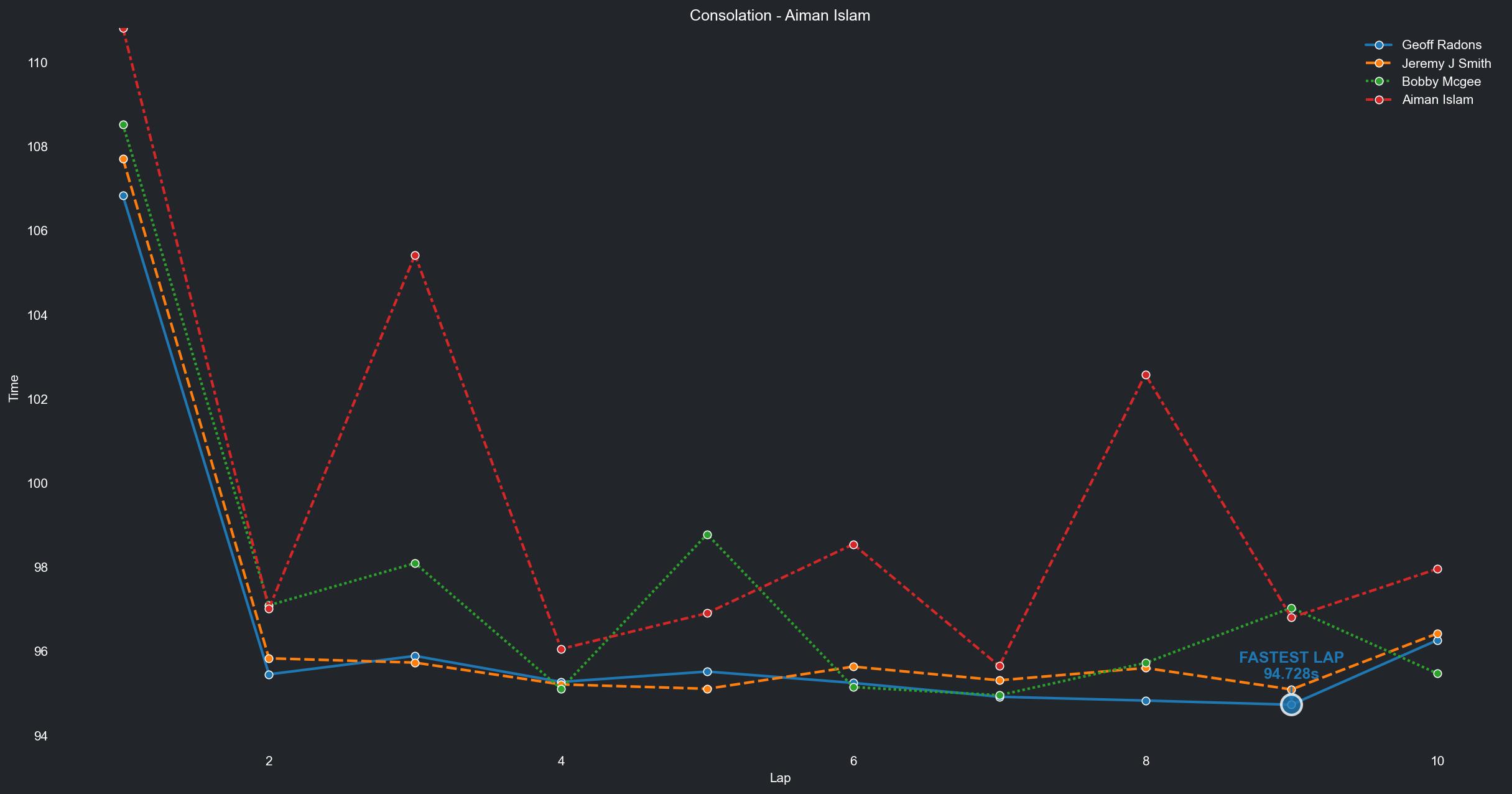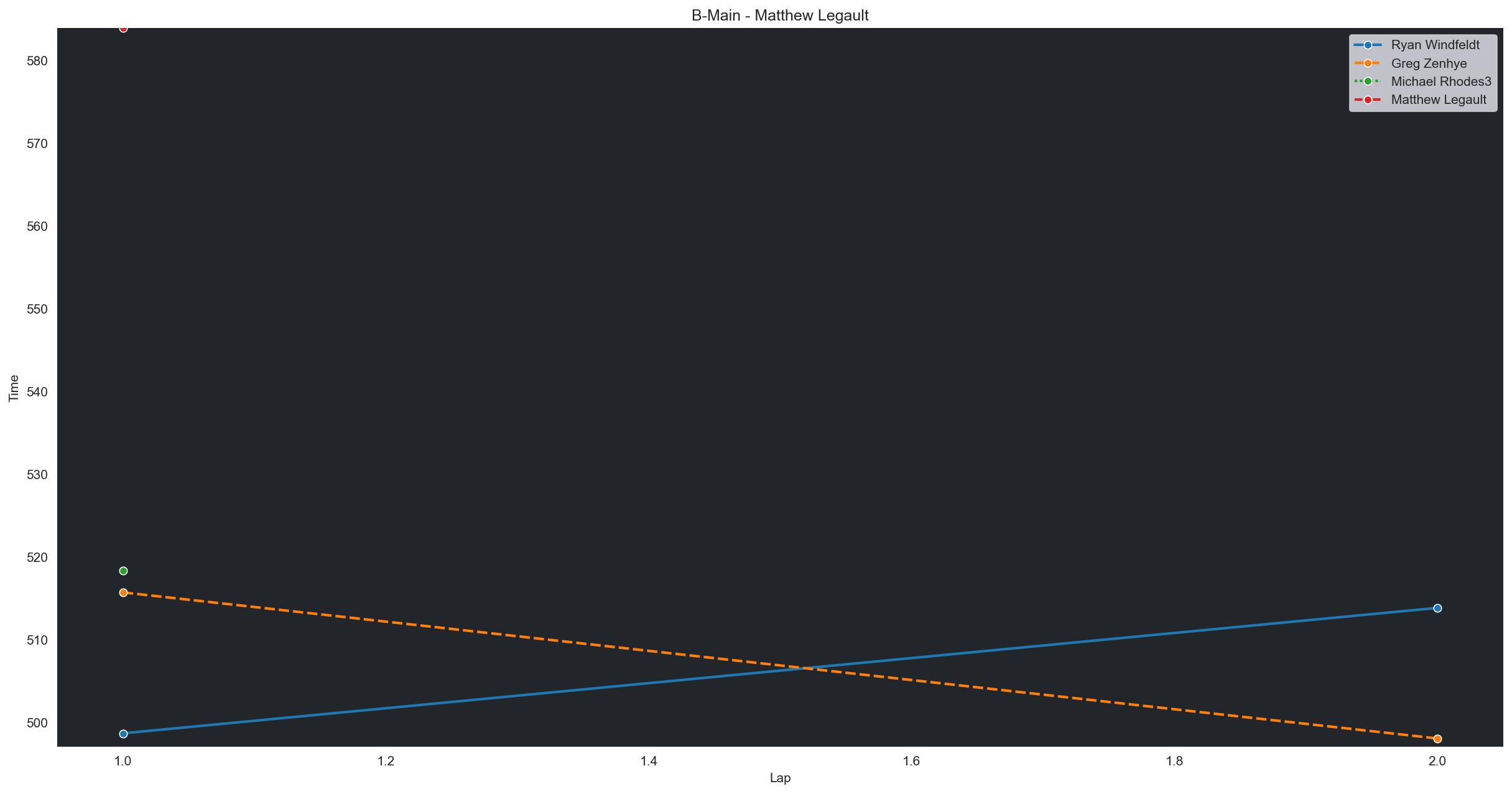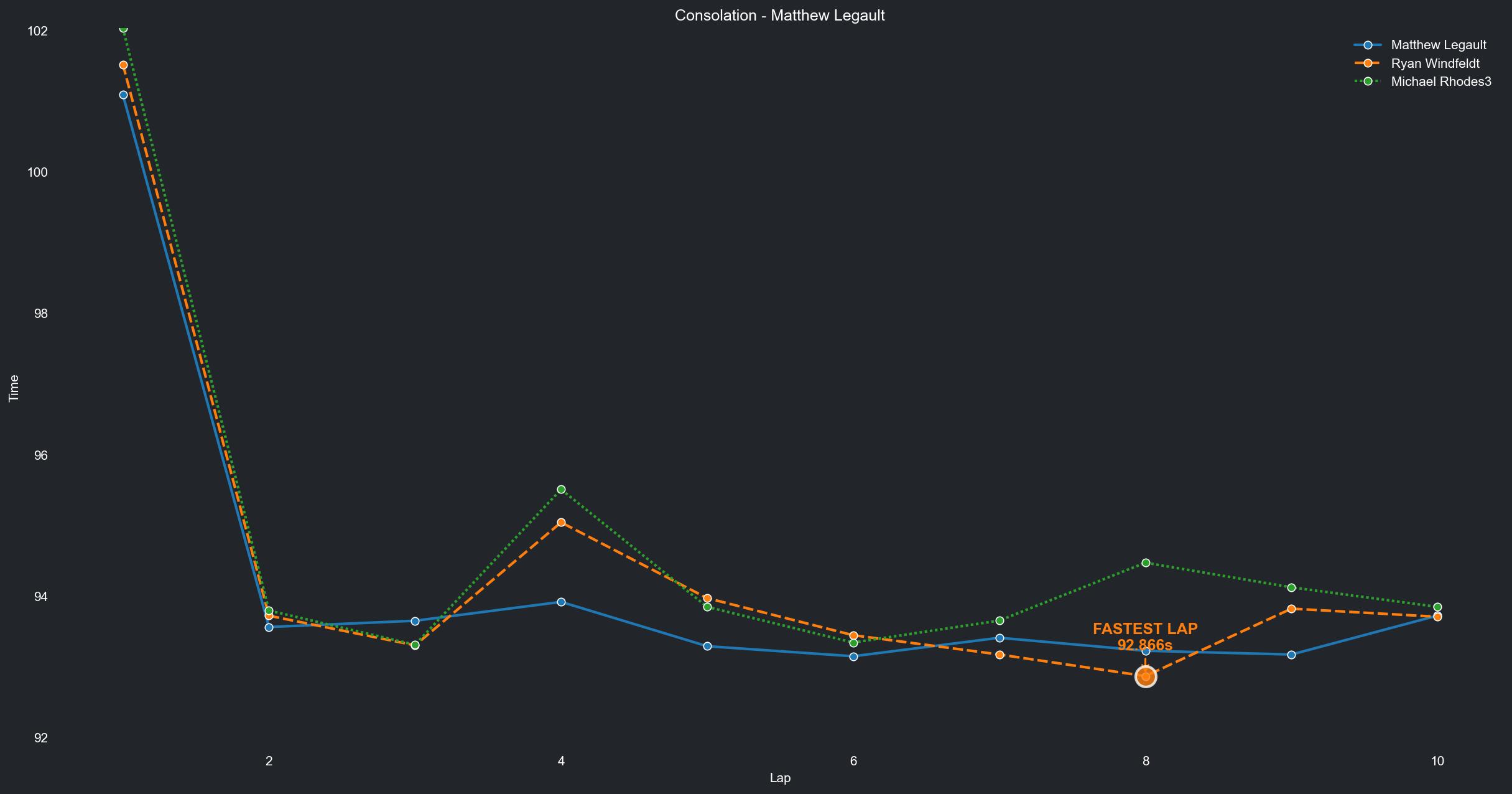 | Matthew Legault | 8 | 5 | 1:42.0580 | 1:35.5484 | 1:34.6908 | 1:34.1036 | 1:33.4879 | 1:33.7070 | 1:53.4019 | 1:33.3468 | 1:33.6330 | 1:35.5426 | 0 |