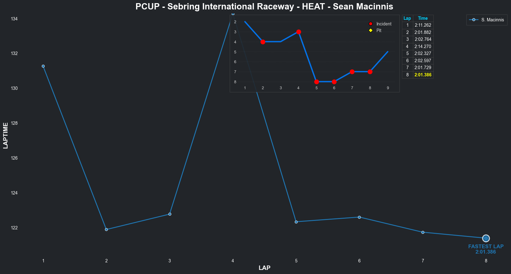 | Sean Macinnis | 5 | 5 | 2:11.2616 | 2:01.8821 | 2:02.7640 | 2:14.2704 | 2:02.3274 | 2:02.5965 | 2:01.7294 | 2:01.3865 | 0 | None | 8 |