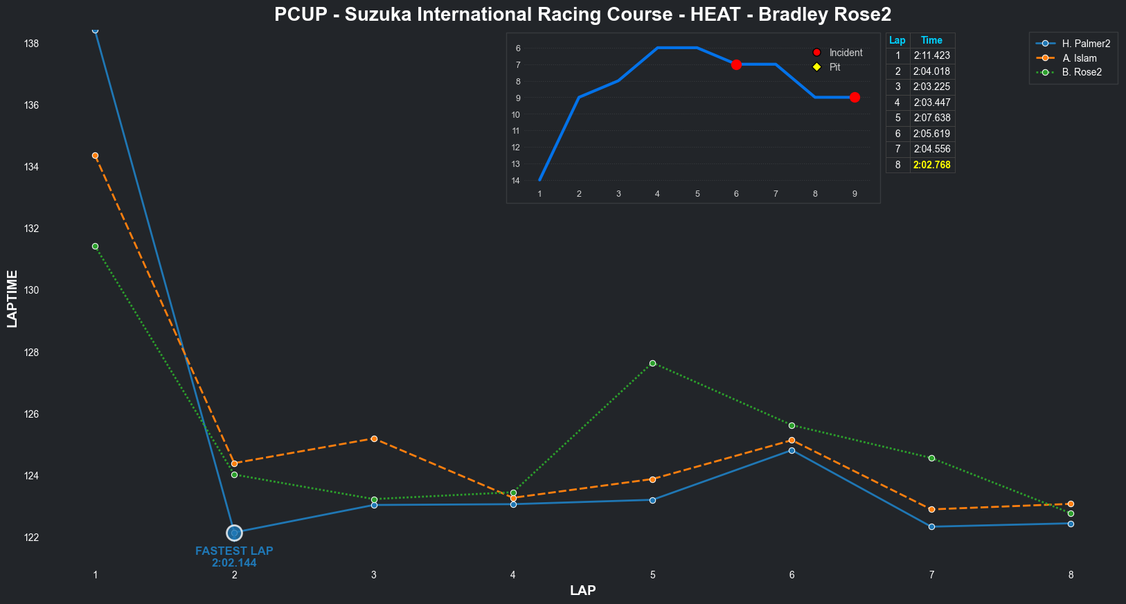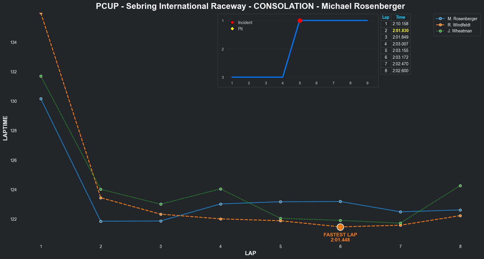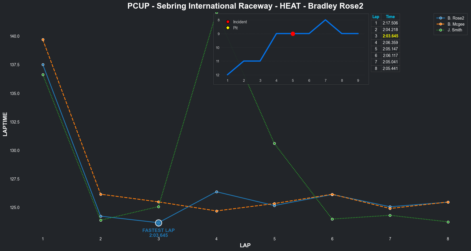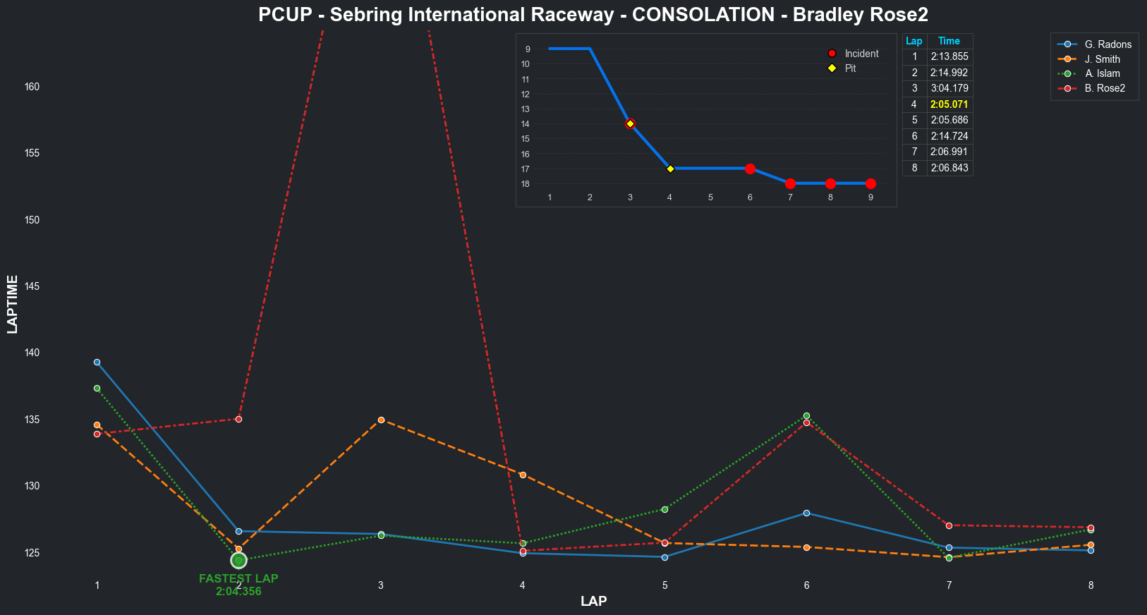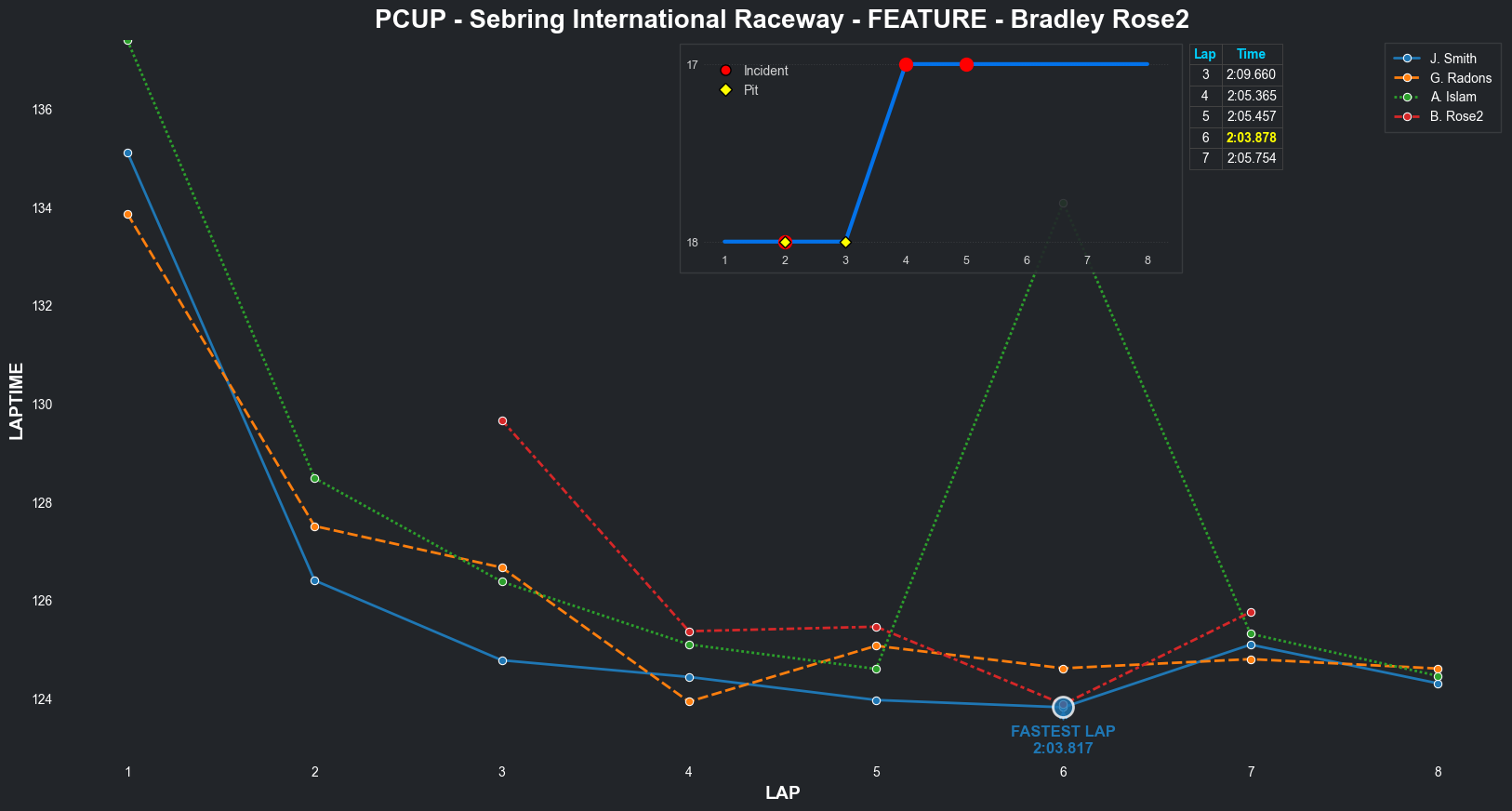 | Bradley Rose2 | 16 | 4 | 2:09.1111 | 2:03.8821 | 2:04.2855 | 2:03.6287 | 2:10.6353 | 2:04.5827 | 2:05.4578 | 2:17.5268 | 0 | 8 |