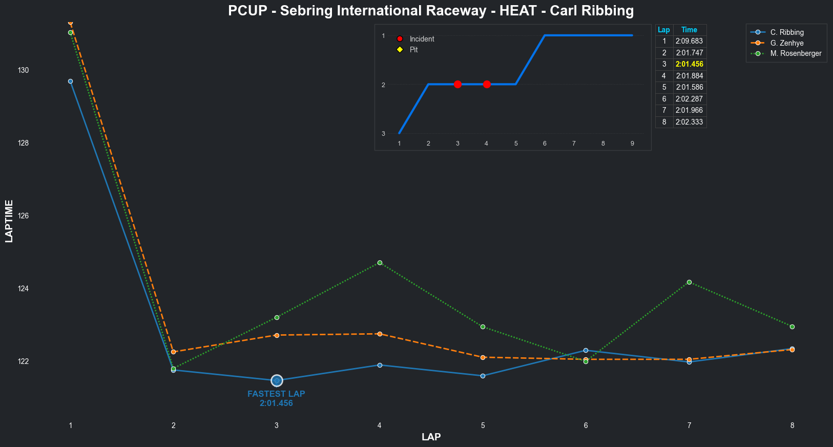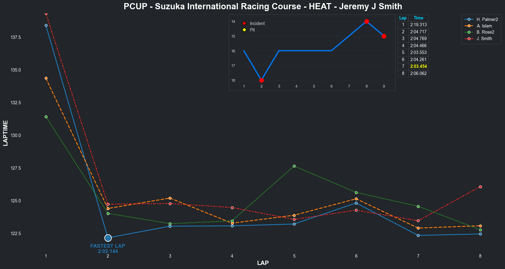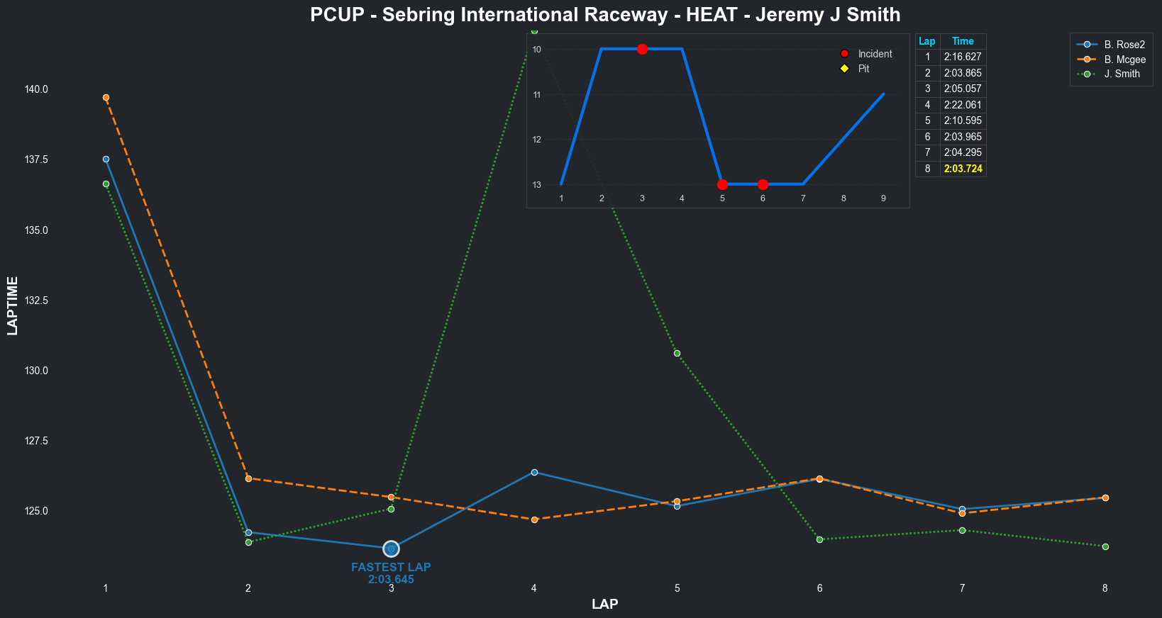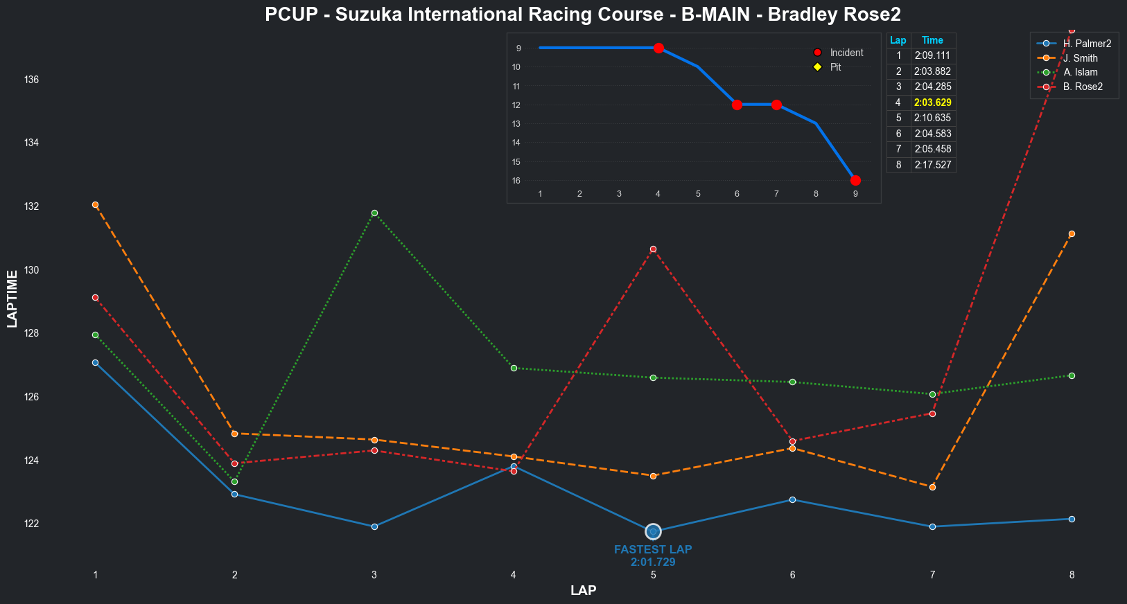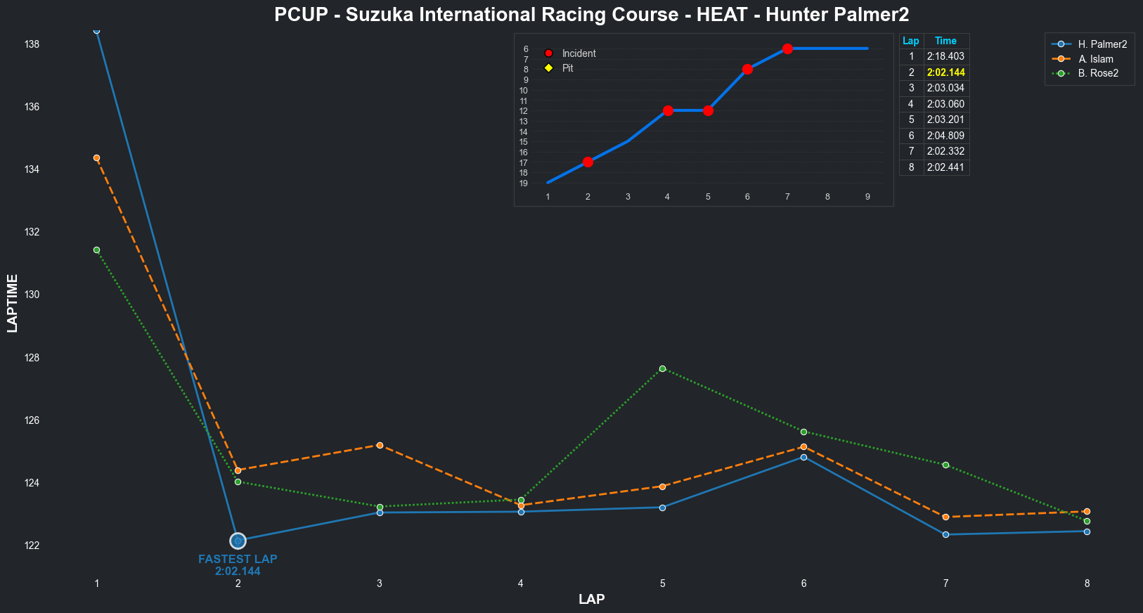 | Bradley Rose2 | 16 | 4 | 2:09.1111 | 2:03.8821 | 2:04.2855 | 2:03.6287 | 2:10.6353 | 2:04.5827 | 2:05.4578 | 2:17.5268 | 0 | 8 |