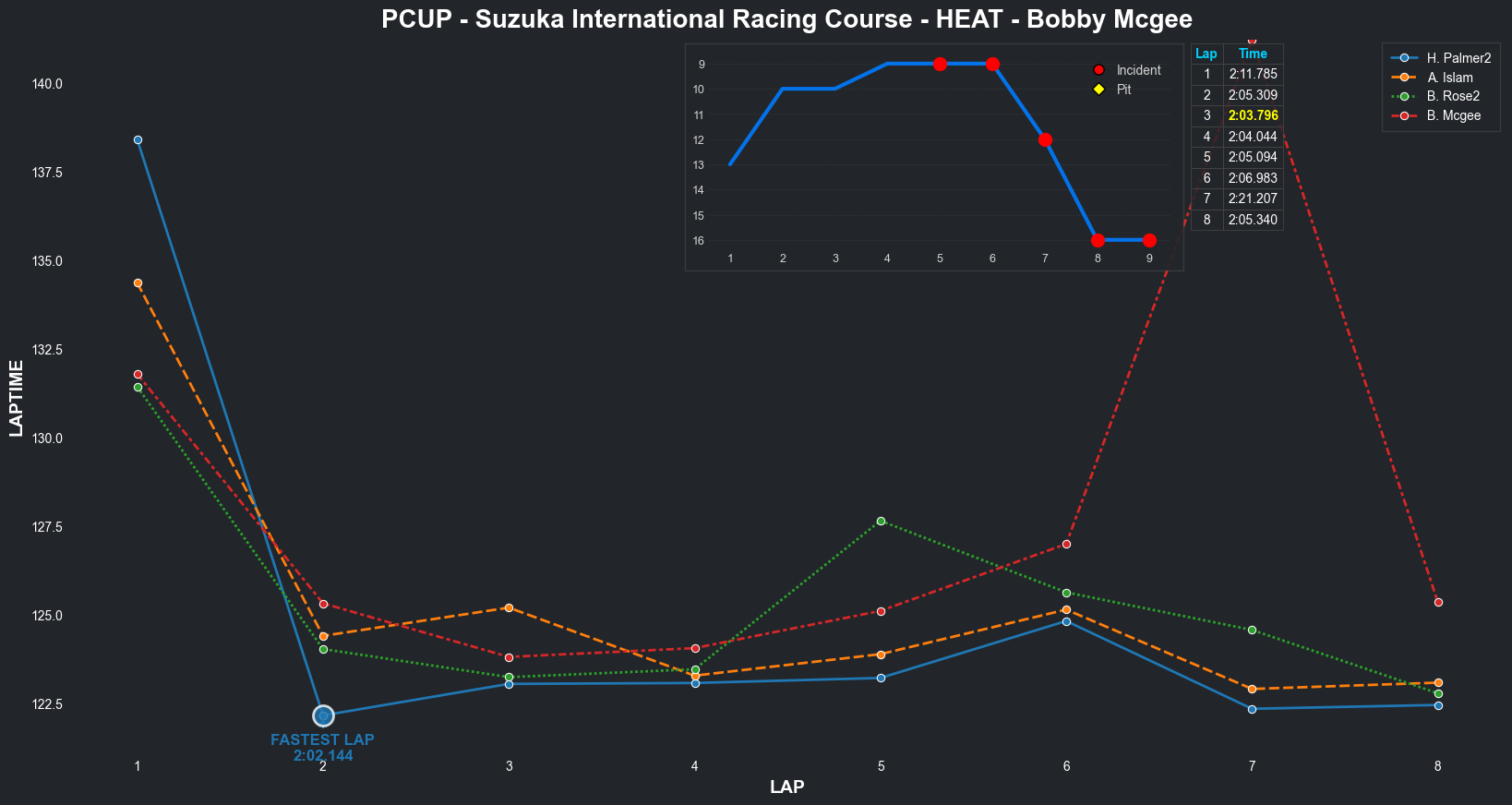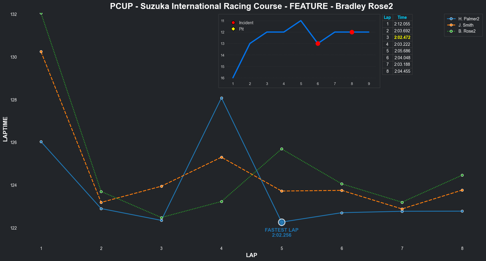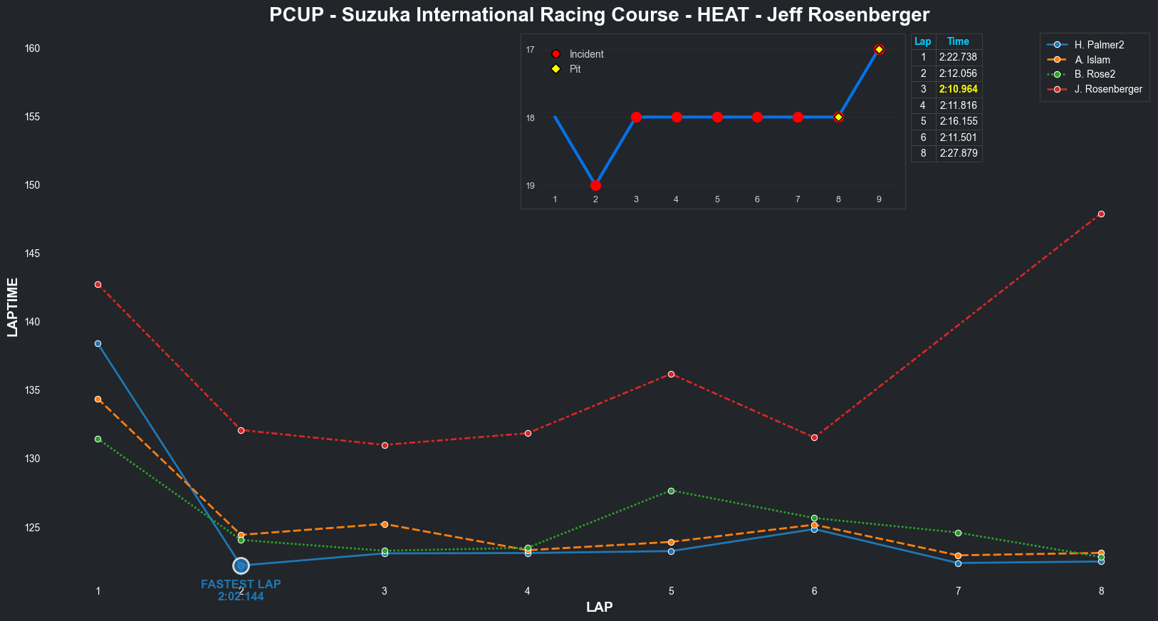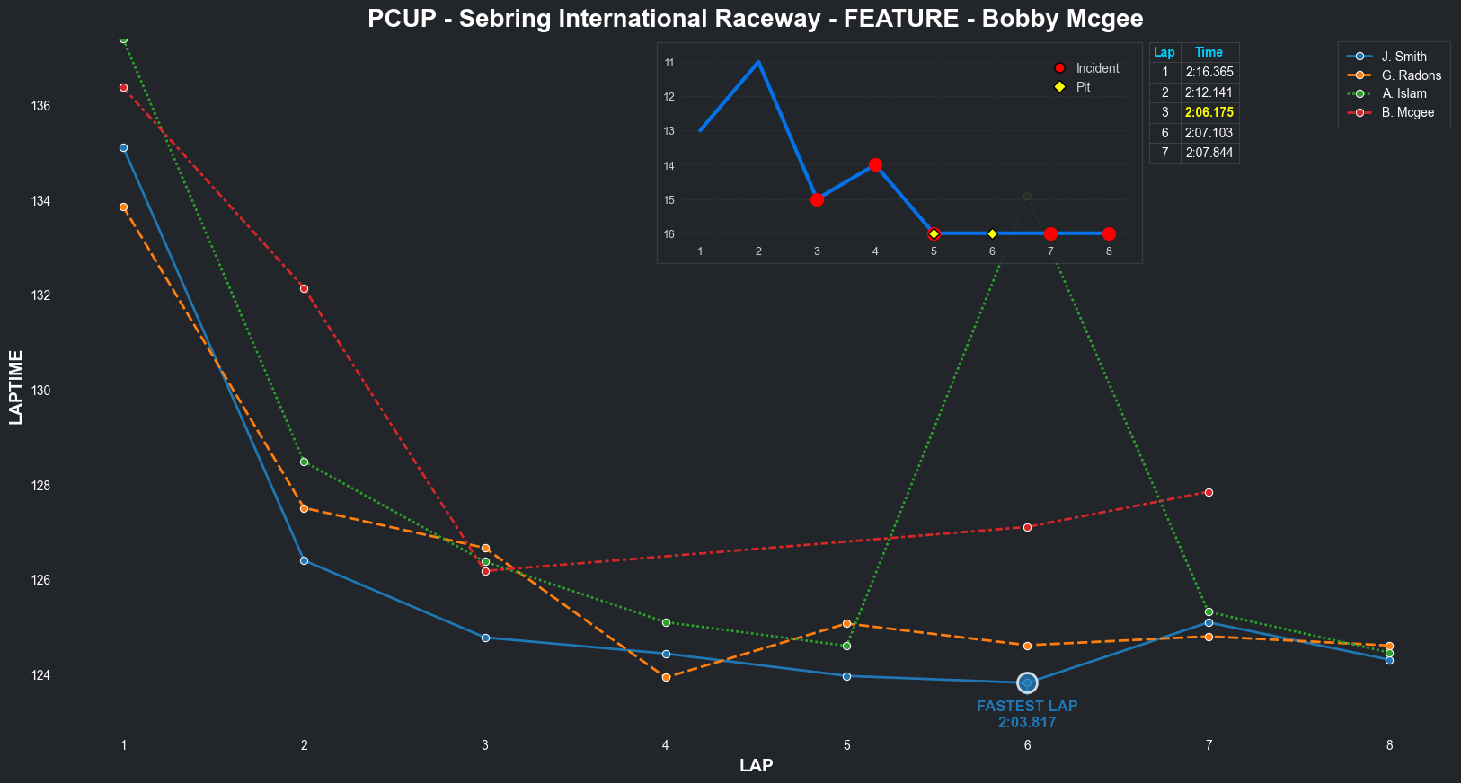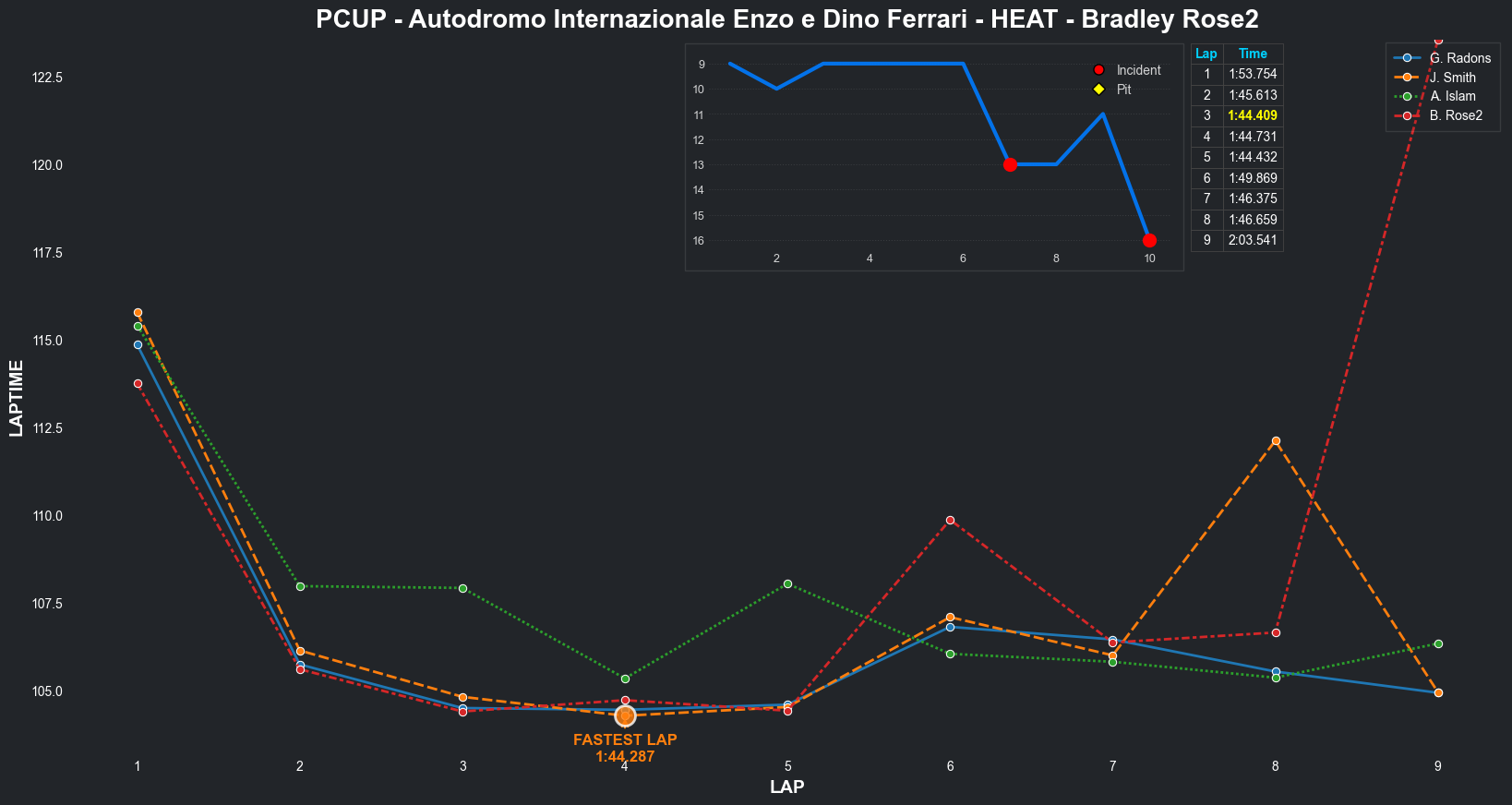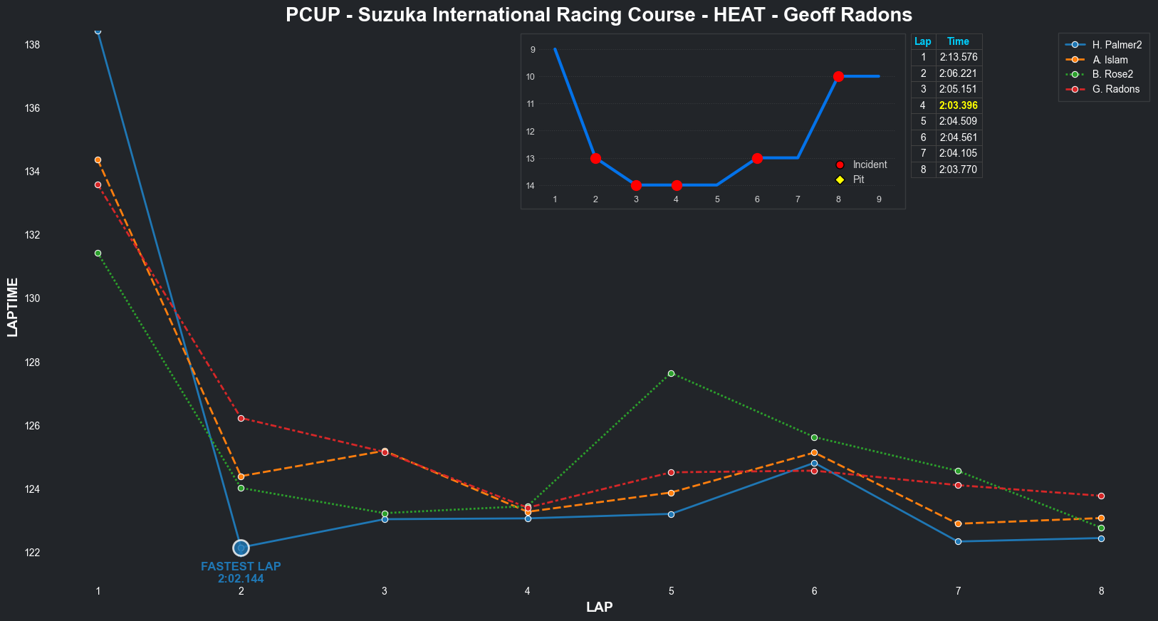 | Bradley Rose2 | 16 | 4 | 2:09.1111 | 2:03.8821 | 2:04.2855 | 2:03.6287 | 2:10.6353 | 2:04.5827 | 2:05.4578 | 2:17.5268 | 0 | 8 |