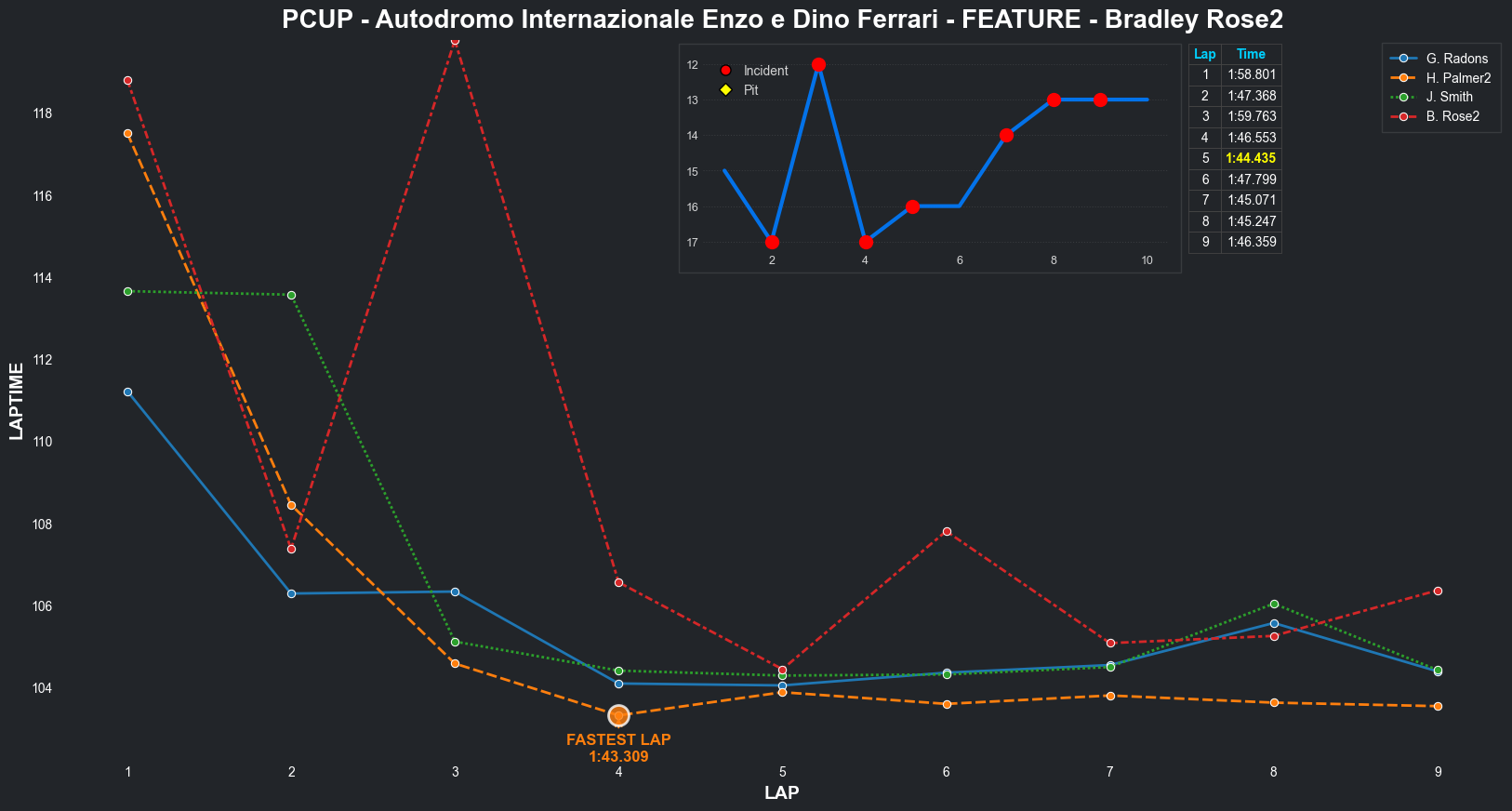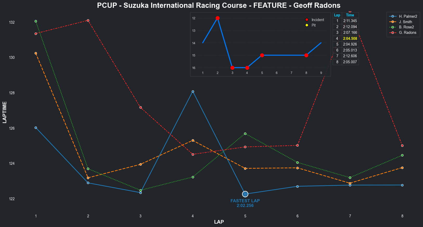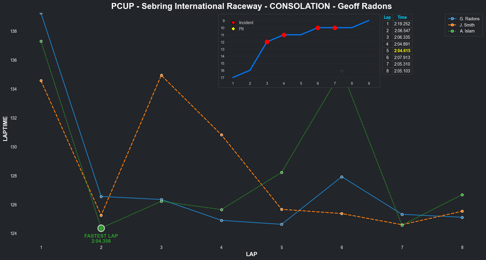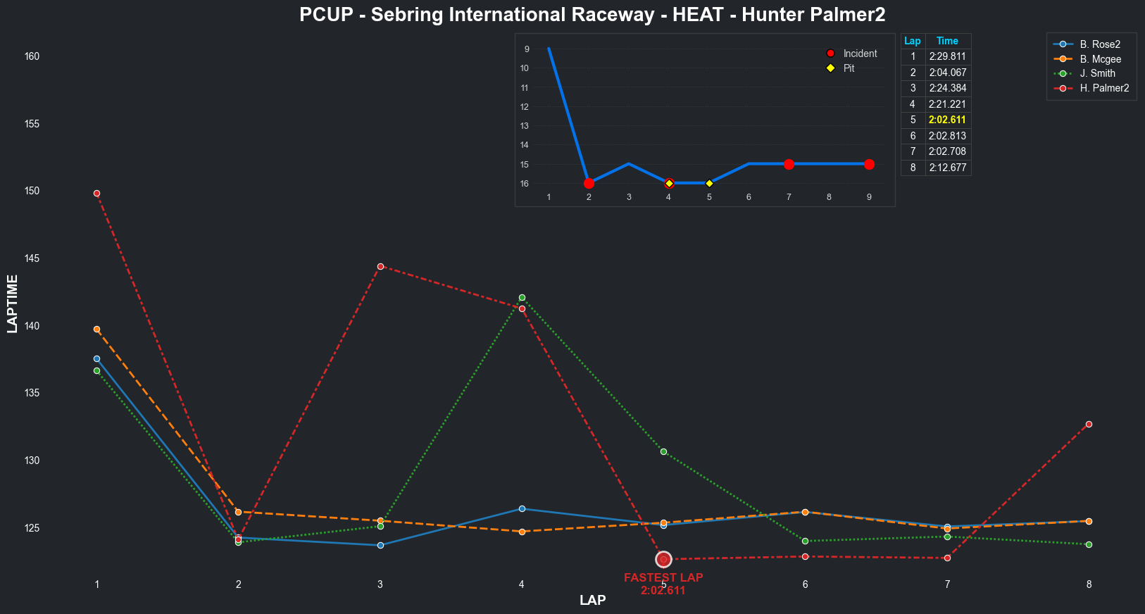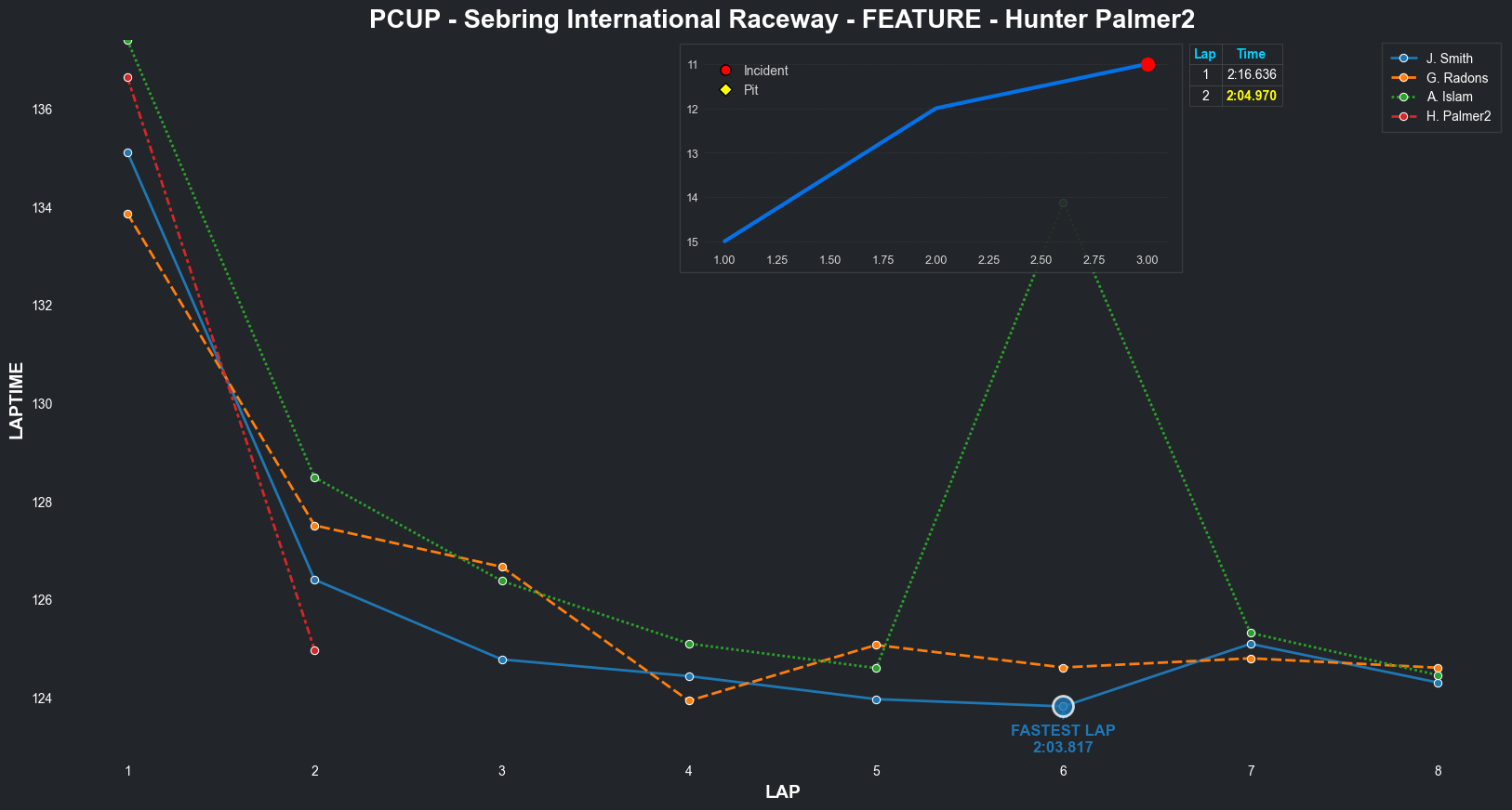 | Bradley Rose2 | 16 | 4 | 2:09.1111 | 2:03.8821 | 2:04.2855 | 2:03.6287 | 2:10.6353 | 2:04.5827 | 2:05.4578 | 2:17.5268 | 0 | 8 |