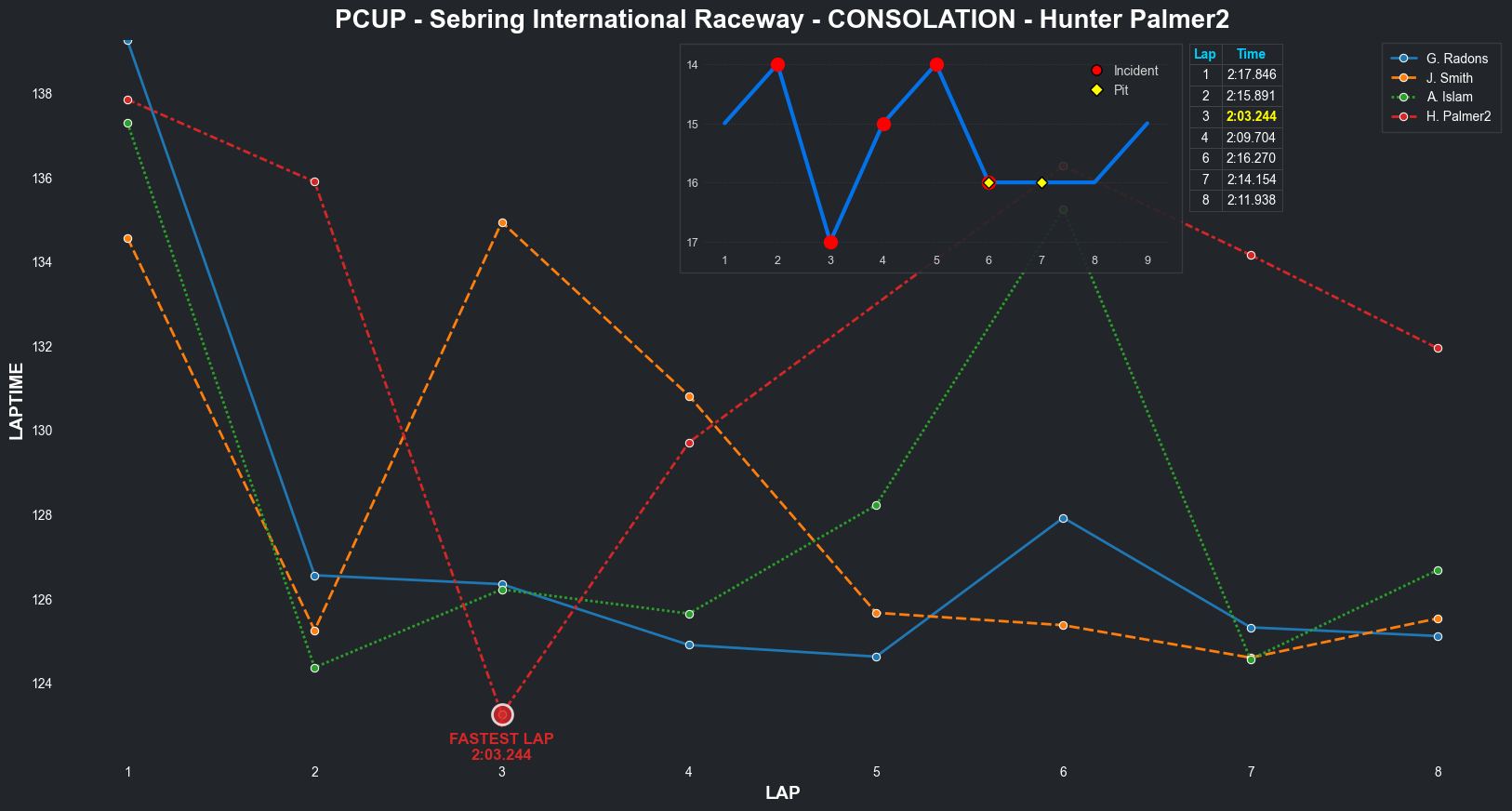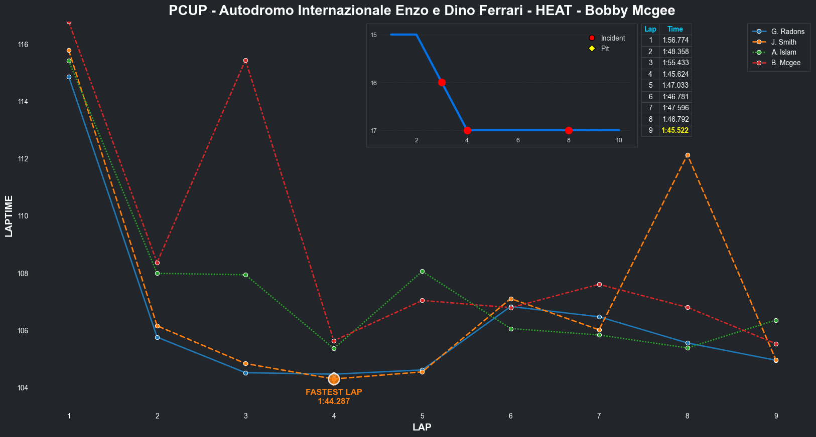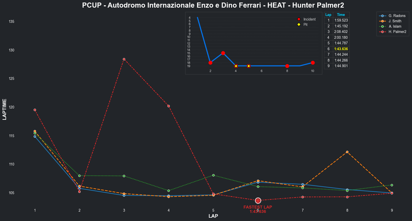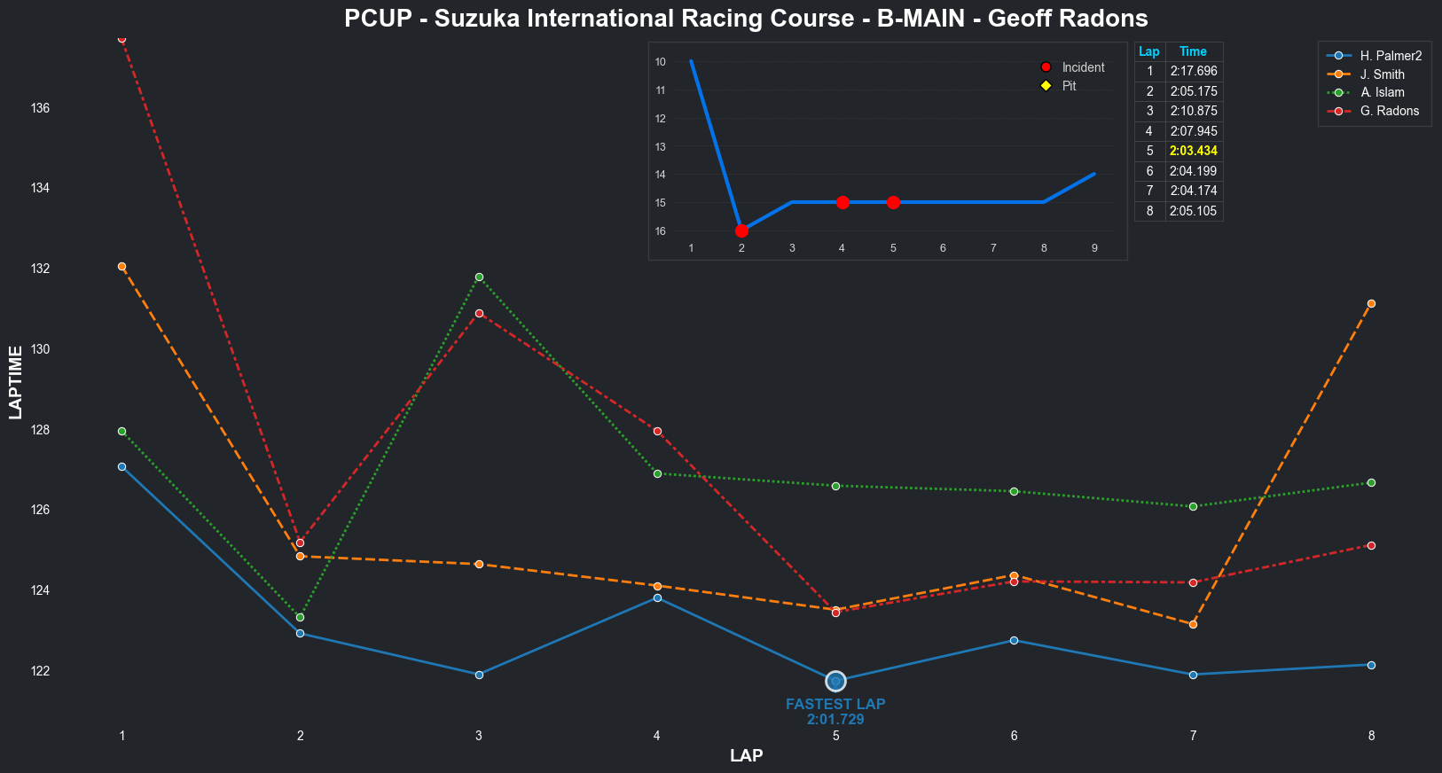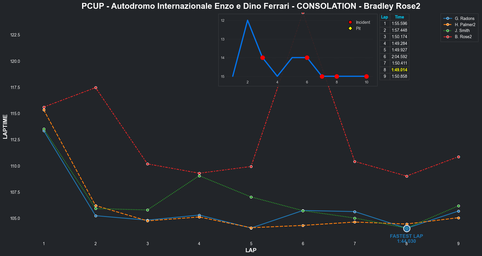 | Bradley Rose2 | 16 | 4 | 2:09.1111 | 2:03.8821 | 2:04.2855 | 2:03.6287 | 2:10.6353 | 2:04.5827 | 2:05.4578 | 2:17.5268 | 0 | 8 |