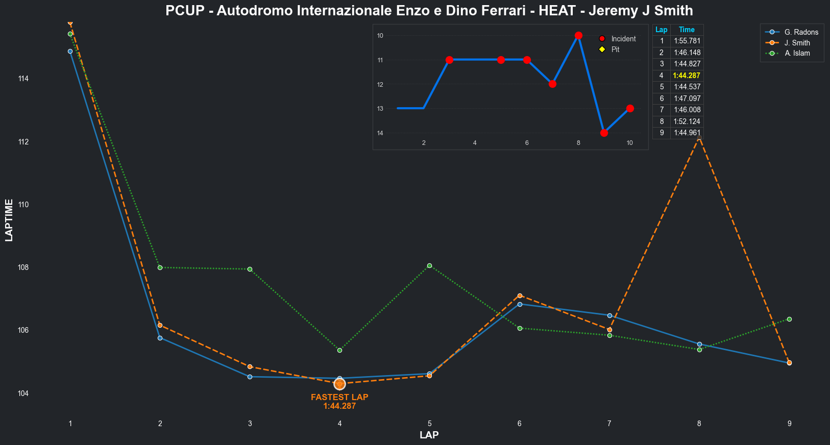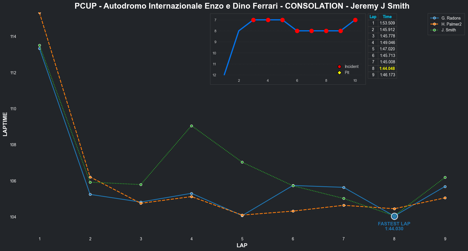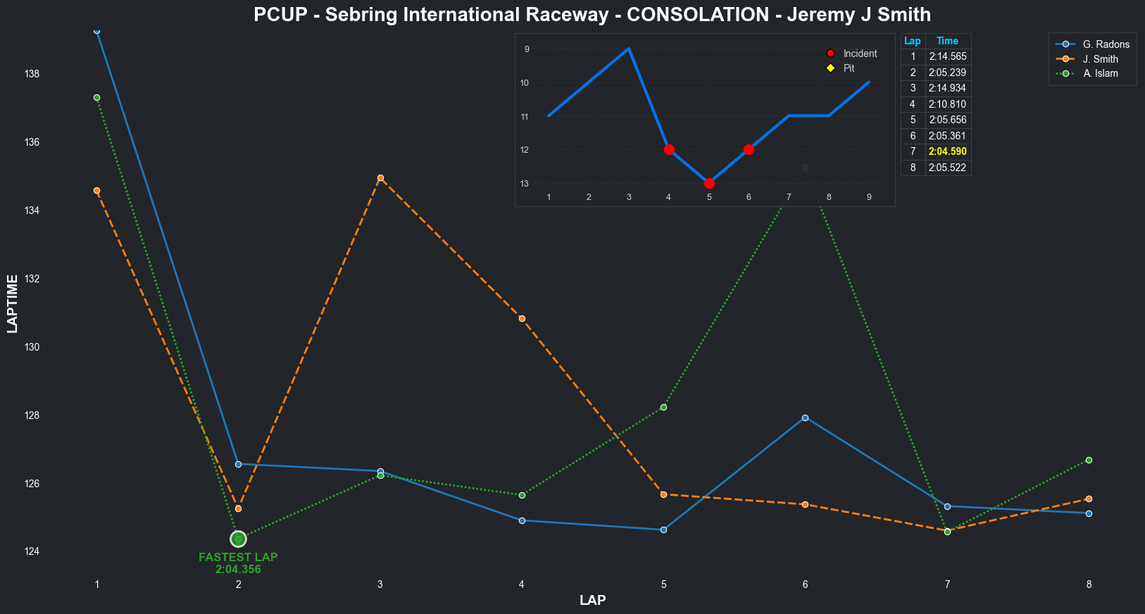 | Jeremy J Smith | 11 | 4 | 2:16.6269 | 2:03.8650 | 2:05.0568 | 2:22.0608 | 2:10.5948 | 2:03.9648 | 2:04.2947 | 2:03.7235 | 0 | 8 | |