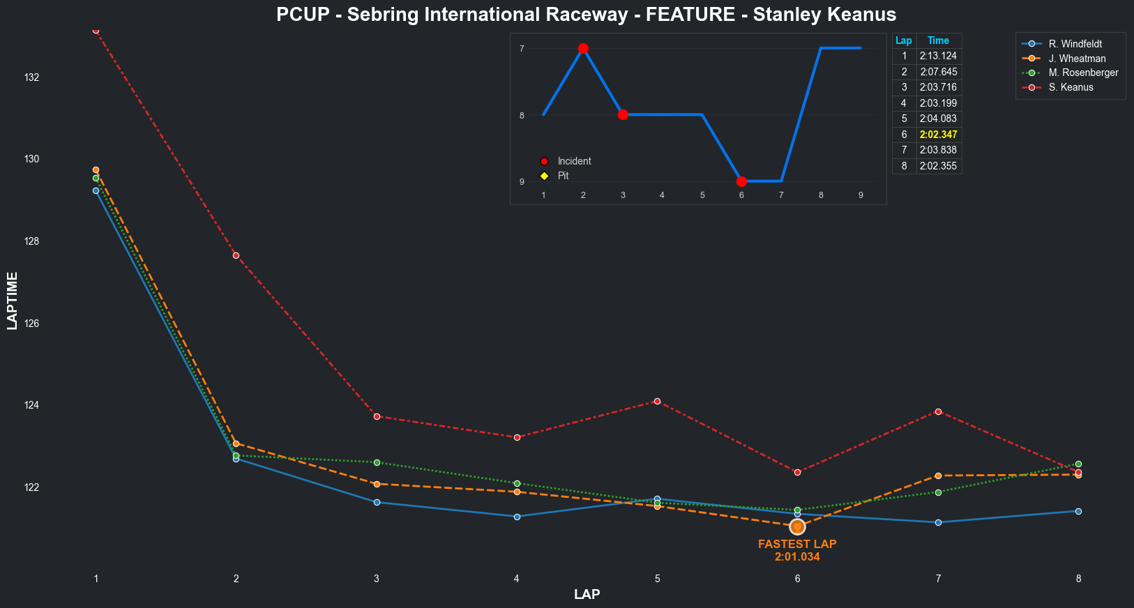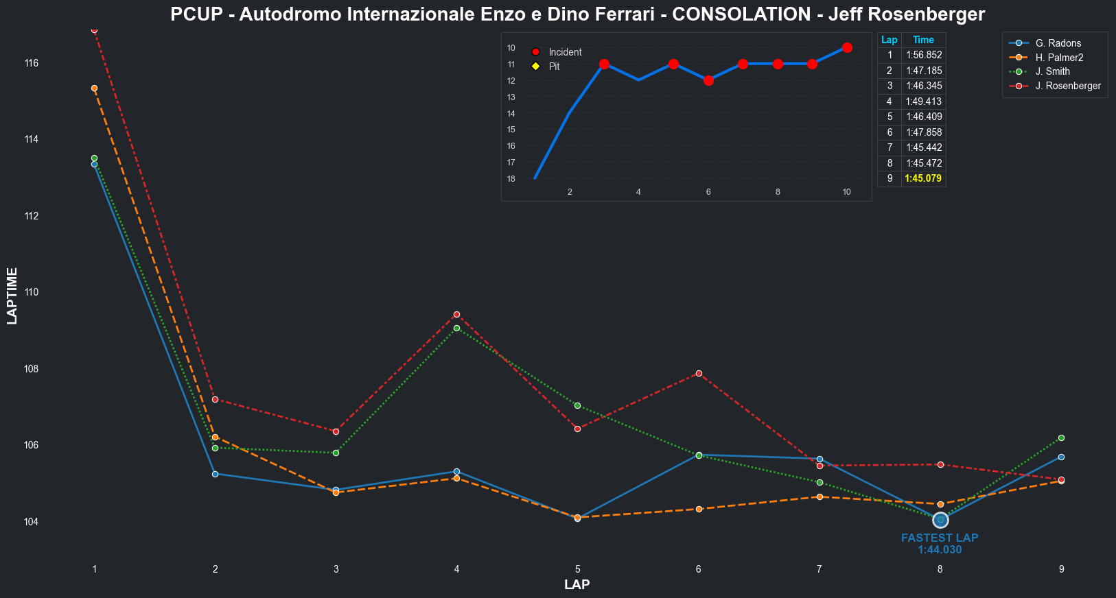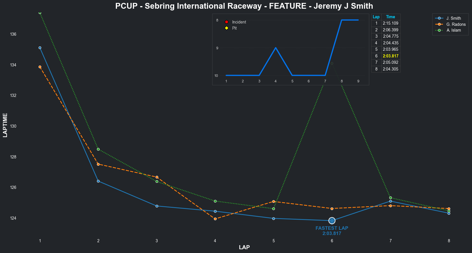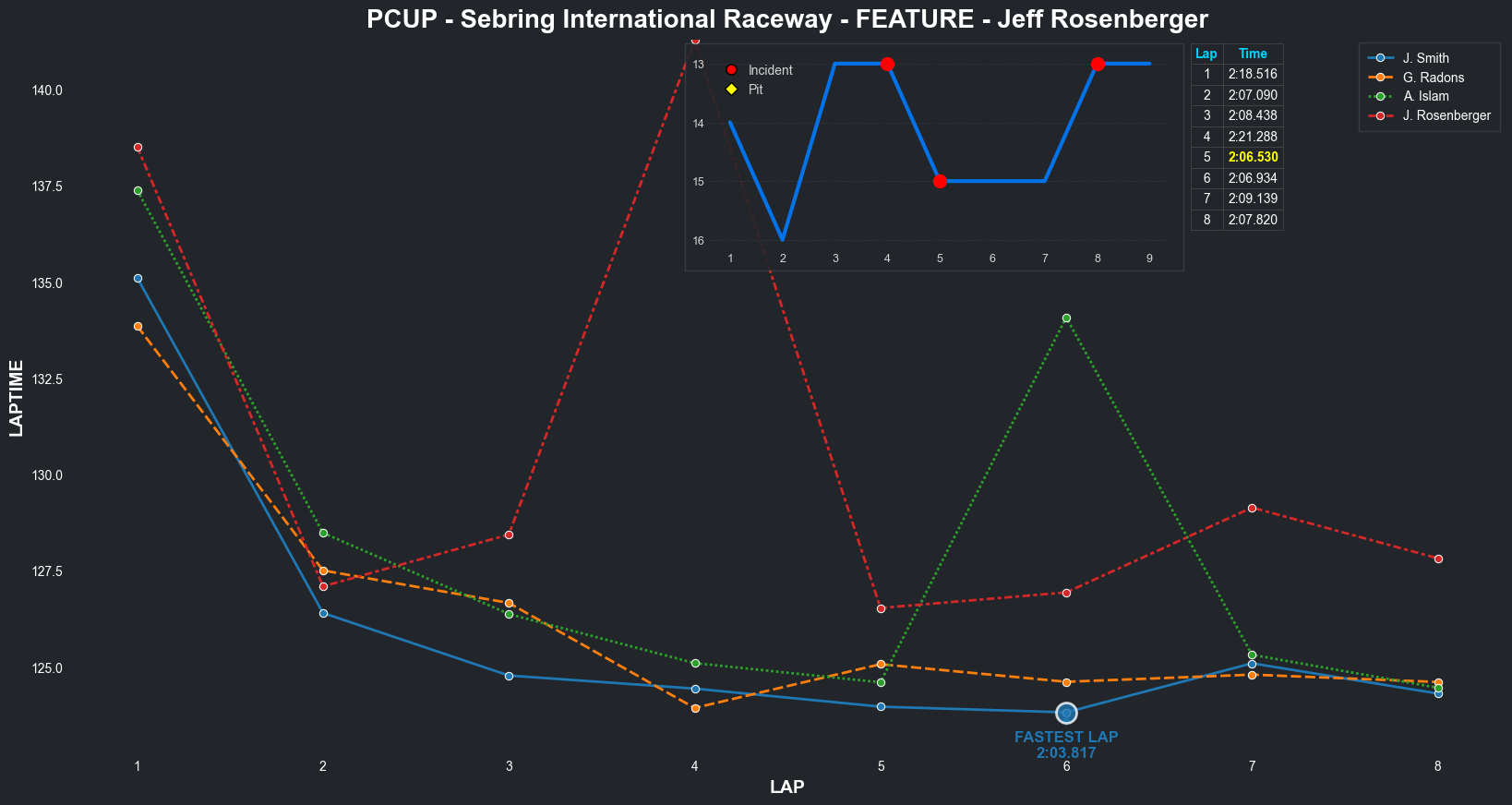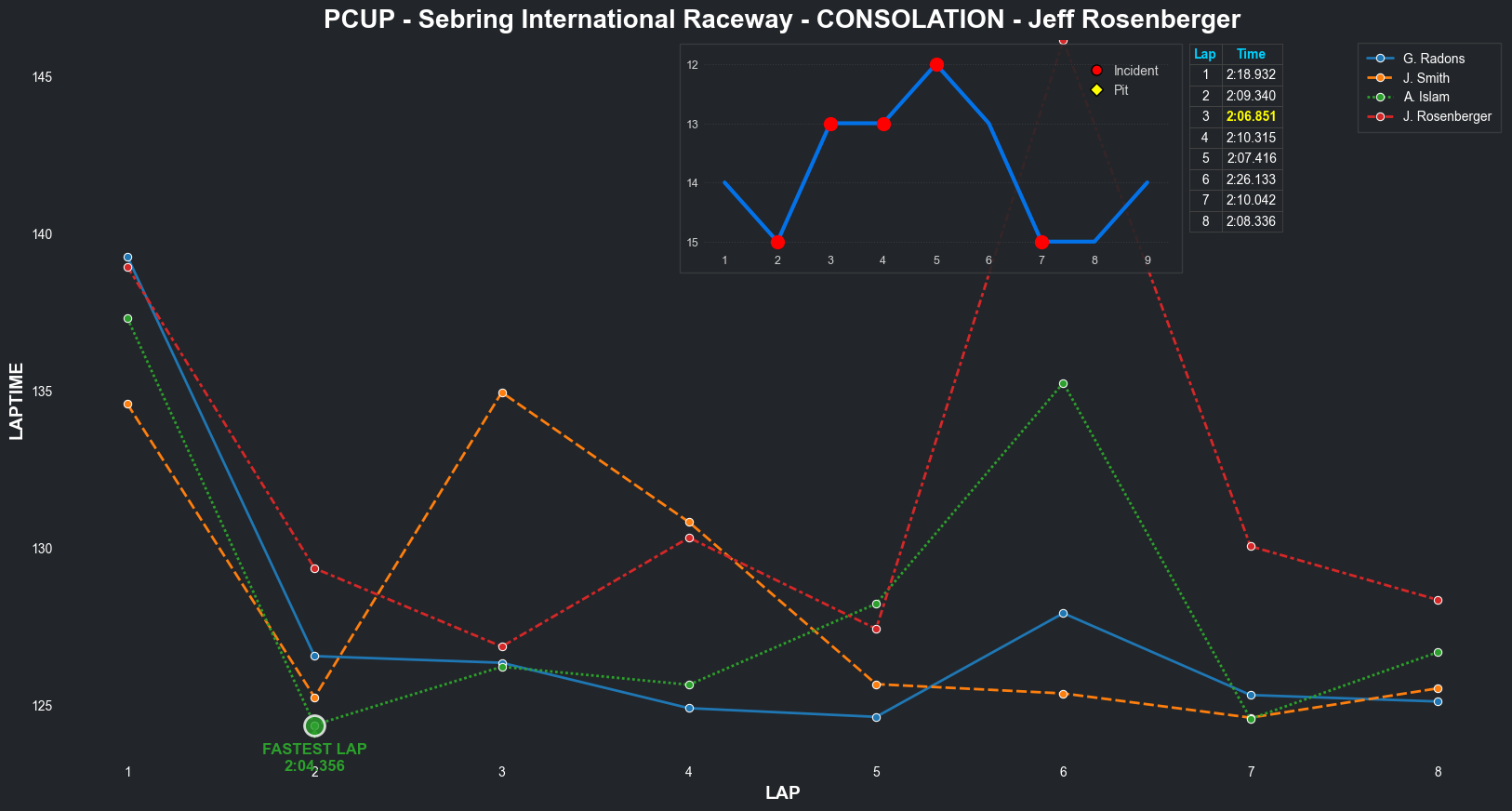 | Jeff Rosenberger | 16 | 3 | 2:16.0023 | 2:07.6134 | 2:08.5355 | 2:09.2379 | 2:07.5013 | 2:06.5765 | 2:07.8774 | 2:09.3227 | 0 | 8 |