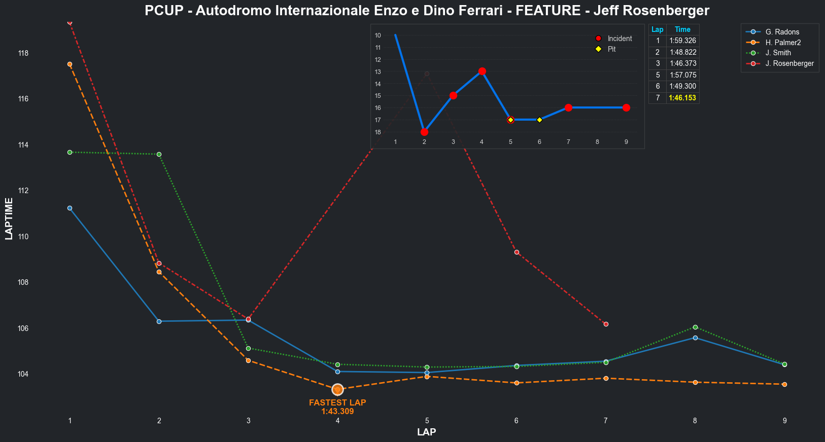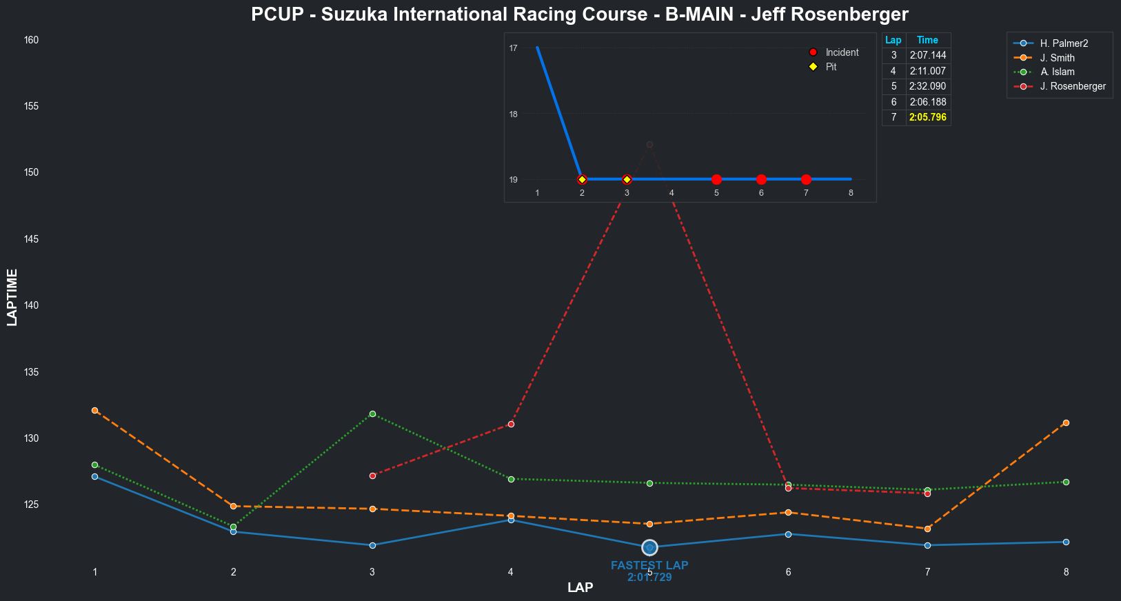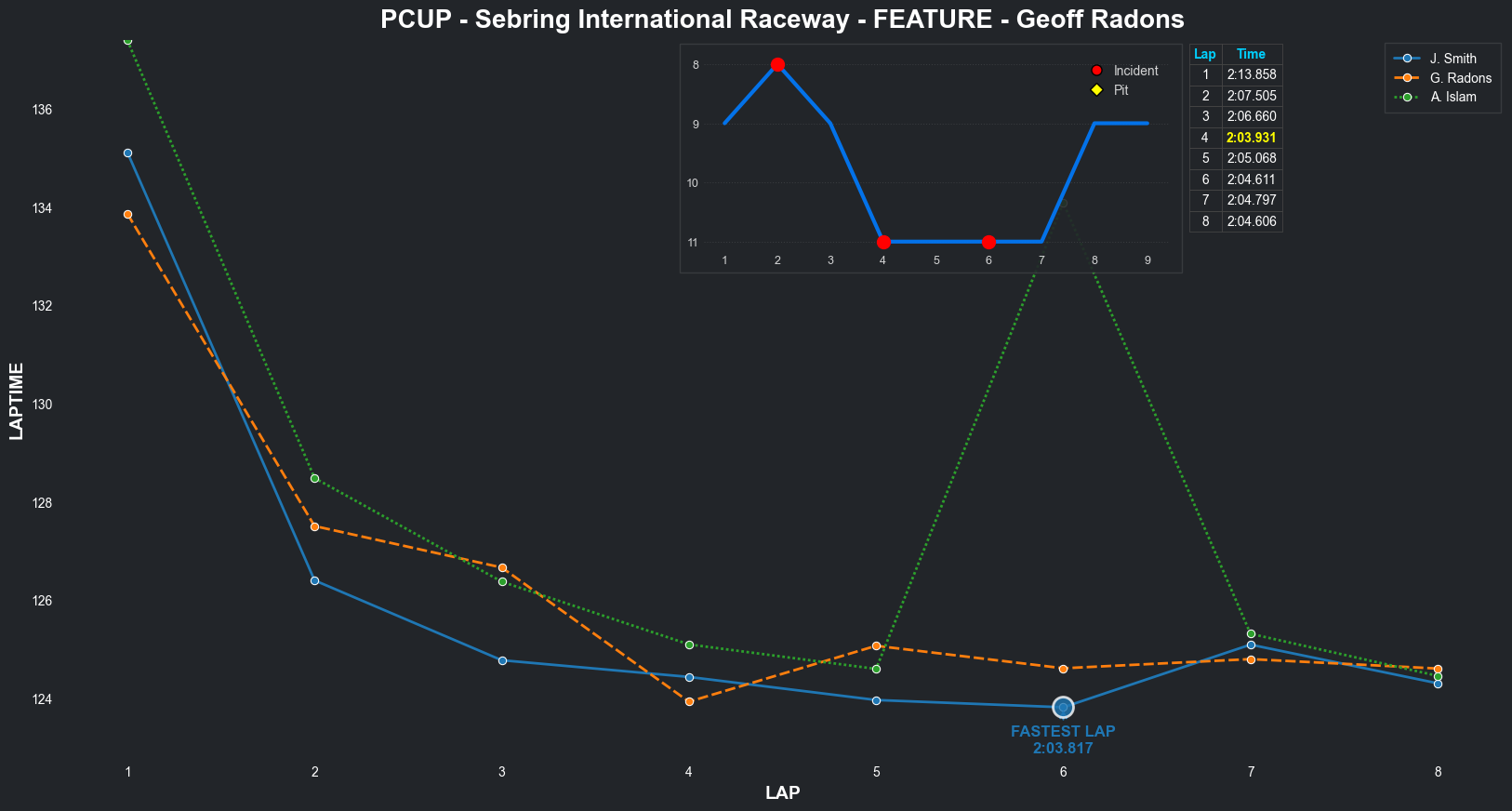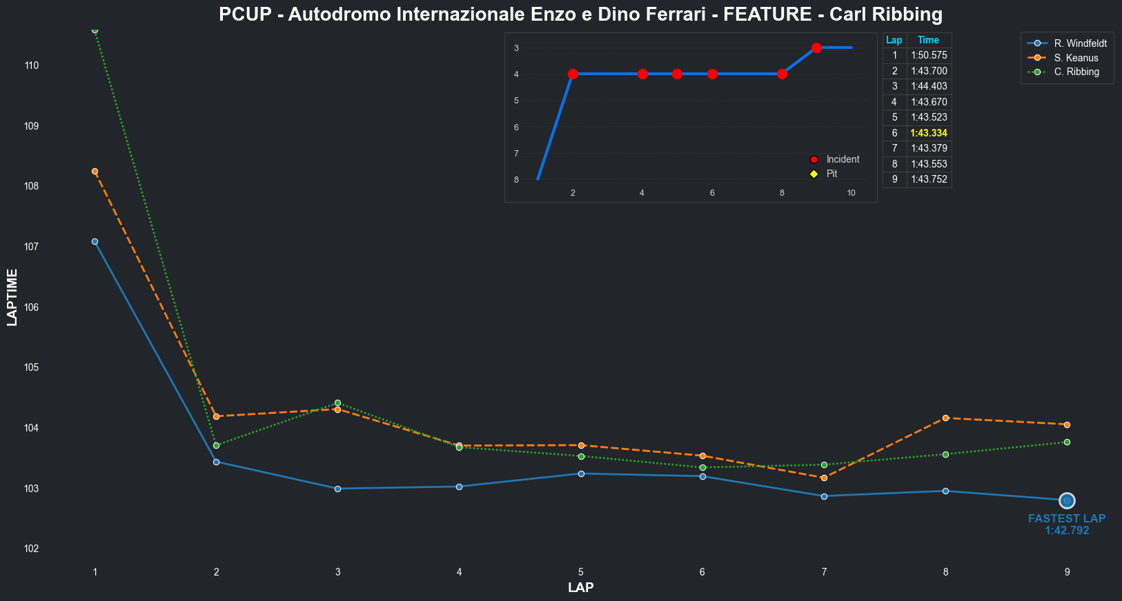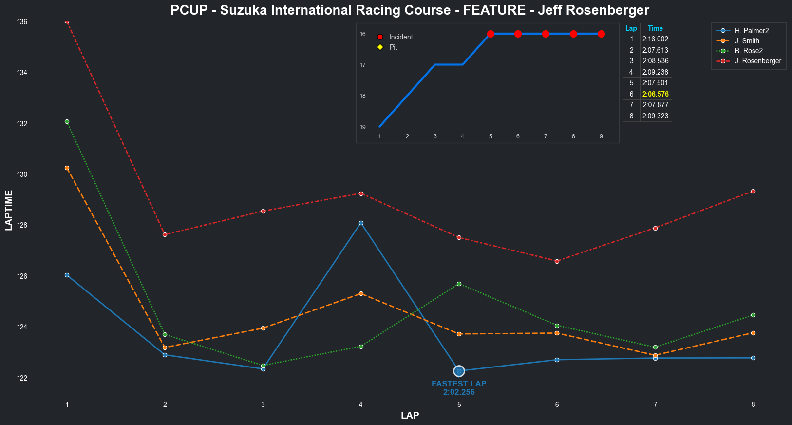 | Jeff Rosenberger | 16 | 3 | 2:16.0023 | 2:07.6134 | 2:08.5355 | 2:09.2379 | 2:07.5013 | 2:06.5765 | 2:07.8774 | 2:09.3227 | 0 | 8 |