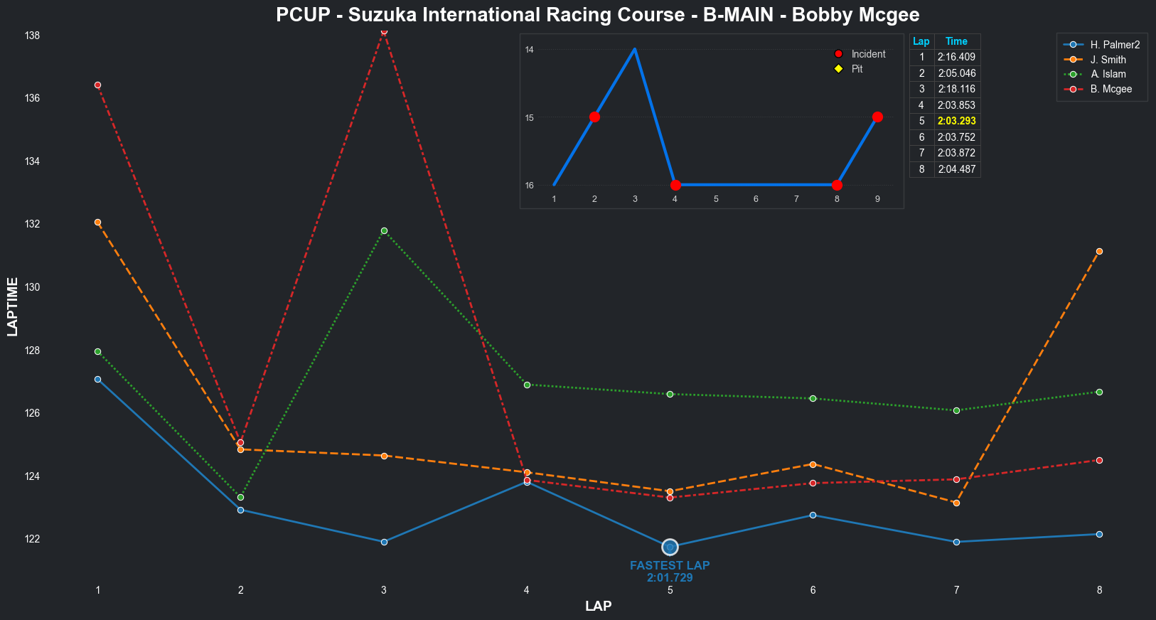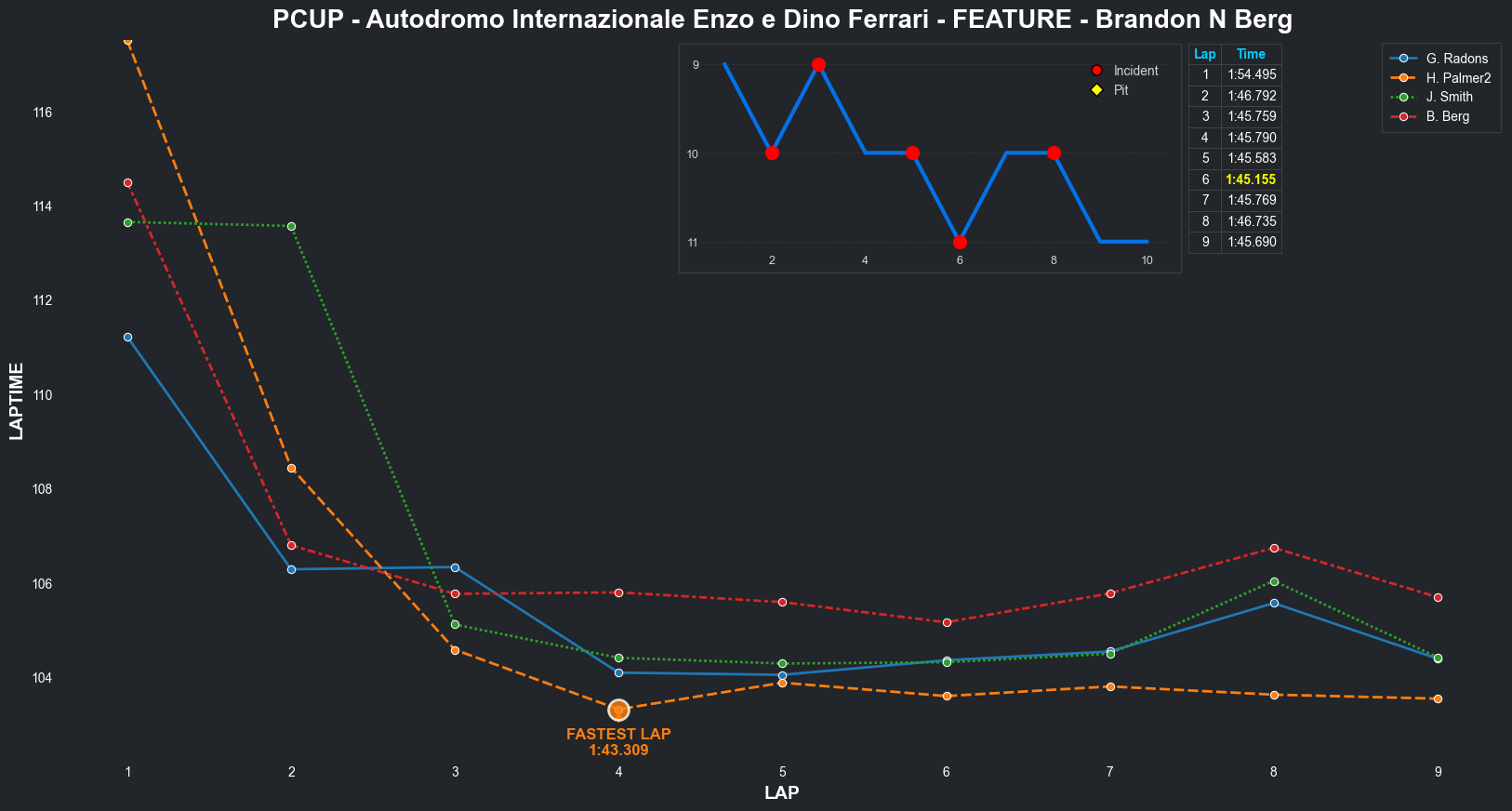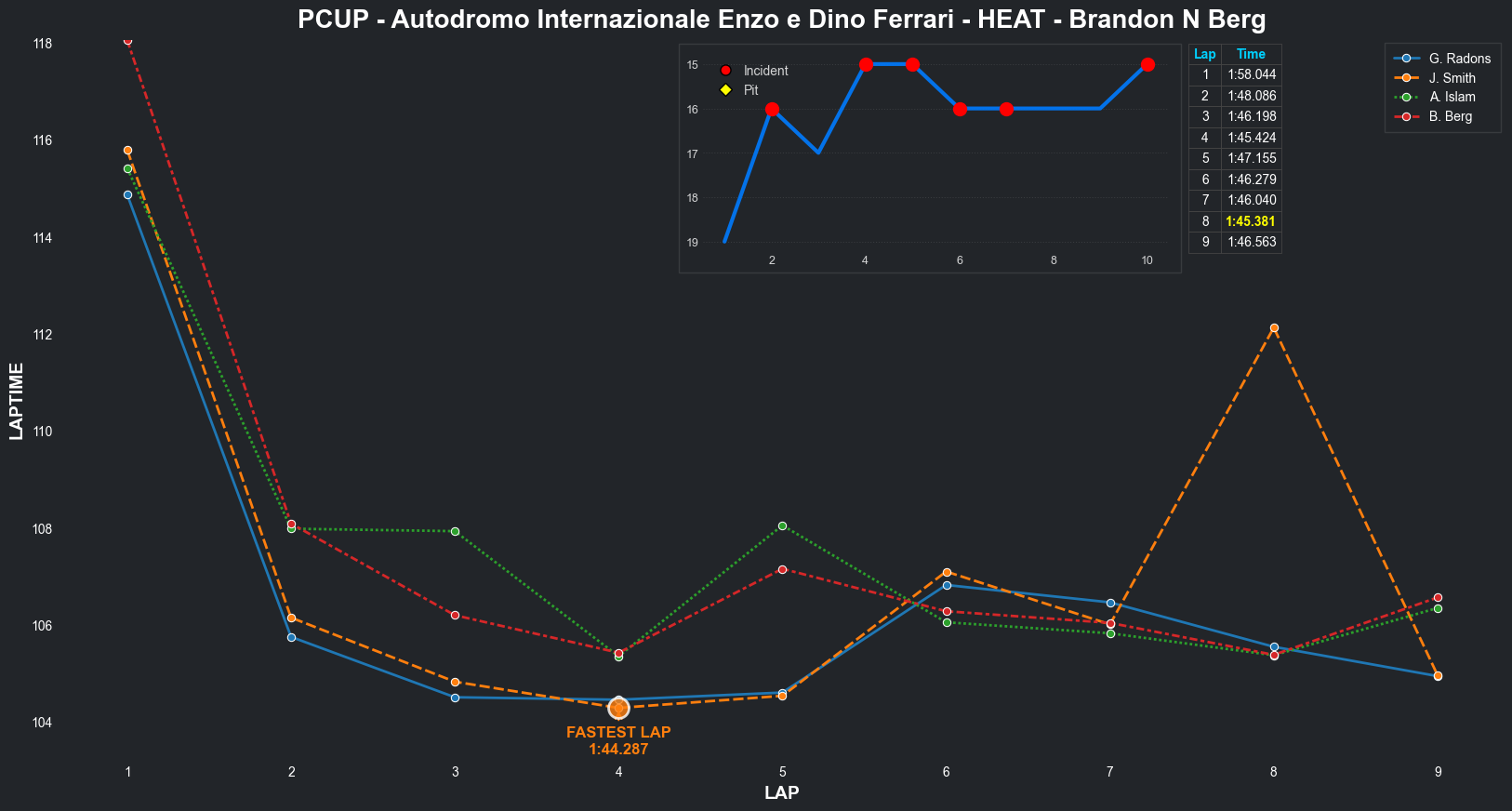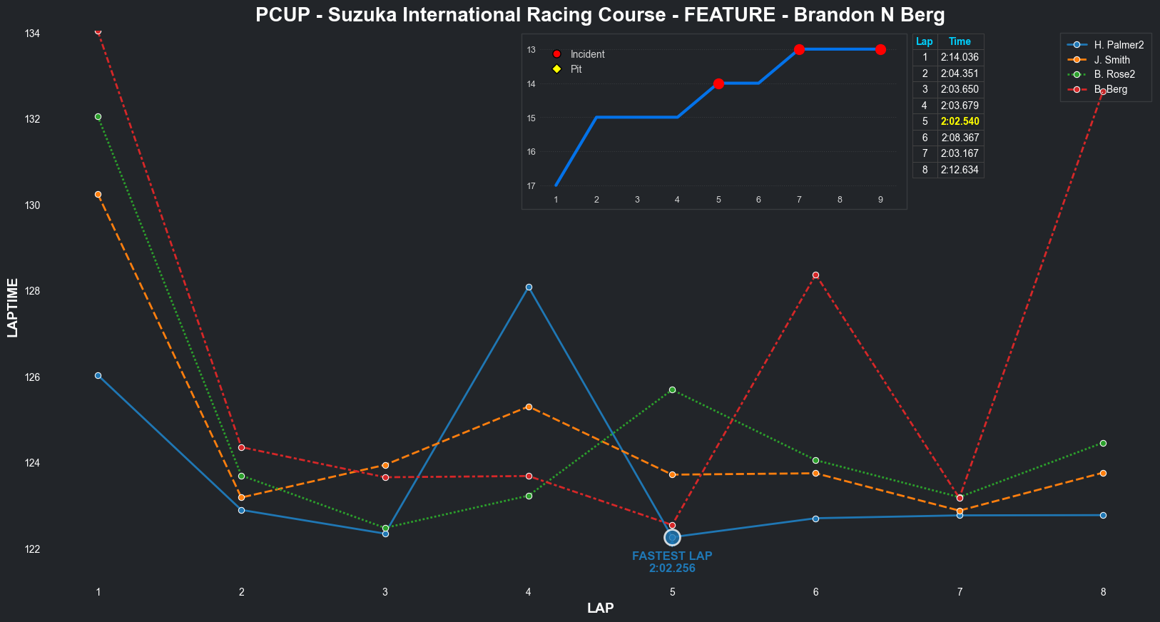 | Brandon N Berg | 17 | 4 | 2:32.3235 | 2:04.2637 | 2:10.4997 | 2:04.2431 | 2:09.6808 | 2:03.9250 | 2:03.3379 | 2:04.8084 | 0 | 8 |