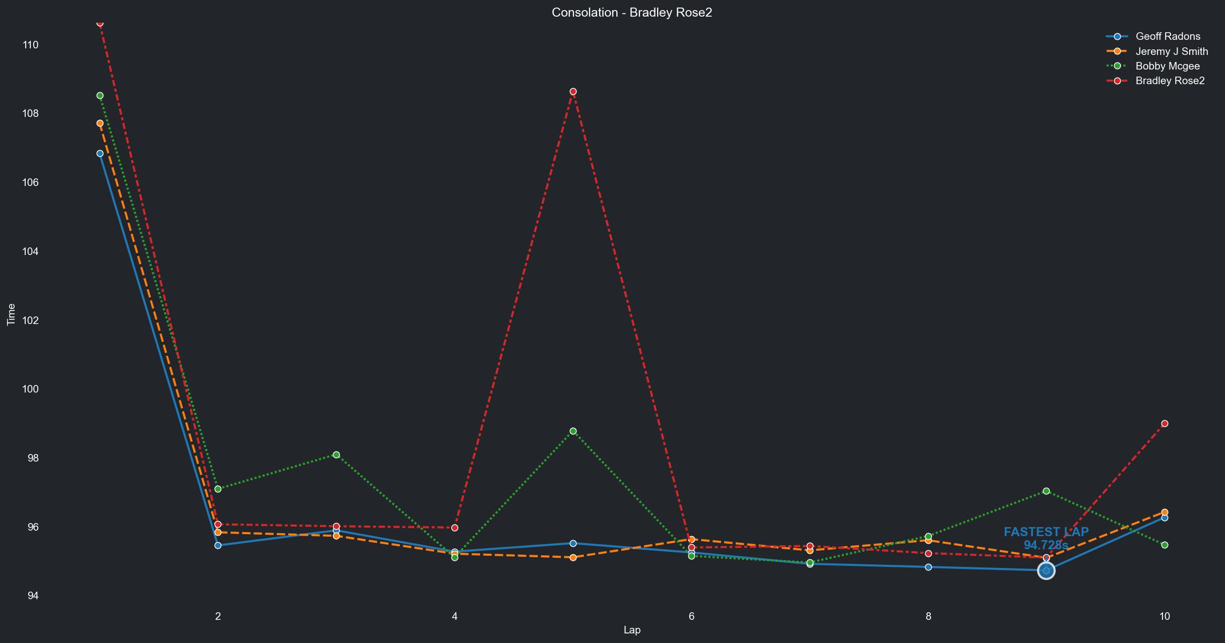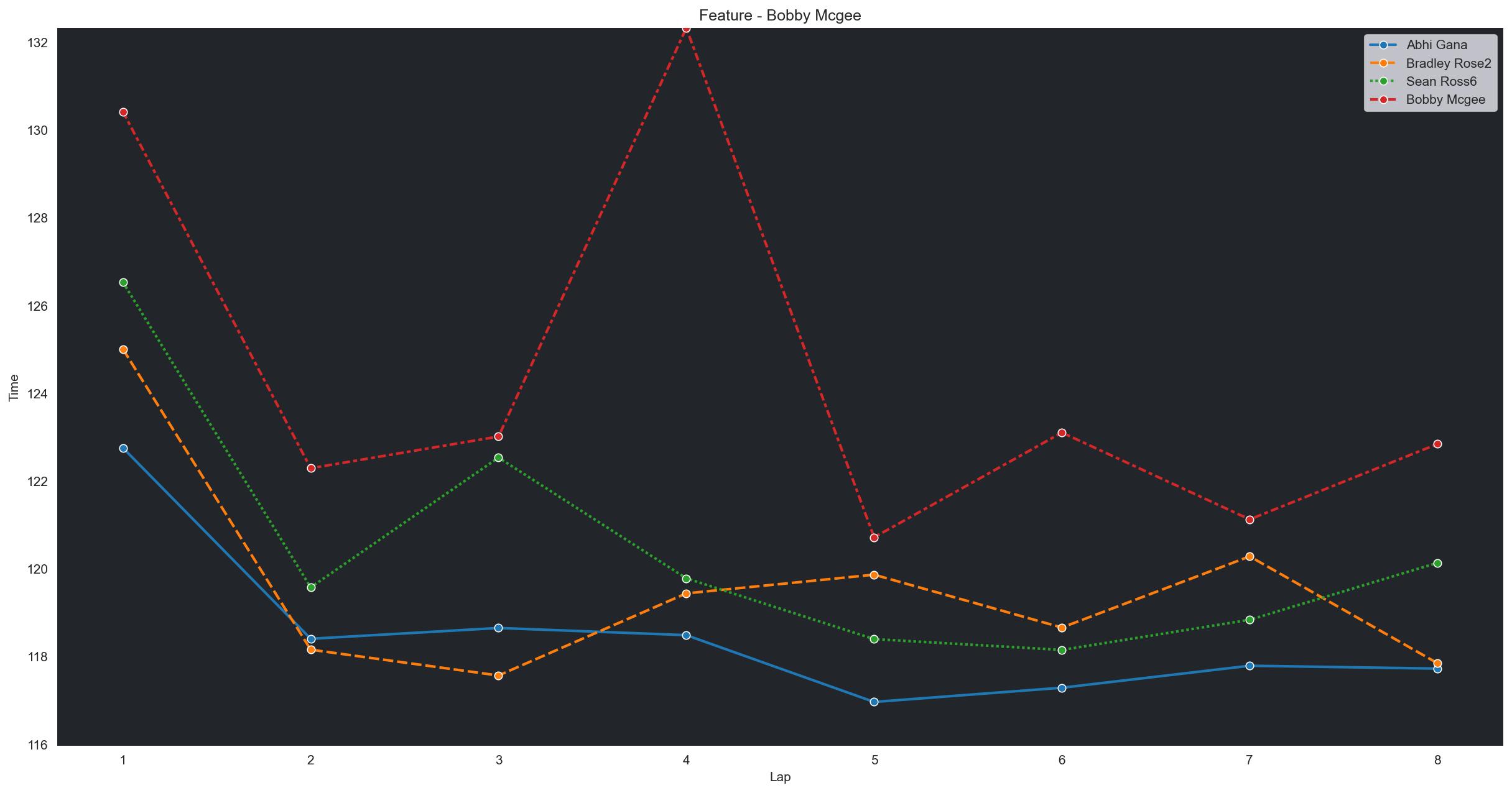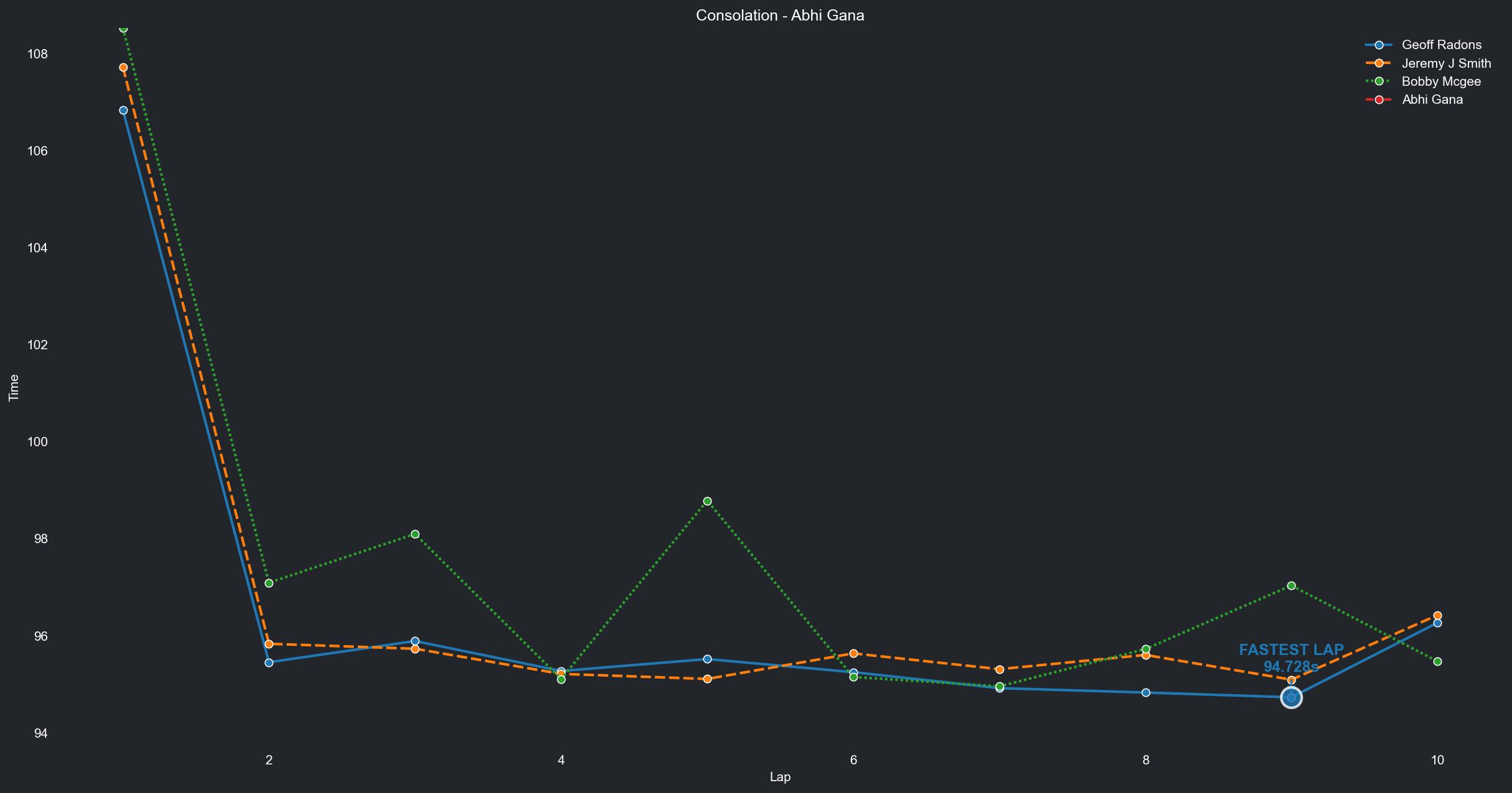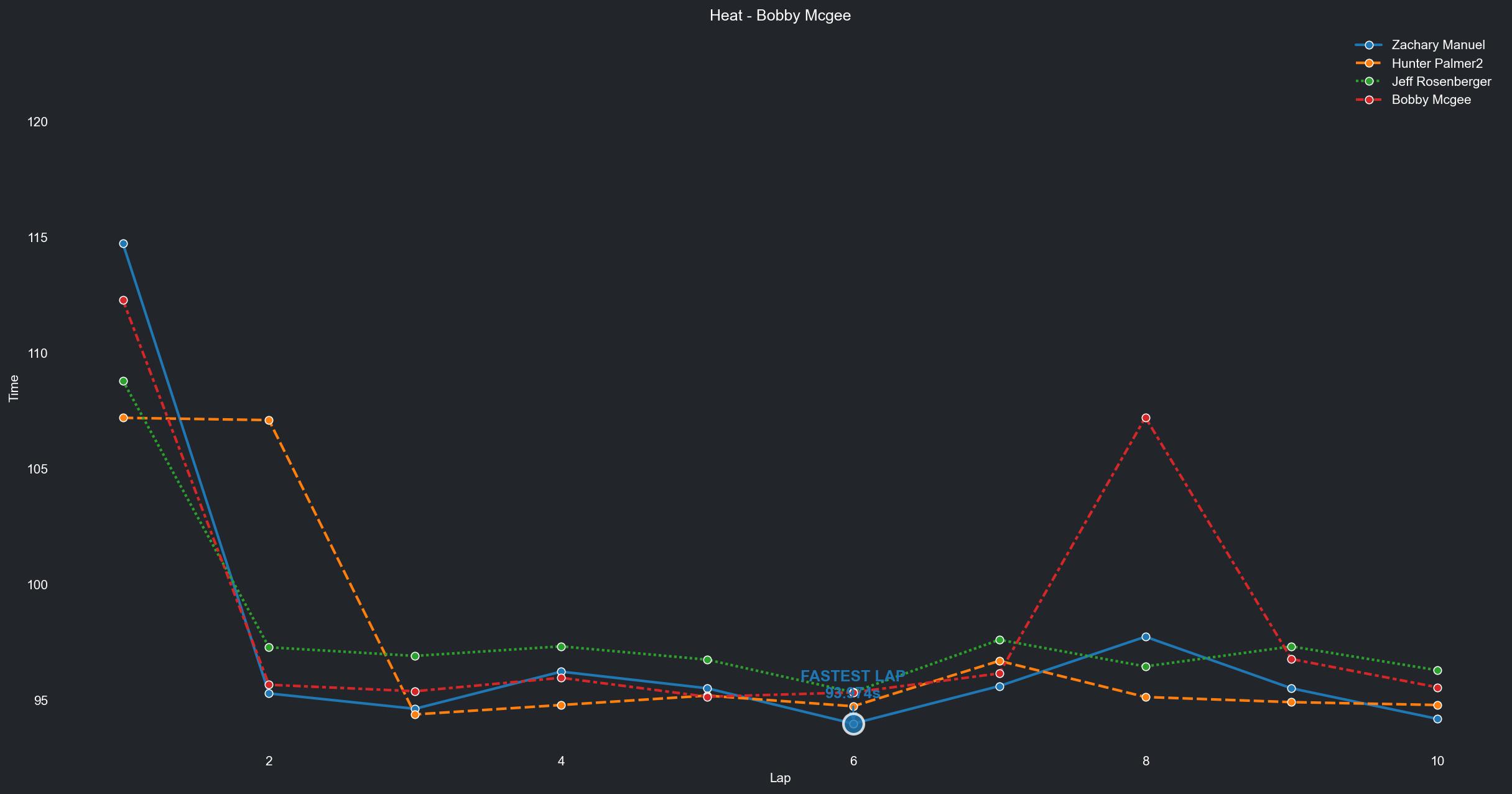 | Bobby Mcgee | 13 | 6 | 1:48.5433 | 1:44.4548 | 1:37.1264 | 1:35.5383 | 1:35.3758 | 1:35.5244 | 1:35.0895 | 1:38.3446 | 1:35.7069 | 1:35.3643 | 0 |