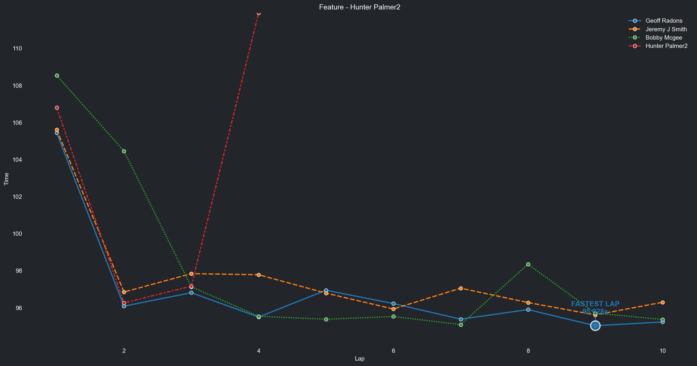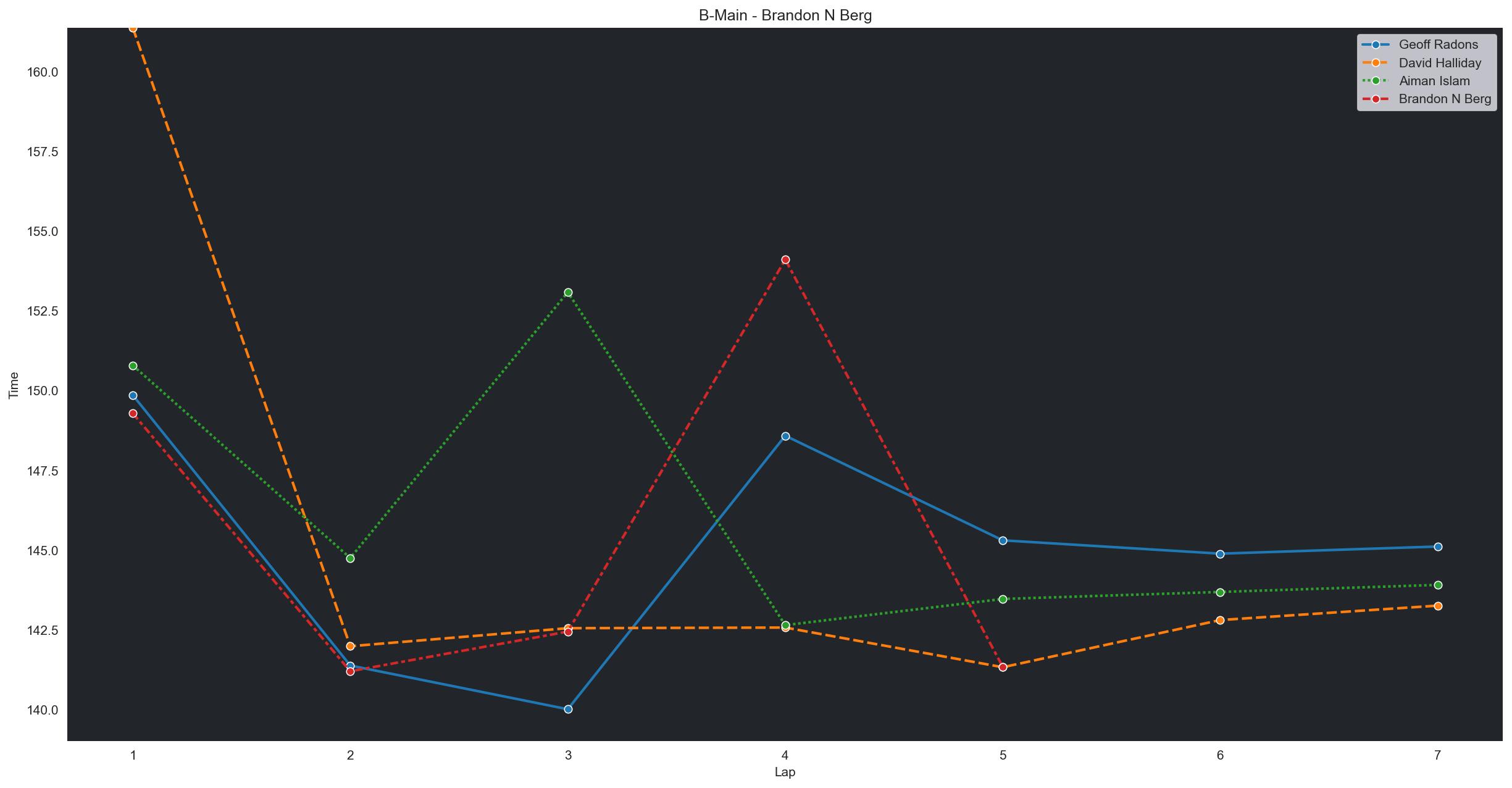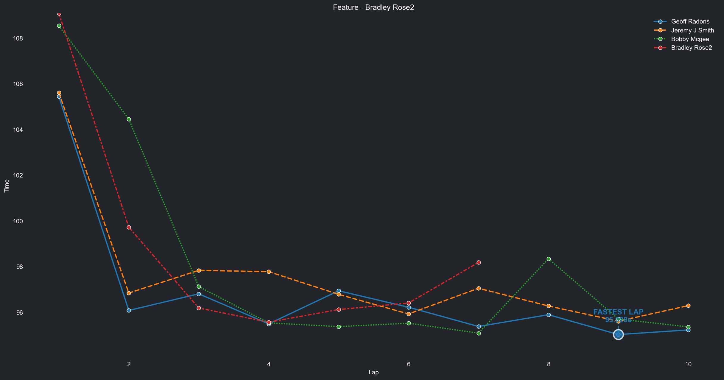 | Bobby Mcgee | 13 | 6 | 1:48.5433 | 1:44.4548 | 1:37.1264 | 1:35.5383 | 1:35.3758 | 1:35.5244 | 1:35.0895 | 1:38.3446 | 1:35.7069 | 1:35.3643 | 0 |