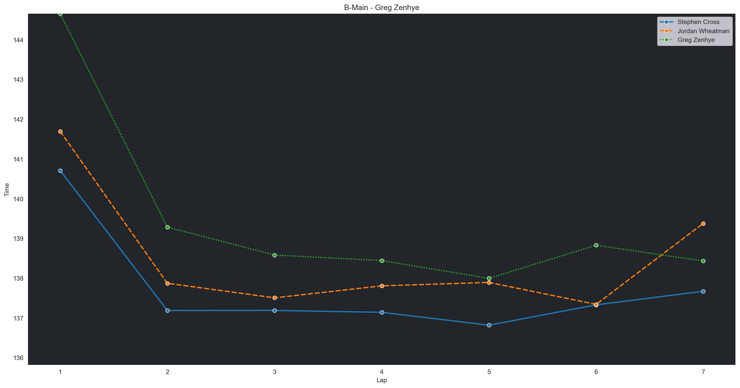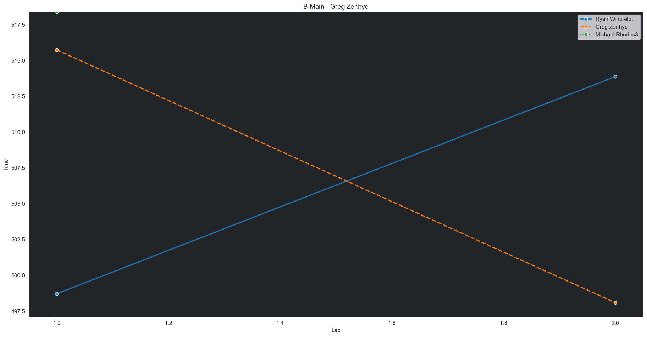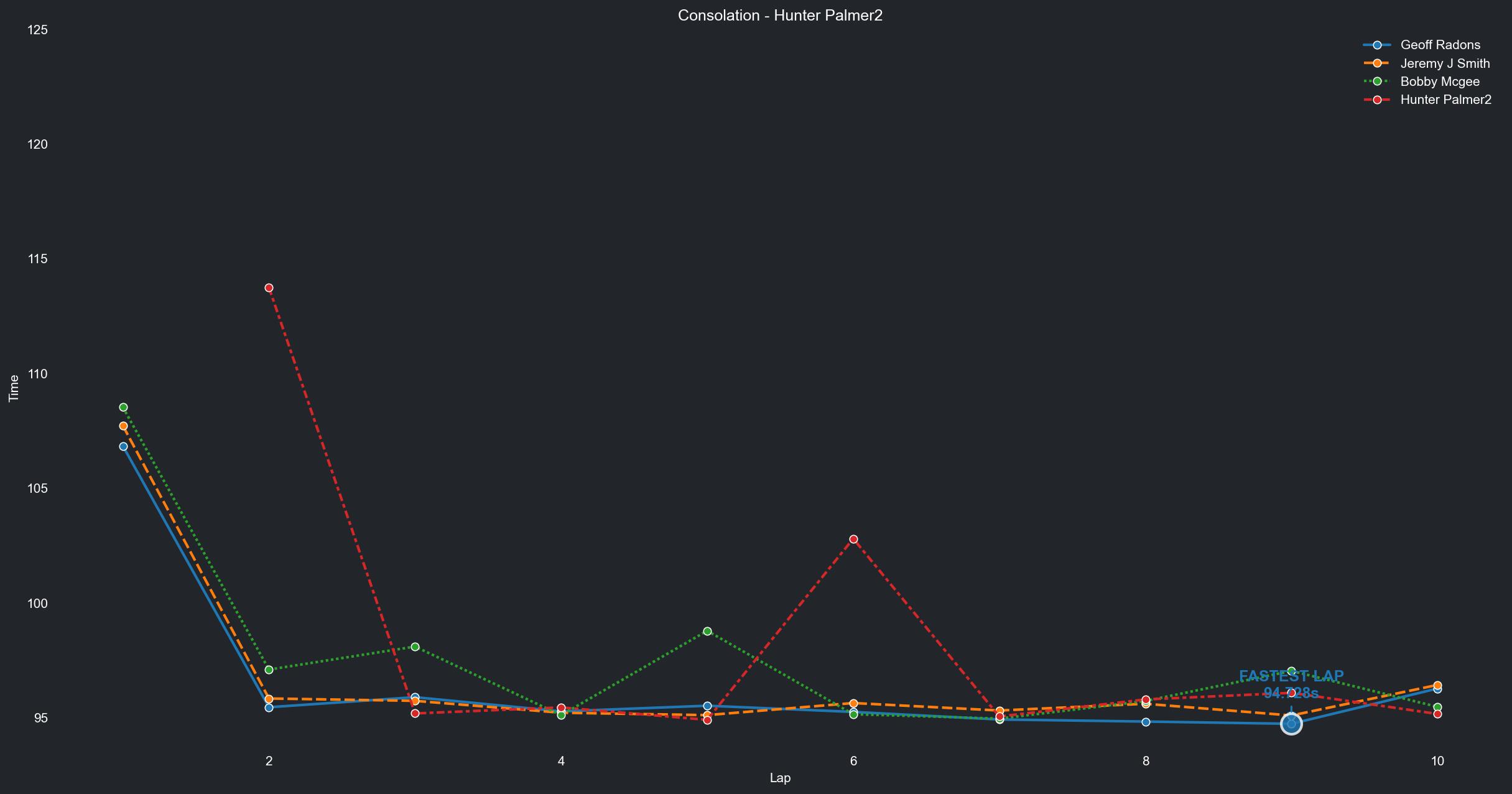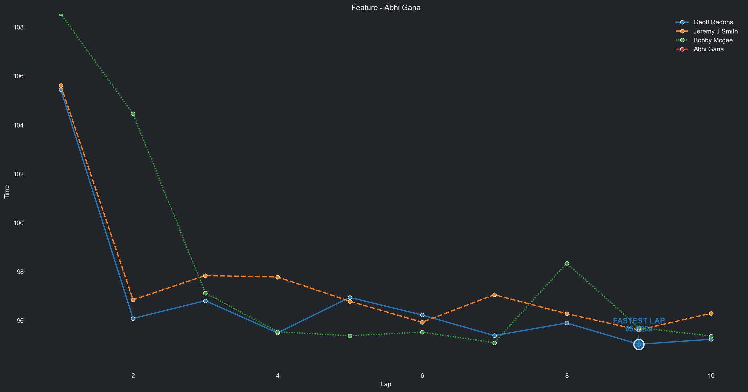 | Bobby Mcgee | 13 | 6 | 1:48.5433 | 1:44.4548 | 1:37.1264 | 1:35.5383 | 1:35.3758 | 1:35.5244 | 1:35.0895 | 1:38.3446 | 1:35.7069 | 1:35.3643 | 0 |