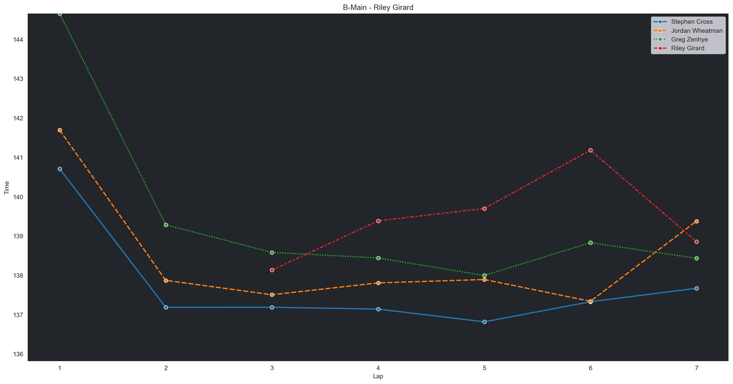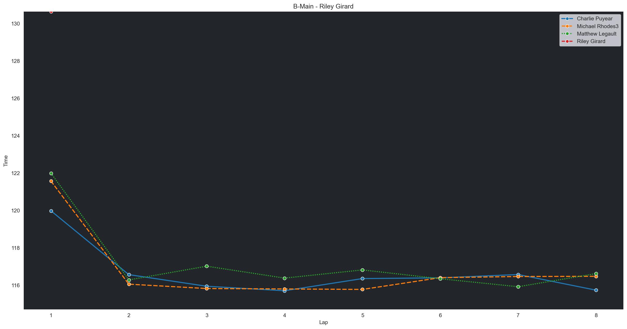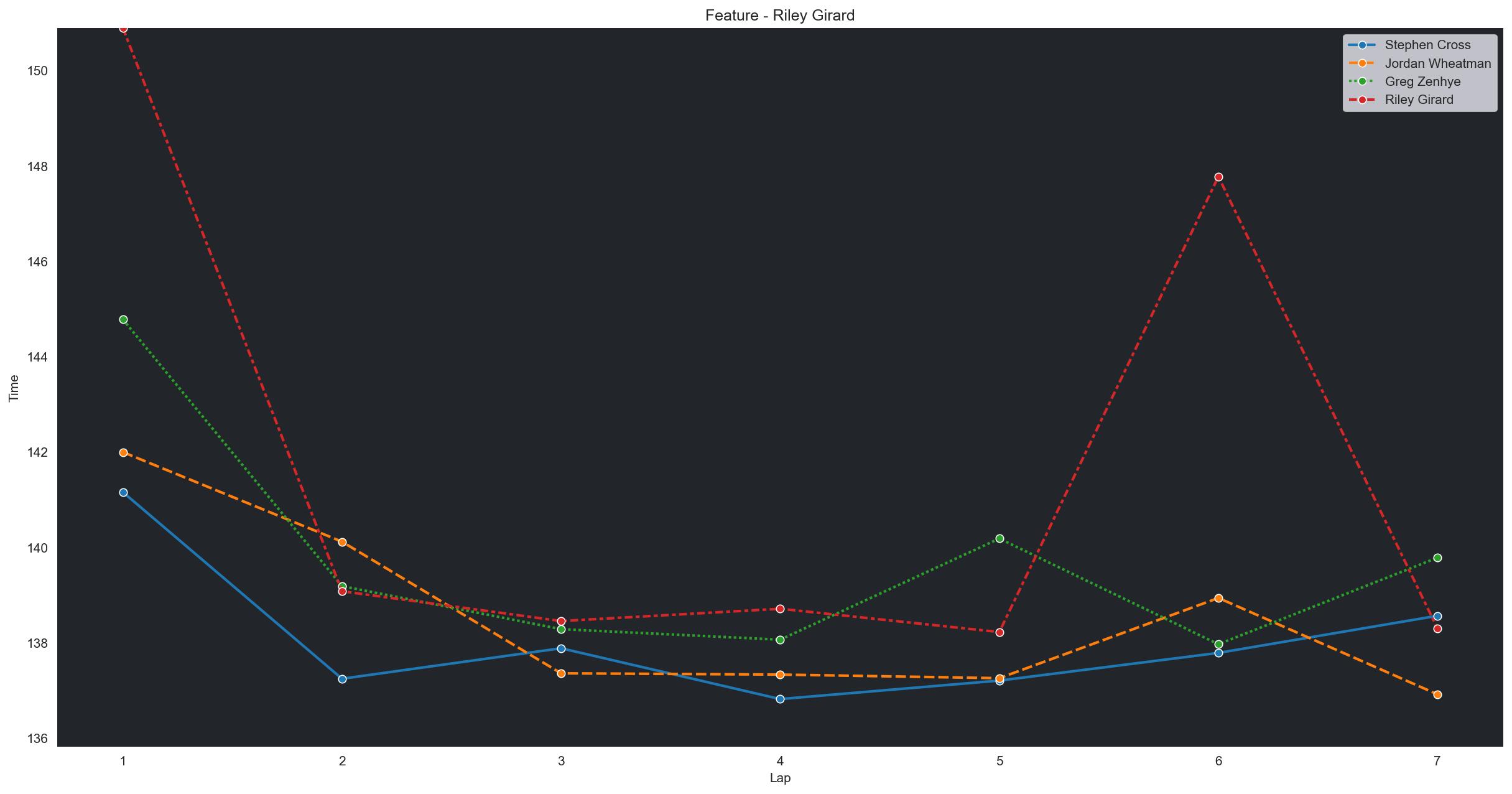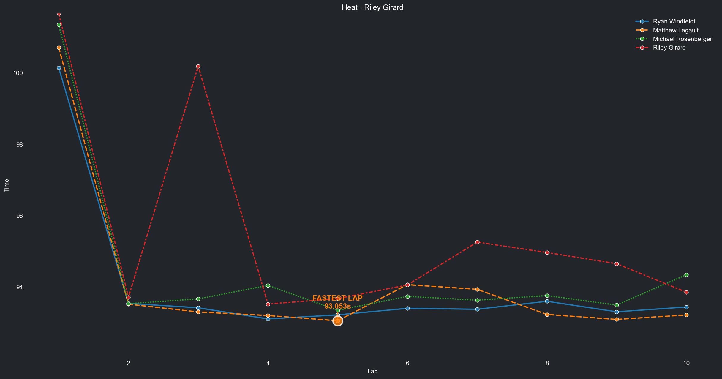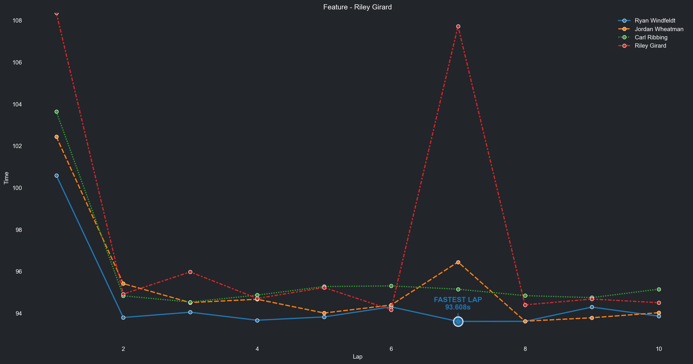 | Riley Girard | 11 | 6 | 1:48.3563 | 1:34.9150 | 1:35.9747 | 1:34.7080 | 1:35.2286 | 1:34.1692 | 1:47.7199 | 1:34.3992 | 1:34.6774 | 1:34.5030 | 0 |