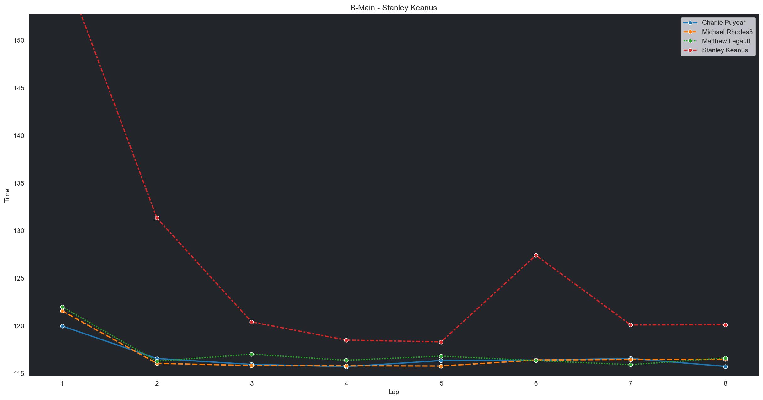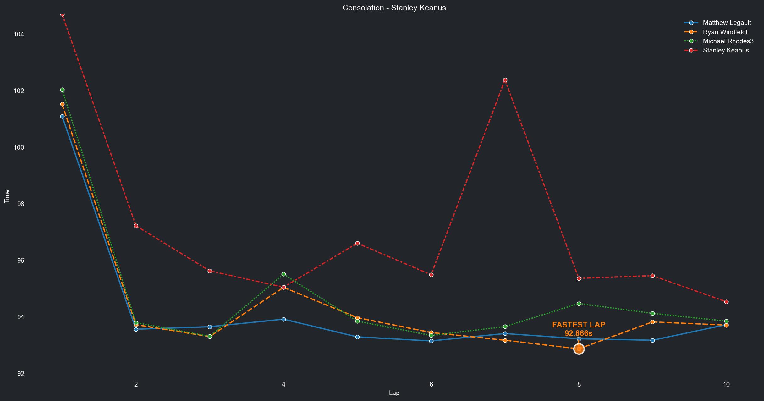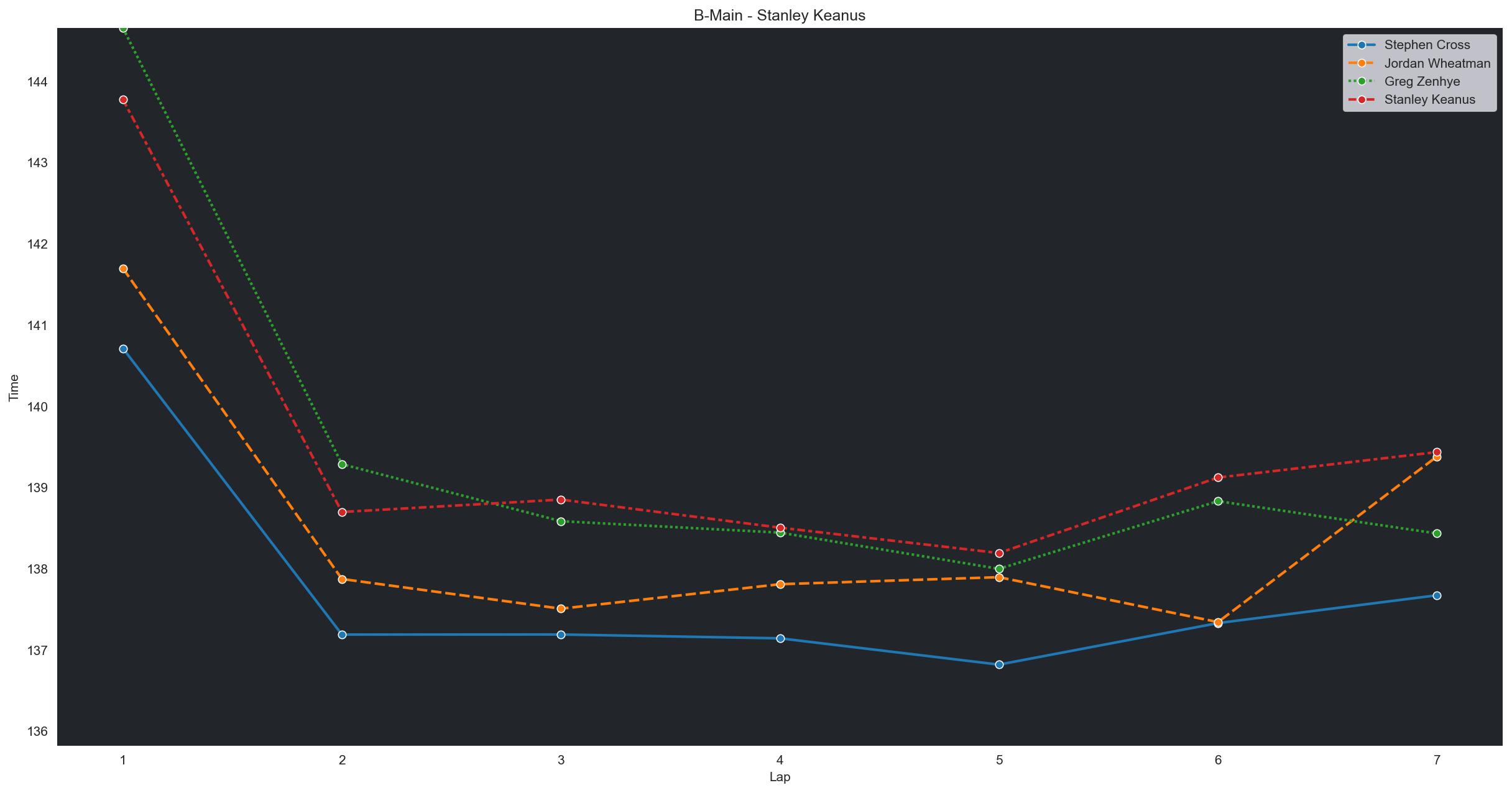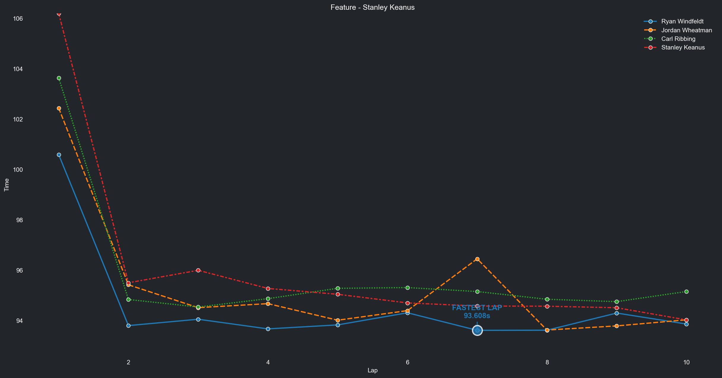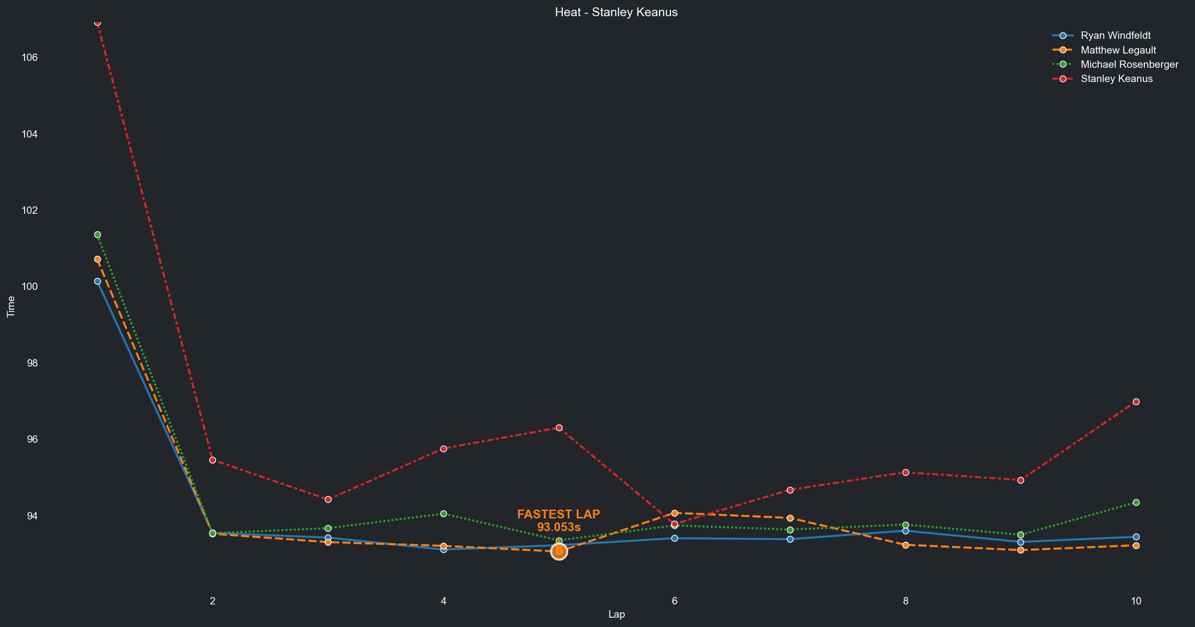 | Stanley Keanus | 5 | 5 | 1:46.1949 | 1:35.4960 | 1:35.9924 | 1:35.2713 | 1:35.0388 | 1:34.6967 | 1:34.5731 | 1:34.5656 | 1:34.5052 | 1:34.0232 | 0 |