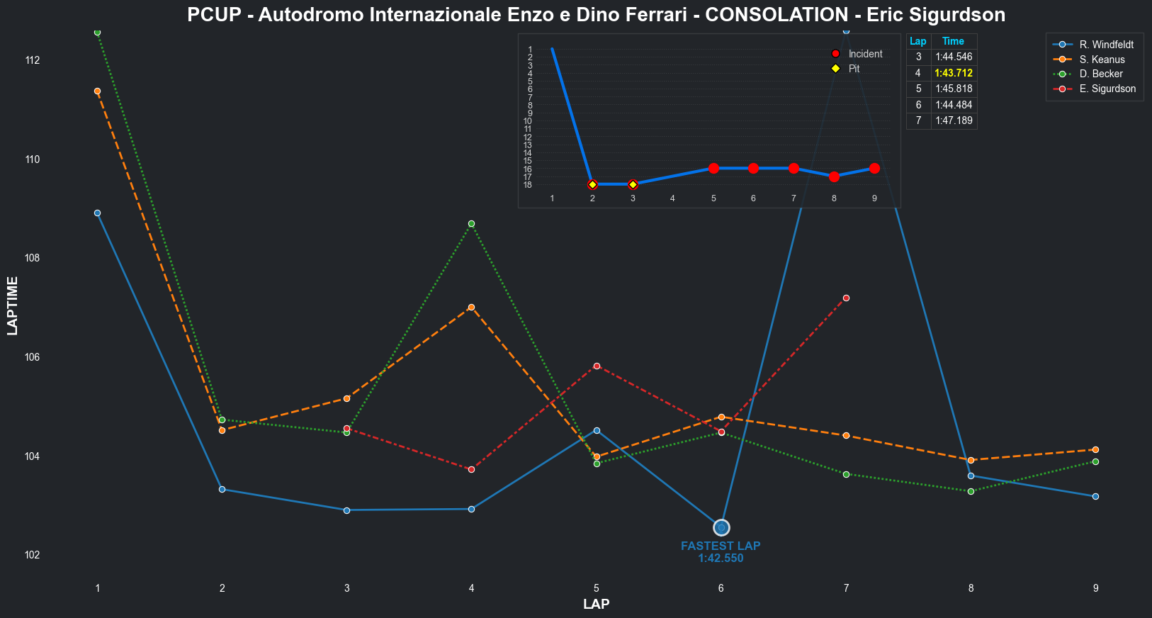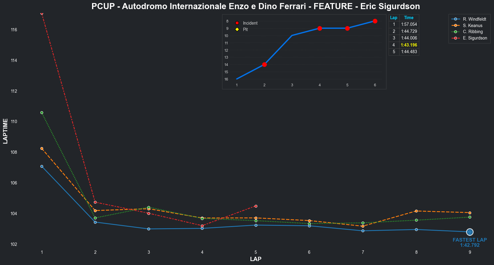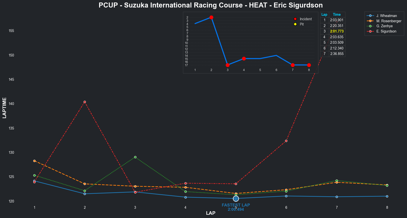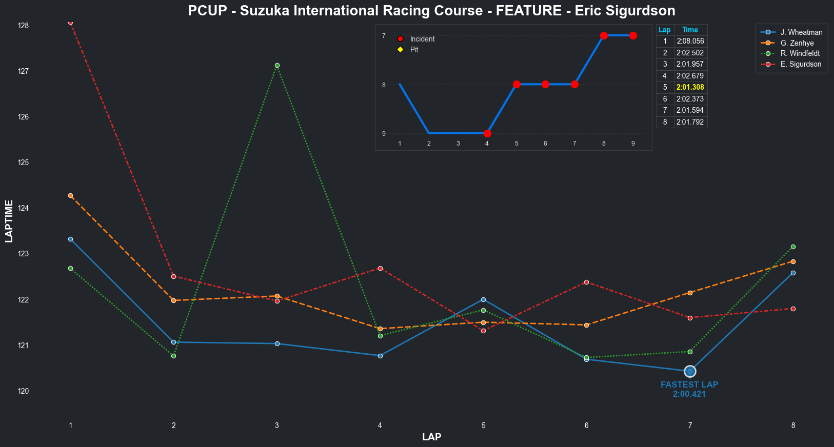 | Eric Sigurdson | 7 | 5 | 2:12.2945 | 2:02.7416 | 2:02.1429 | 2:02.8340 | 2:03.0167 | 2:02.3734 | 2:04.1839 | 2:13.8515 | 0 | 8 | |