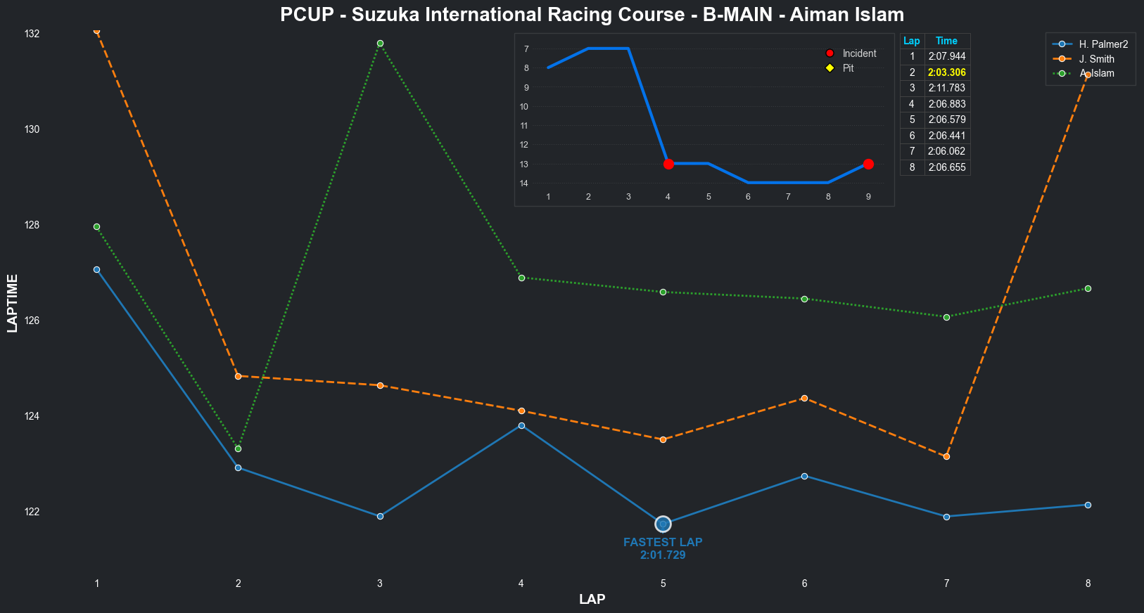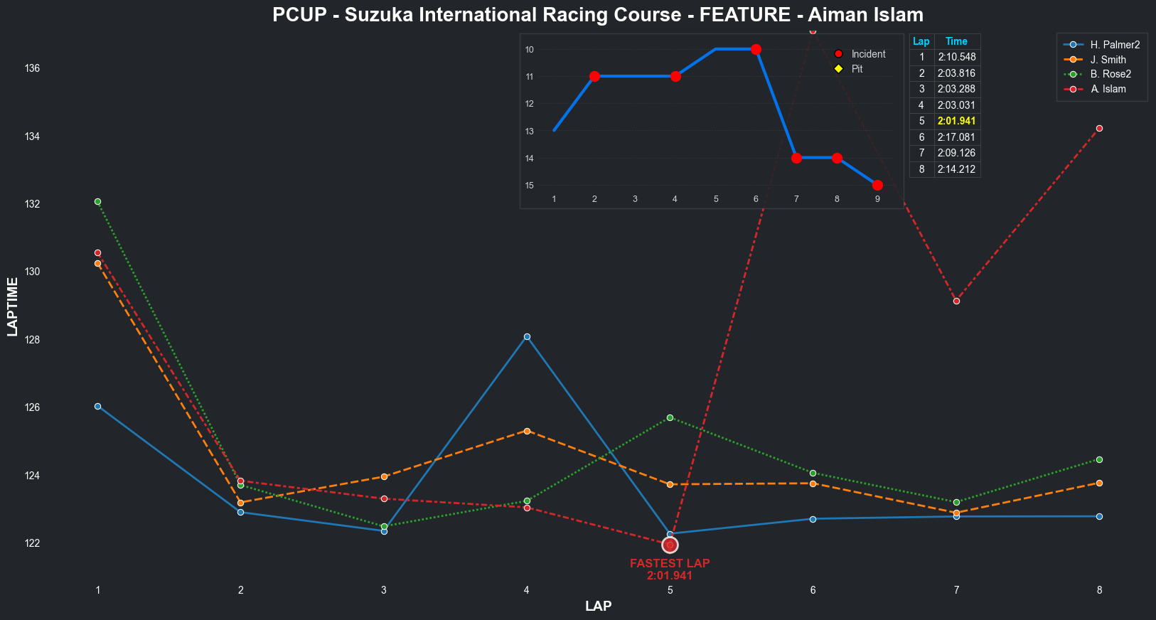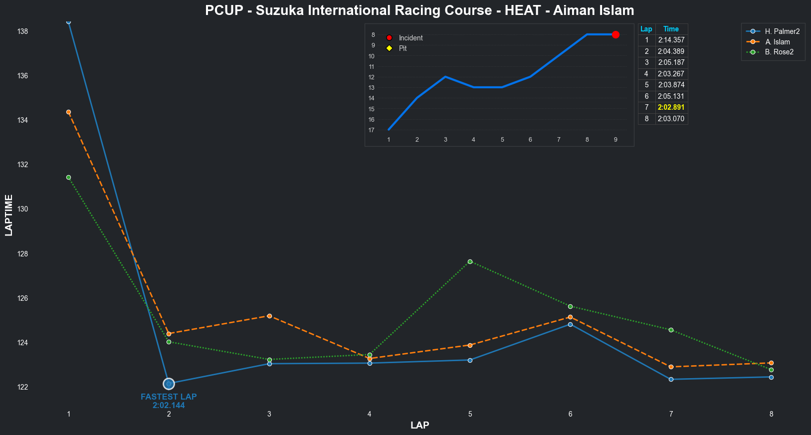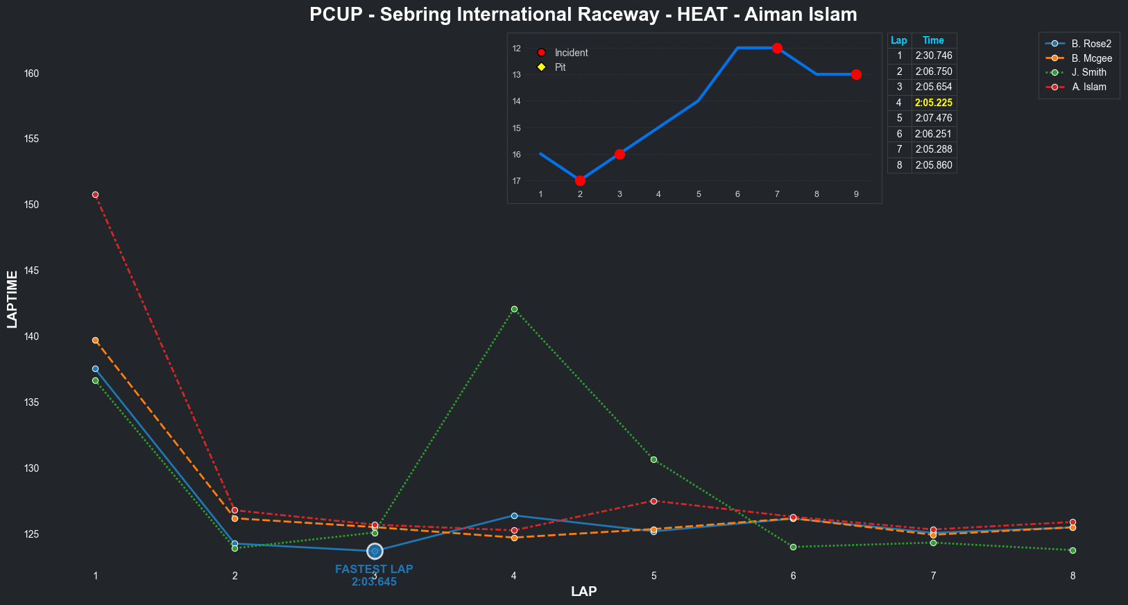 | Aiman Islam | 15 | 2 | 2:10.5480 | 2:03.8161 | 2:03.2879 | 2:03.0311 | 2:01.9406 | 2:17.0808 | 2:09.1264 | 2:14.2116 | 0 | 8 |